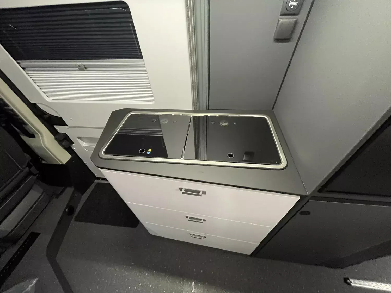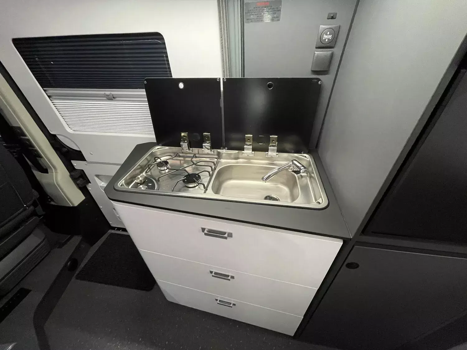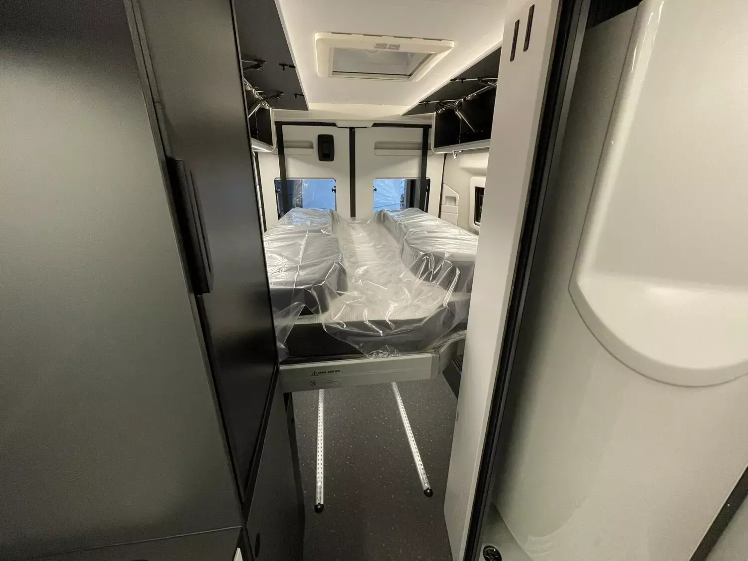 Kit DELUXE (Einparkhilfe hinten, Falt-Verdunkelung Fahrerhaus Wohnraum-Seitenfenster, Fliegenschutz an Schiebetür, Einstiegsstufe elektrisch, Einstiegsbeleuchtung, LED-Ambientebeleuchtung, Lade-Booster, Abwassertank isoliert und beheizbar, Abwasserablassventil elektrisch, Abdeckung Kocher und Spüle, Tisch mit Ausdreherweiterung und Becherhalterung), Paket SAFETY + STYLE PLUS (Regen- und Licht-Assistent, Notbrems-Assistent mit Fußgängererkennung, Spurhaltewarn-Assistent, Verkehrszeichen-Assistent (mit Tempomat-Geschwindigkeits-Anpassung), Fahrermüdigkeitserkennung, Geschwindigkeits-Assistent adaptiv mit Stop&Go; (Stau-Assistent), Klimaautomatik Fahrerhaus, Handbremse elektrisch, Lenkrad in Lederoptik, 7"-Instrumentenanzeige digital, 16"-Leichtmetall-Felgen, Lackierung Stoßfänger vorne, Nebelscheinwerfer), 10"-DAB-Naviceiver, Multifunktionslenkrad mit Radiofernbedienung, Rückfahrkamera)), LED Frontscheinwerfer, Solar Anlage, Sonnenschutz-Markise, MACH PLUS App, Panoramafenster vorne zum Öffnen, Zusatzluftfederung hinten)
