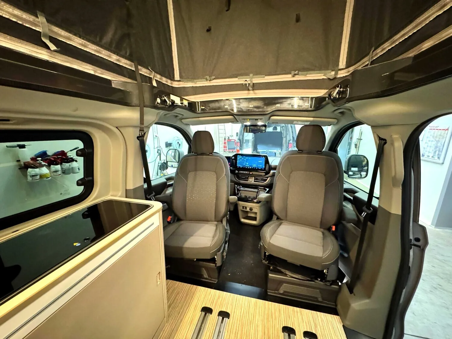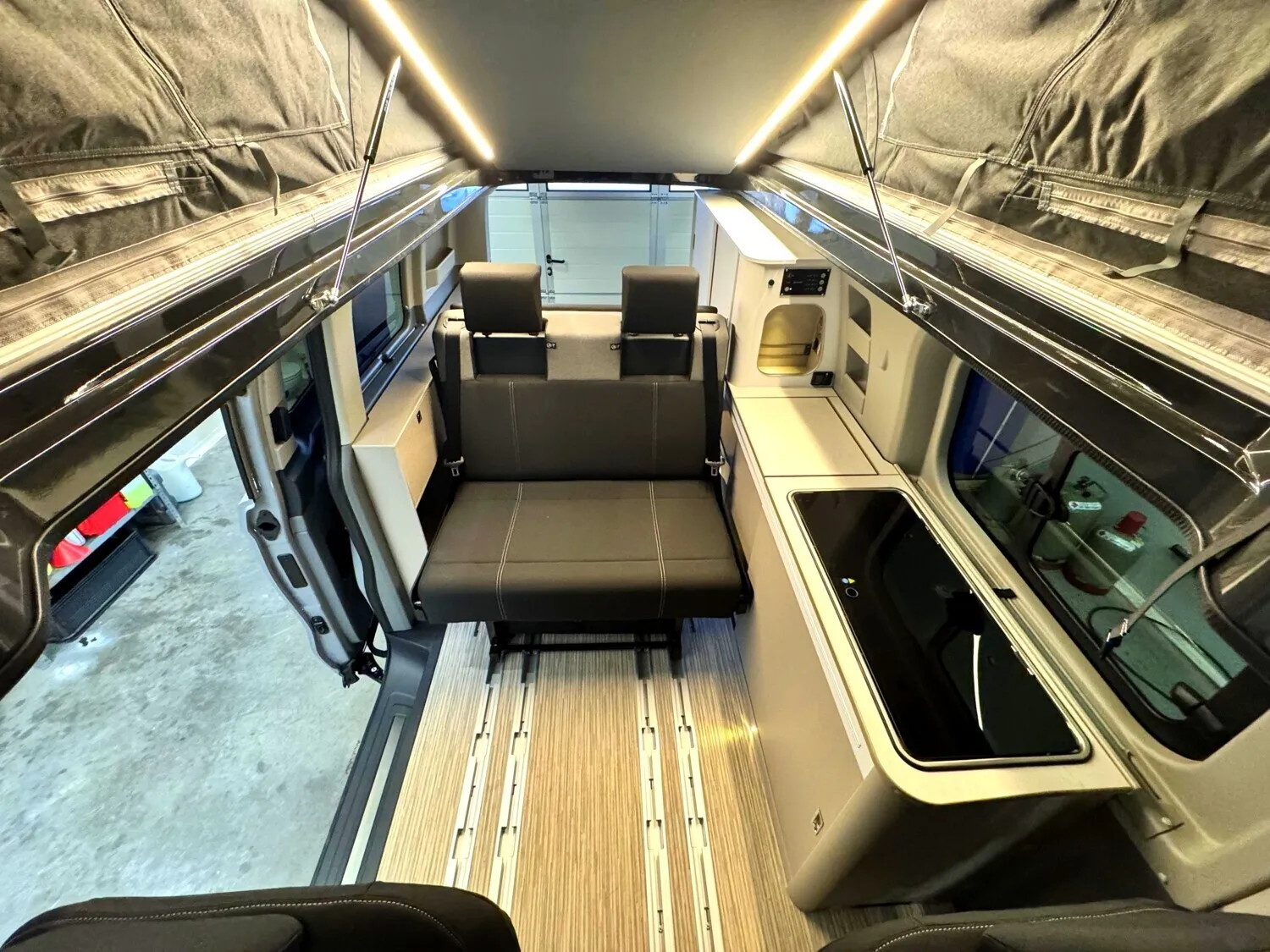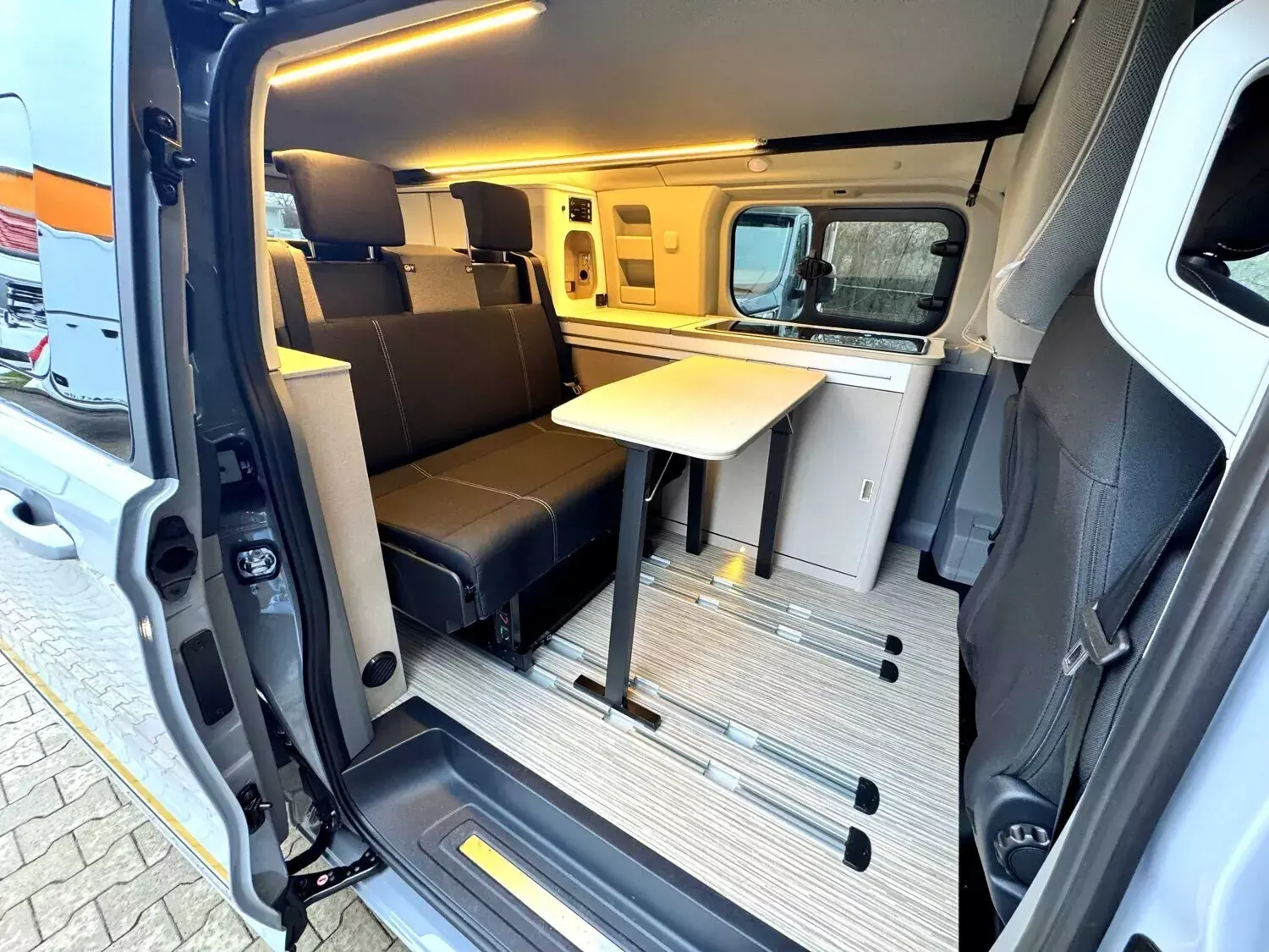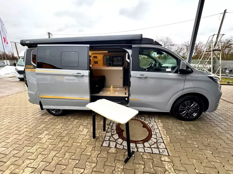 - Ausstattung Wohnraum: Schlafdach in Anthrazit | Sonderproduktgrafik B66 | Sonnenmarkise anthrazit - 3,0 m | 3. und 4. Sitzplatz auf Sitzbank inkl. Isofix, Schlaffunktion und Staubox | 4 Zurrösen für Schienenboden |Verdunkelung Wohnraum und Fahrerhaus | 2-Flammen-Kocher mit integrierter Spüle | Gewürzregal in Verkleidung | Kompressor Kühlbox 36 L | Außenduschanschluss | 12 V Steckdose Fahrerhaus | Aufbaubatterie 95 Ah | Indirekte Beleuchtung im Schlafdach (dimmbar) | LED Beleuchtung | Ladebooster 25A | Schwanenhalsleseleuchte im Schlafdach | USB Ladesteckdose | Gaskasten für 1 x 2,75 kg | Standheizung Diesel 2kW