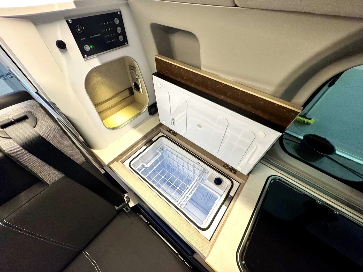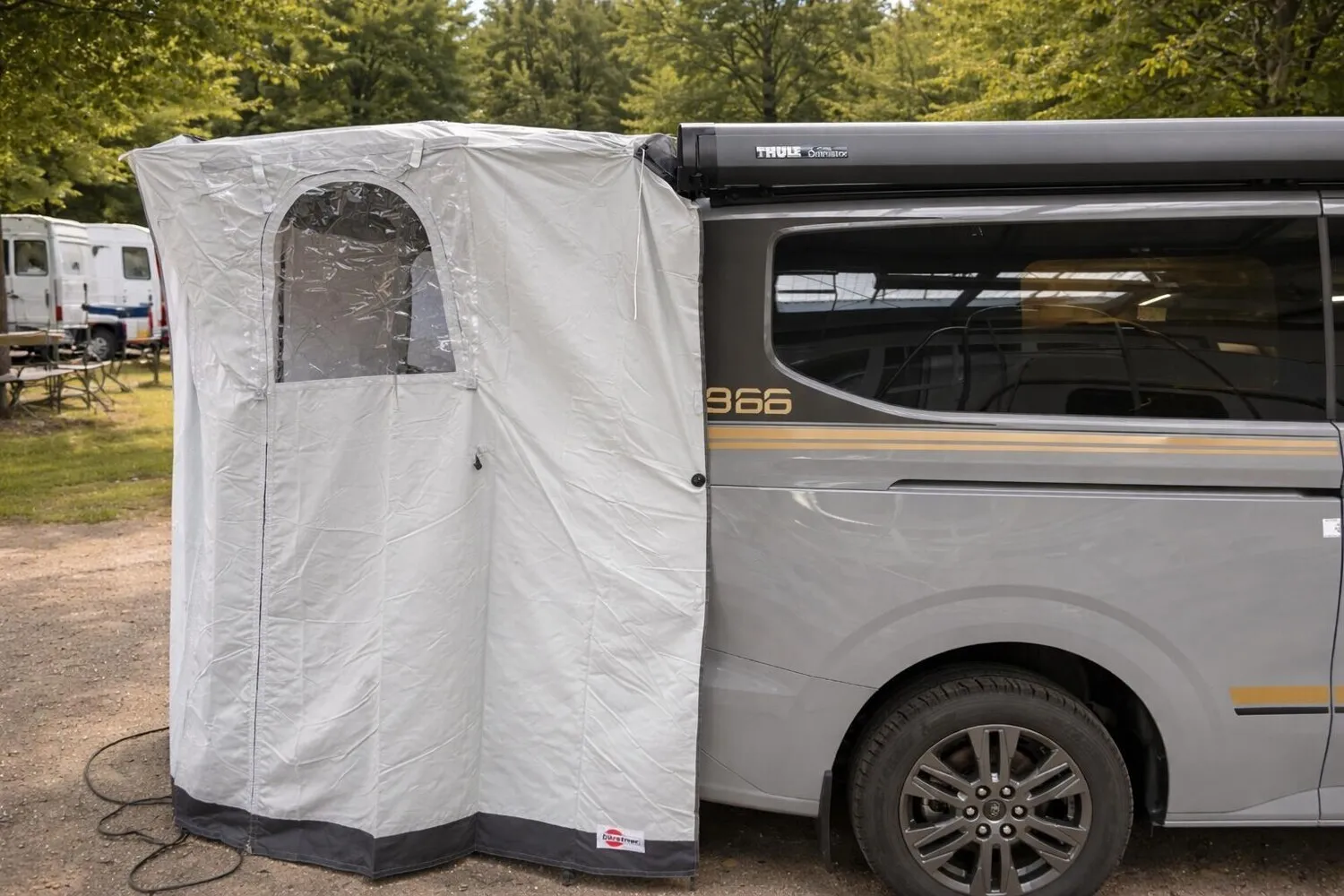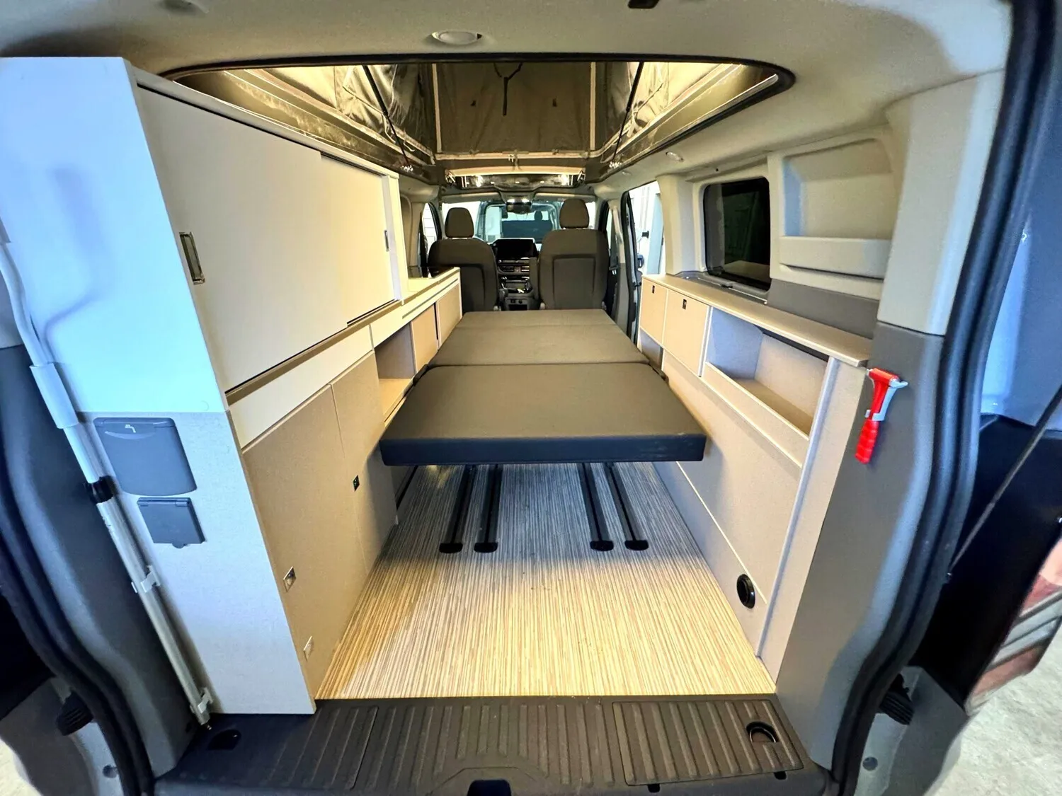 - Ausstattung Wohnraum: Schlafdach in Anthrazit | Sonderproduktgrafik B66 | Sonnenmarkise anthrazit - 3,0 m | 3. und 4. Sitzplatz auf Sitzbank inkl. Isofix, Schlaffunktion und Staubox | 4 Zurrösen für Schienenboden |Verdunkelung Wohnraum und Fahrerhaus | 2-Flammen-Kocher mit integrierter Spüle | Gewürzregal in Verkleidung | Kompressor Kühlbox 36 L | Außenduschanschluss | 12 V Steckdose Fahrerhaus | Aufbaubatterie 95 Ah | Indirekte Beleuchtung im Schlafdach (dimmbar) | LED Beleuchtung | Ladebooster 25A | Schwanenhalsleseleuchte im Schlafdach | USB Ladesteckdose | Gaskasten für 1 x 2,75 kg | Standheizung Diesel 2kW