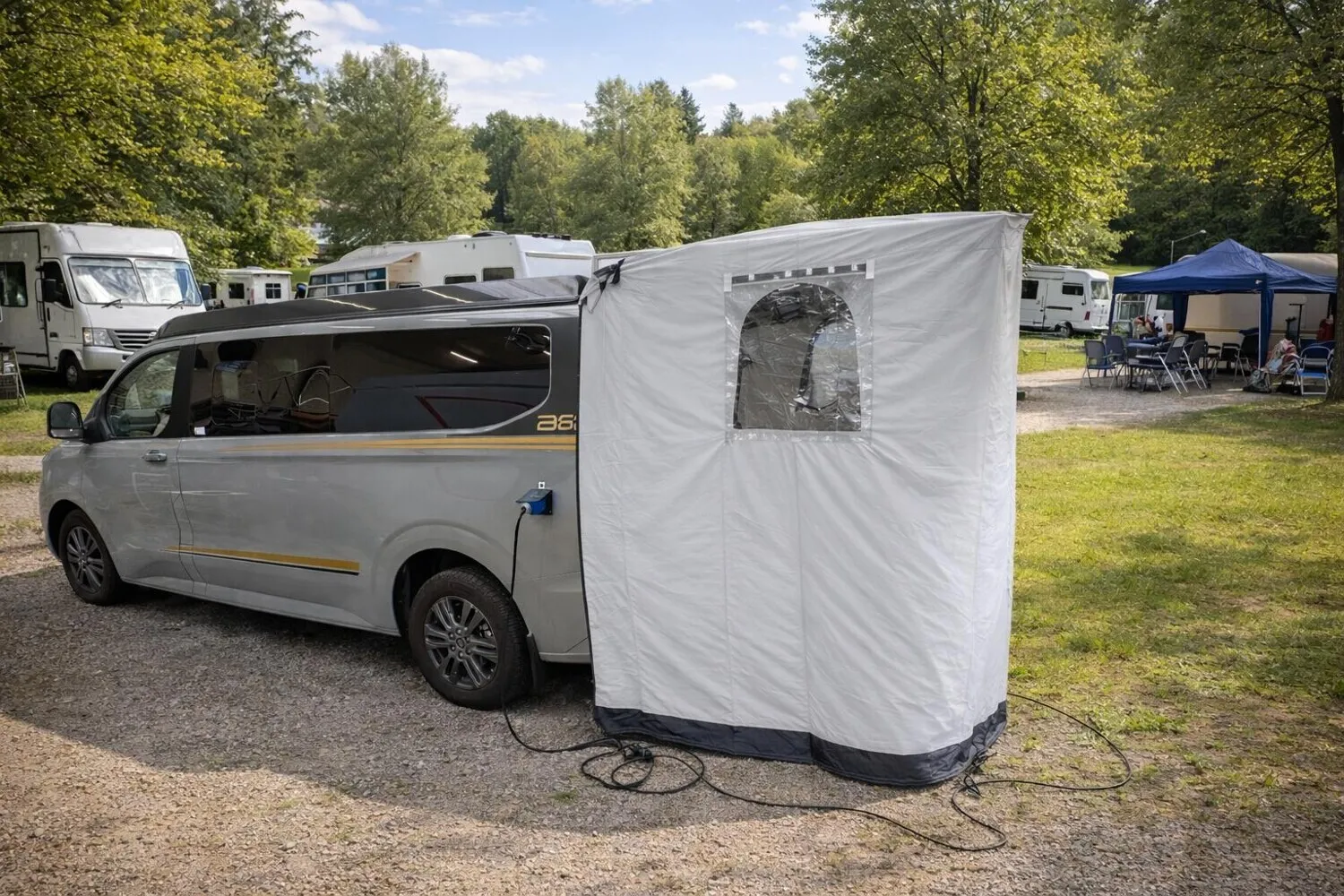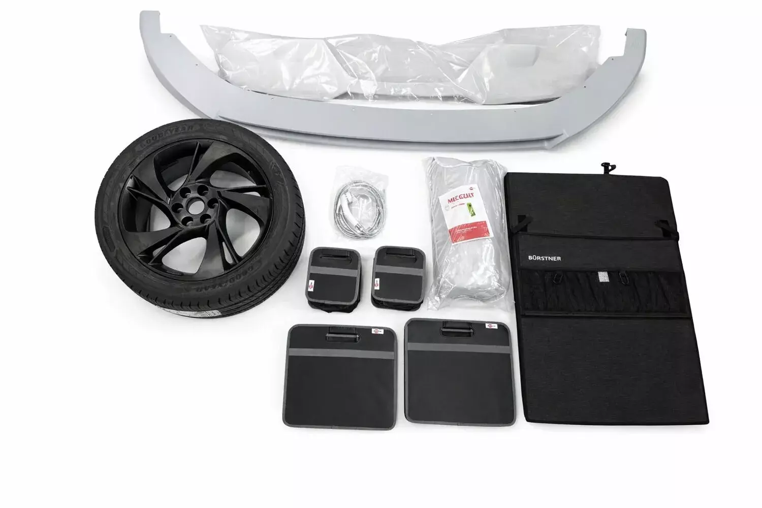 - Zubehör-Set: 4 Sommer-Kompletträder auf LM-Felgen | Heckzelt | faltbare Stauboxen | Organizer | Brause für Aussendusche | Design-Frontspoilerlippe | Spoiler für Heckklappe