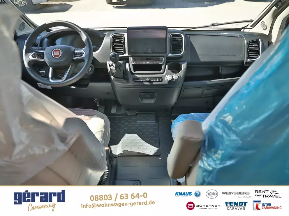 - Fiat Technik & Design (ESP inkl. Traction Plus, Lederlenkrad und Lederschaltknauf, Pilotensitze mit Armlehnen, Polster bezogen wie Wohnraum, Scheinwerfer mit schwarzem Rahmen, Kühlergrill mit Bürstner Logo, glänzend schwarz)