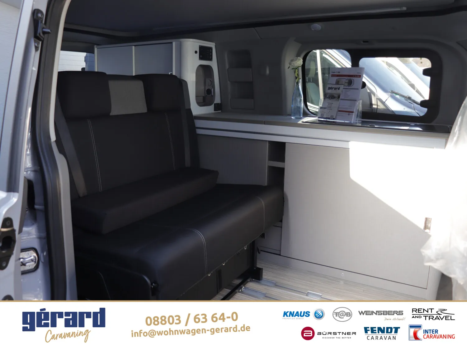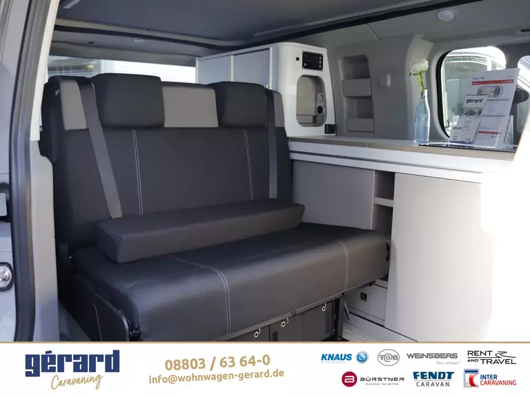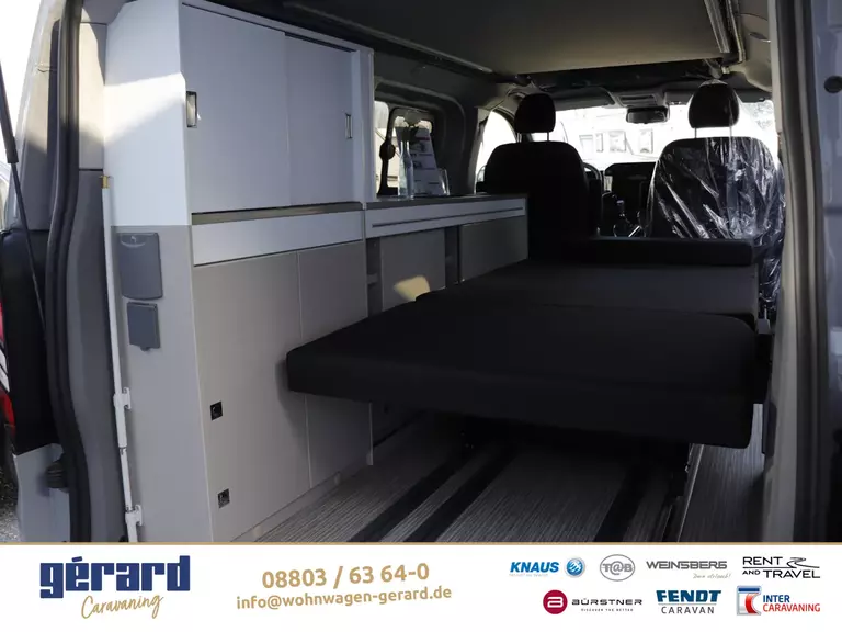 - Holiday Paket (Verdunkelung Wohnraum+Fahrerhaus, Sitzbank 3 + 4 Sitzplatz inkl. IsoFix ; Schlaffunktion, Staufach unter Sitzbank, 4 Zurrösen)