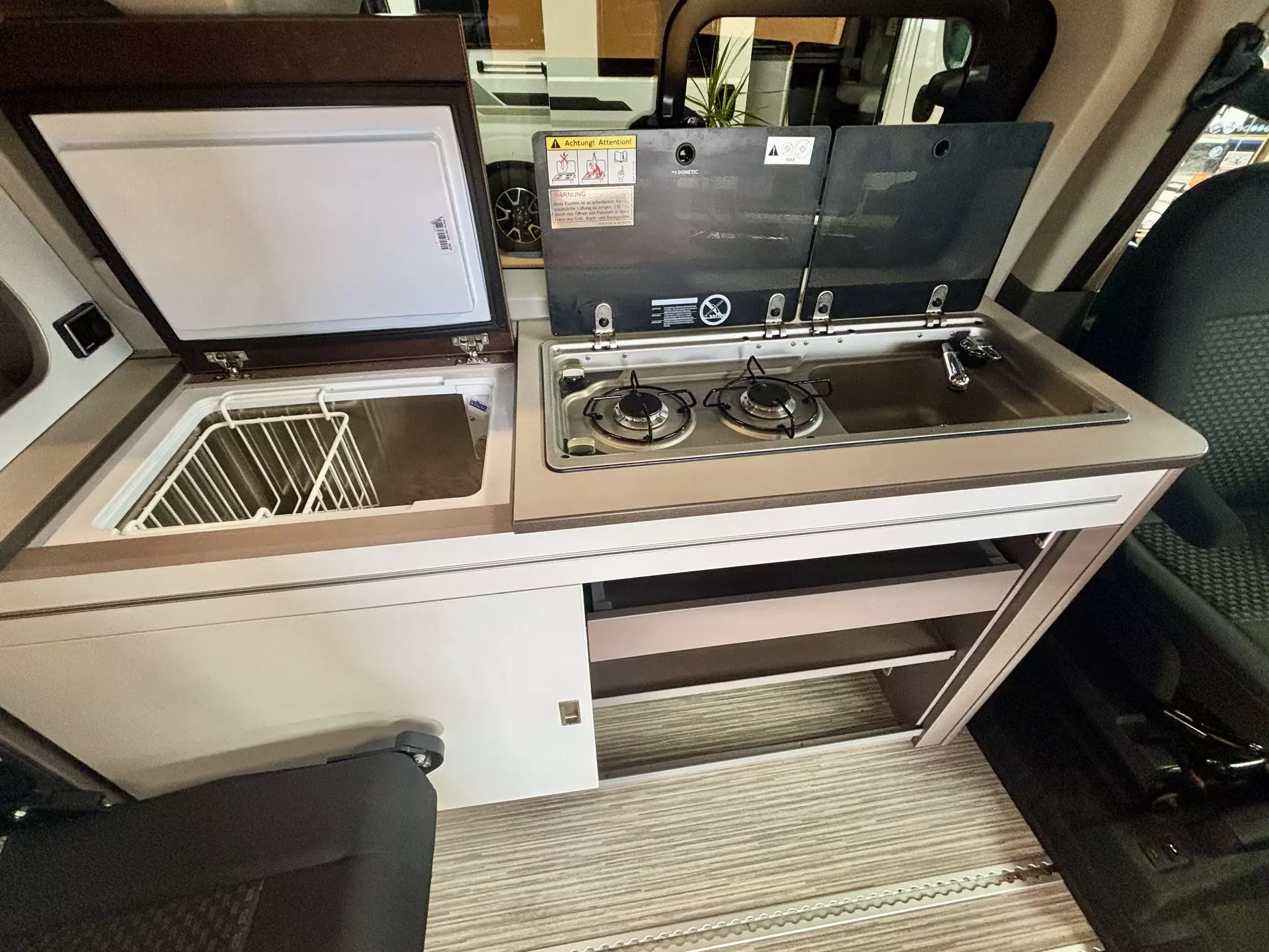 Es sind vier gurtgesicherte Sitze vorhanden. Man kann jedoch noch zwei nachrüsten (Schienensystem), da 6 Sitzplätze eingetragen sind.