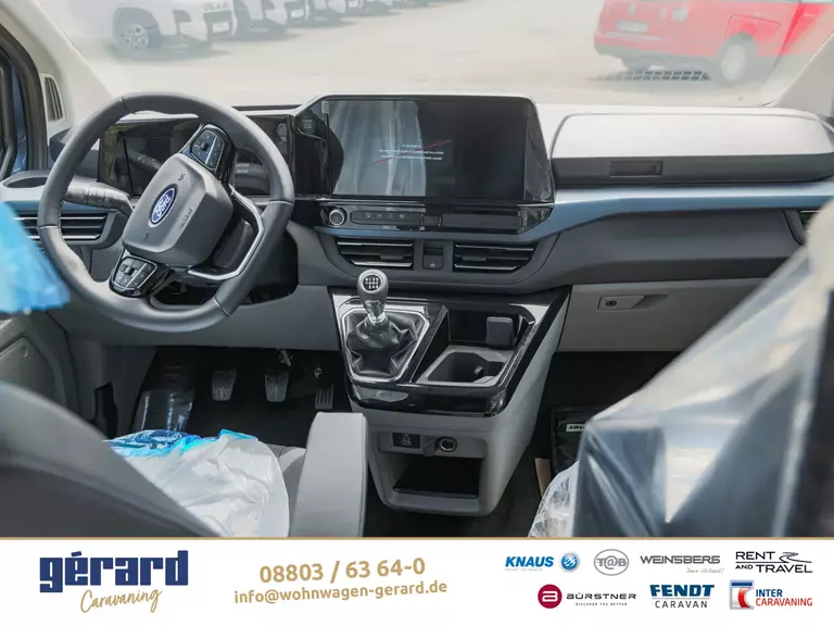 - Ausstattungslinie Active (Ford Tourneo Custom V710 - FWD, 150 PS, 6-Gang-Schaltgetriebe (für Active), 17 Zoll Alufelge in Absolute Black, Adaptive Geschwindigkeitsregelanlage, Fahrassistenzpaket, Spurhalteassistent mit Spurwechselassistent, Stoßfänger vorne und hinten in schwarzem Kunststoff, teillackiert, Zwei-Zonen-Klimaanlage (Fahrer-& Beifahrerzone), Picknick-Leuchte im Laderaum, Zuziehhilfe für Schiebetür, Navigationssystem integriert auf 13" Multifunktionsdisplay mit 5 Lautsprechern, Stoffbezug im Active Design im Fahrerhaus, Außenspiegel in Akzentfarbe (schwarz) lackiert, Seitenschutzleisten in Akzentfarbe (schwarz))