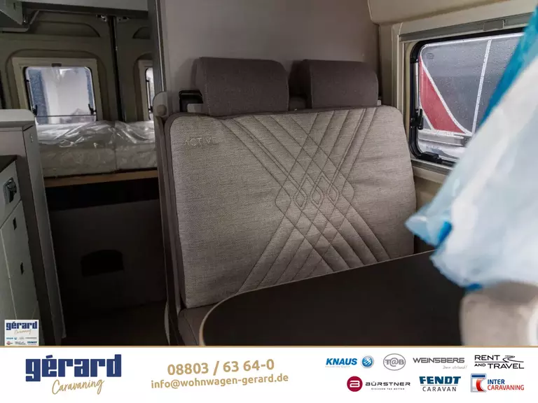 Weitere Ausstattungen: Alurahmenfenster, Fenster im Toilettenraum, Fenster beidseitig in Hecktüre, Dachfenster 50 x 70 cm mit Verdunkelungsrollo und Fliegenschutz im Wohnbereich, Möbeldekor Bahia, Isofix System für zwei Kindersitze