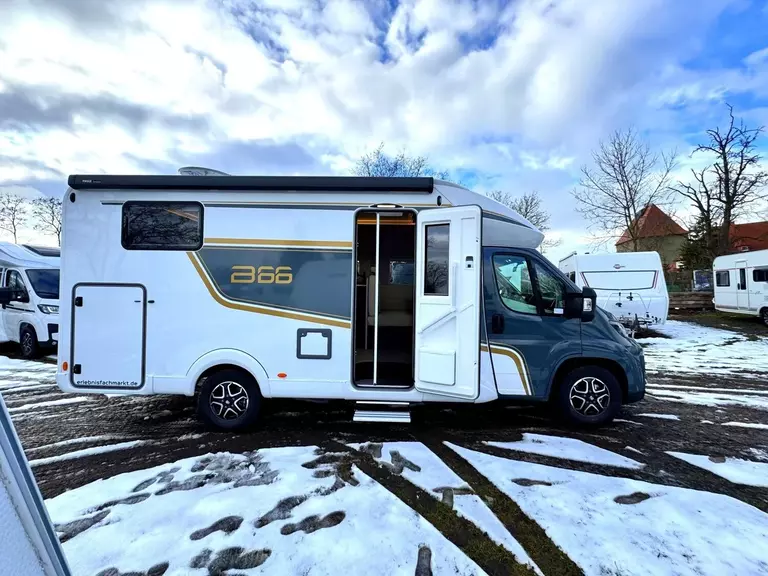 - 2026 Serienausstattung B66 TD (Fiat Ducato Multijet 3 - 2,2l - 140 PS -Euro 6E- Automatikgetriebe|ABS|Alufelgen 16" Bi-Color|Automatisches 8-Gang-Wandlergetriebe|Breite Spiegel|Dieseltank 60 L|ESP inkl. ASR, Hill Holder und Traction Plus|Fiat Ducato Tiefrahmenchassis|Frontspoiler in Wagenfarbe lackiert|Ganzjahresreifen|GFK-Blattfeder|Nebelscheinwerfer|Reifen Reparaturset|Reifenluftdrucksensoren|Scheinwerfer mit schwarzem Rahmen|Start & Stopp Funktion|Tagfahrlicht|Tempomat|Verbreiterte Spur Hinterachse|Airbag Fahrer und Beifahrer|Armaturenbrettveredelung Techno|Außenspiegel elektrisch verstell- und beheizbar|Drehkonsole für Fahrer-und Beifahrersitz|Elektronische Parkbremse|Fahrerhausverdunkelung, Cassettenplissees Front- und Seitenscheiben|Fahrersitz und Beifahrersitz in Wohnraumstoff|Getränkehalter für Fahrer und Beifahrer|Klimaanlage im Fahrerhaus mit manueller Bedienung|Lackierung Lanzarote Grau (Fahrerhaus)|Lederlenkrad und Lederschaltknauf|Verstärkte Batterie (105 Ah)|Verstärkte Lichtmaschine (220 Ah)|3. Bremsleuchte in Logoform|Aufbautür breite Ausführung inkl. Fenster|Coupe-Einstieg|Dachfenster 50x70 cm im Küchenbereich mit Verdunkelungsrollo und Fliegenschutz (nicht i.V. mit Hubbett)|Dachhaube im Schlafbereich mit Verdunkelungsrollo und Fliegenschutz|Dachhaube im Toilettenraum|Elektrisch ausfahrbare Einstiegsstufe|GFK-Boden|GFK-Dach mit reduzierter Hagelempfindlichkeit|Garagenklappe in Fahrtrichtung links|Garagenklappe in Fahrtrichtung rechts|Rahmenfenster|Sonnenmarkise Anthrazit - 4,0 m|Fliegenschutz für Aufbautüre|Bodenstaufach, von innen zugänglich|Couch-Couch Sitzgruppe inkl. Einsäulentischfuß, Tischplatte in alle Richtungen verschiebbar (nur 732)|Fensterverkleidungen in Sitzgruppe und Wohnbereich|Hinterlüftung der Dachschränke|Klappbarer Tisch (nur 732)|Lederpolster B66 mit Bestickung|Mehrzonen-Komfortschaum-Matratzen für alle Bettvarianten|Queensbett höhenverstellbar (nur 732)|Sitzgruppe in L-Form inkl. Einsäulentischfuß, Tischplatte in alle Richtungen verschiebbar (nur 690 G)|Thermo-Floor-Funktionsdoppelboden|Verzurrösen mit Schiene in Heckgarage / Heckstauraum|Zusatzpolster Umbau Einzelbetten zu Doppelbett (nur 690 G)|Multimediastation inkl. Rückfahrkamera und Radiovorbereitung (DAB+ und Antenne im Außenspiegel)| SAT-Anlage Teleco HD Telesat 65 cm|TV-Halterung)