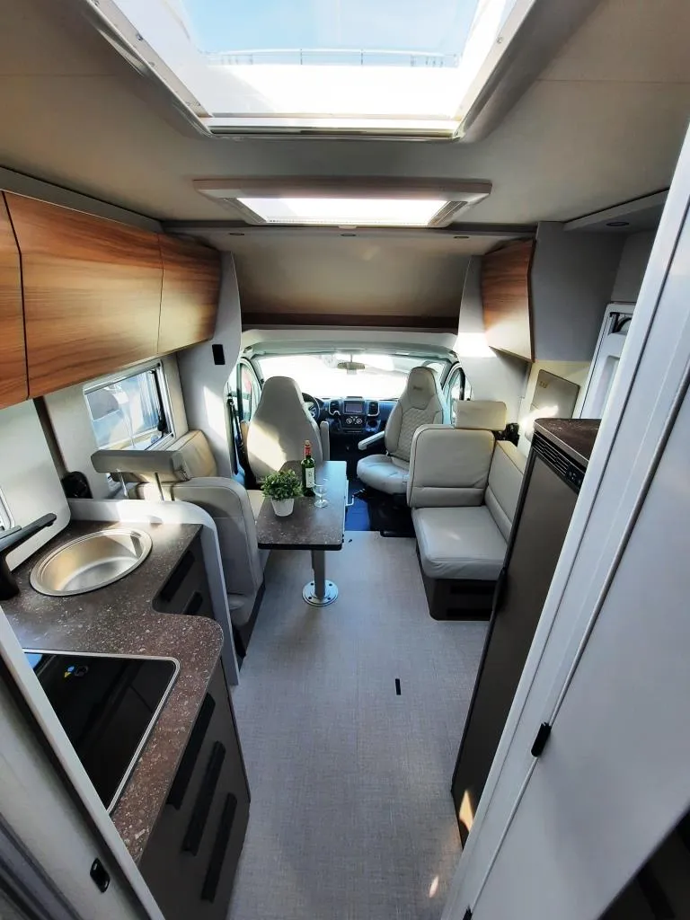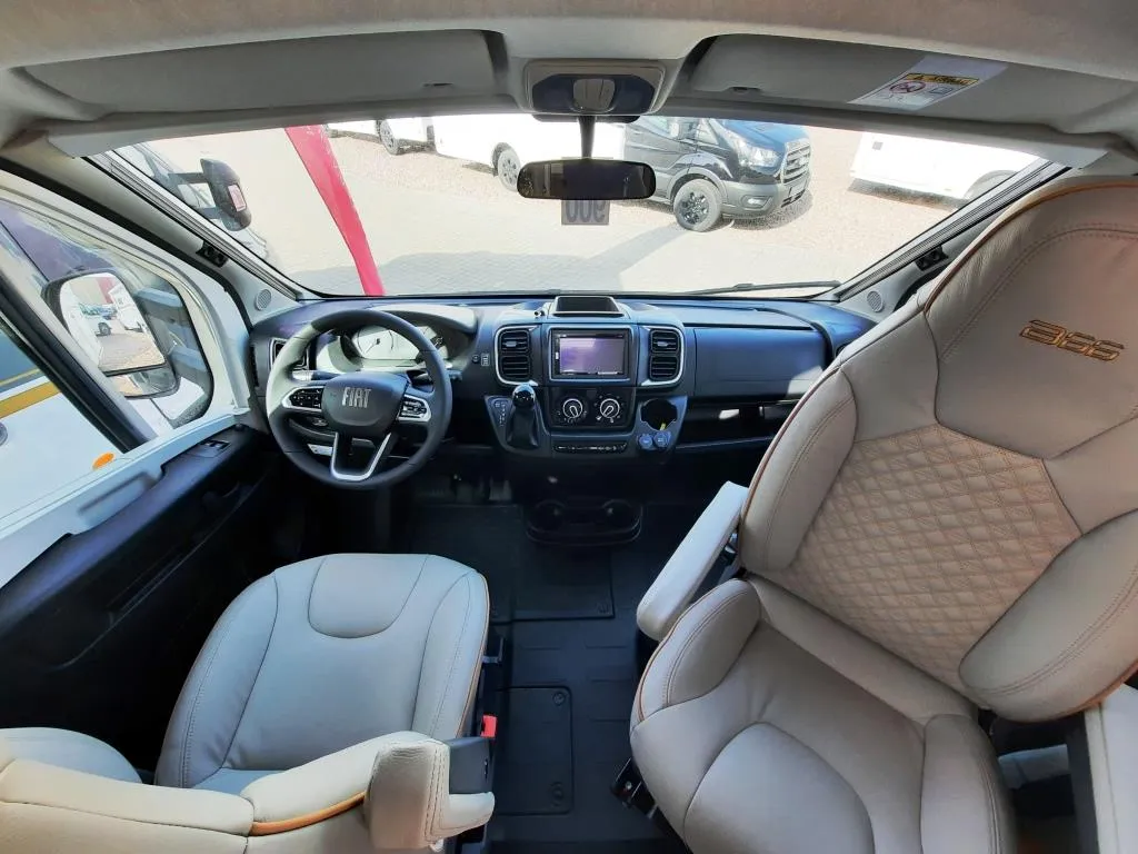 Fiat Ducato 140 PS Automatikgetriebe , ABS, Alufelgen 16 “, Dieseltank 60l, ESP inkl. ASR, Hill Holder & Traction +, Frontspoiler in Wagenfarbe lackiert, Ganzjahresreifen, Reifenluftdrucksensor, Nebenscheinwerfer, Scheinwerfer mit schwarzen Rahmen, Start&Stopp Funktion, Tempomat, Fahrer- & Beifahrerairbag, Außenspiegel elektrisch verstell- & beheizbar, Elektronische Parkbremse, Fahrerhausverdunkelungssystem, Lederlenkrad und Lederschaltknauf, Aufbautür breite Ausführung inkl. Fenster, Coupe-Einstieg, GFK-Dach, zweite Heckgaragentür, Rahmenfenster, Markise 4,0m, Fliegenschutztür, Thermo-Floor-Funktionsdoppelboden, Kocher mit Glasabdeckung und separater Spüle, Kompressorkühlschrank, Gasheizung Combi 6, CP Plus, Multimediastation inkl. Rückfahrkamera und Radiovorbereitung (DAB+ und Antenne im Außenspiegel ), vollautomatische Sat-Anlage mit TV-Halter u.v.m.*
