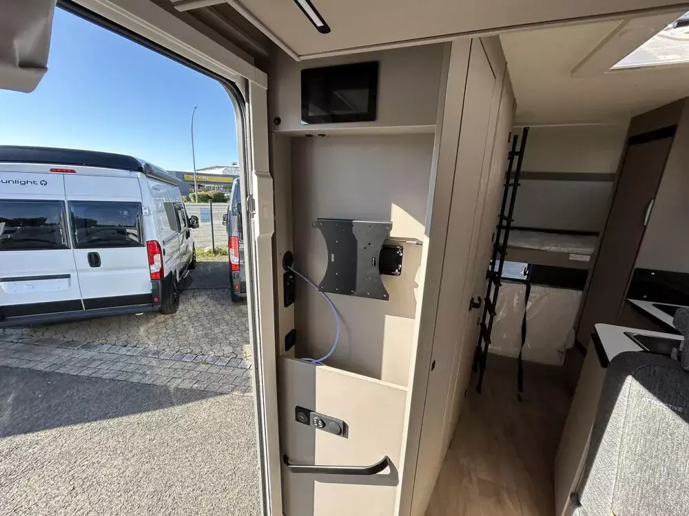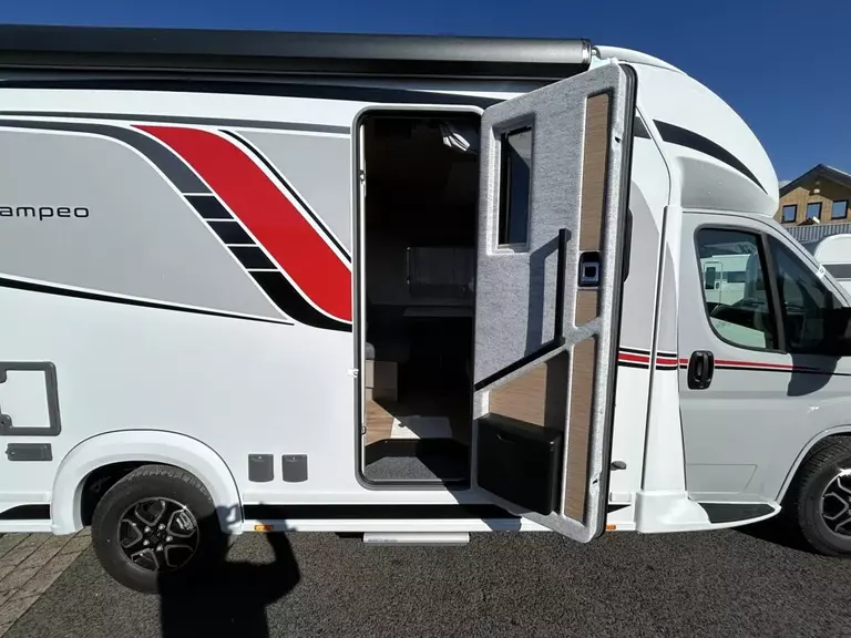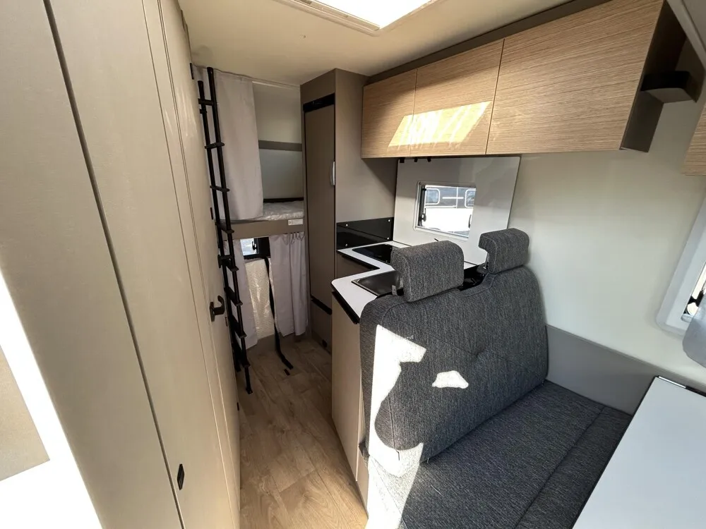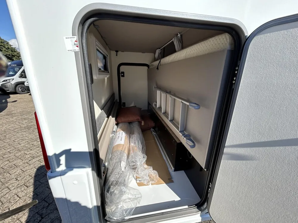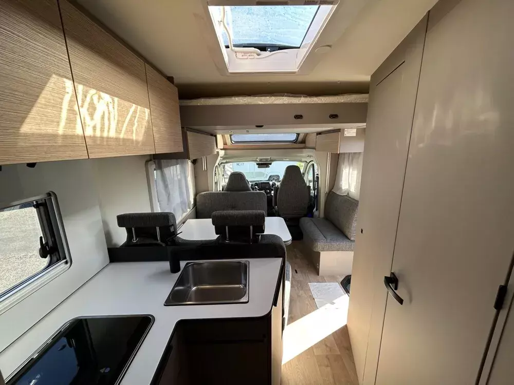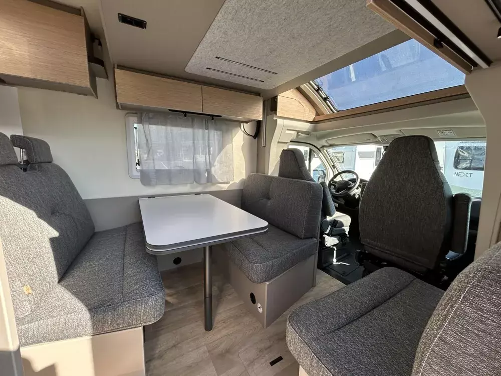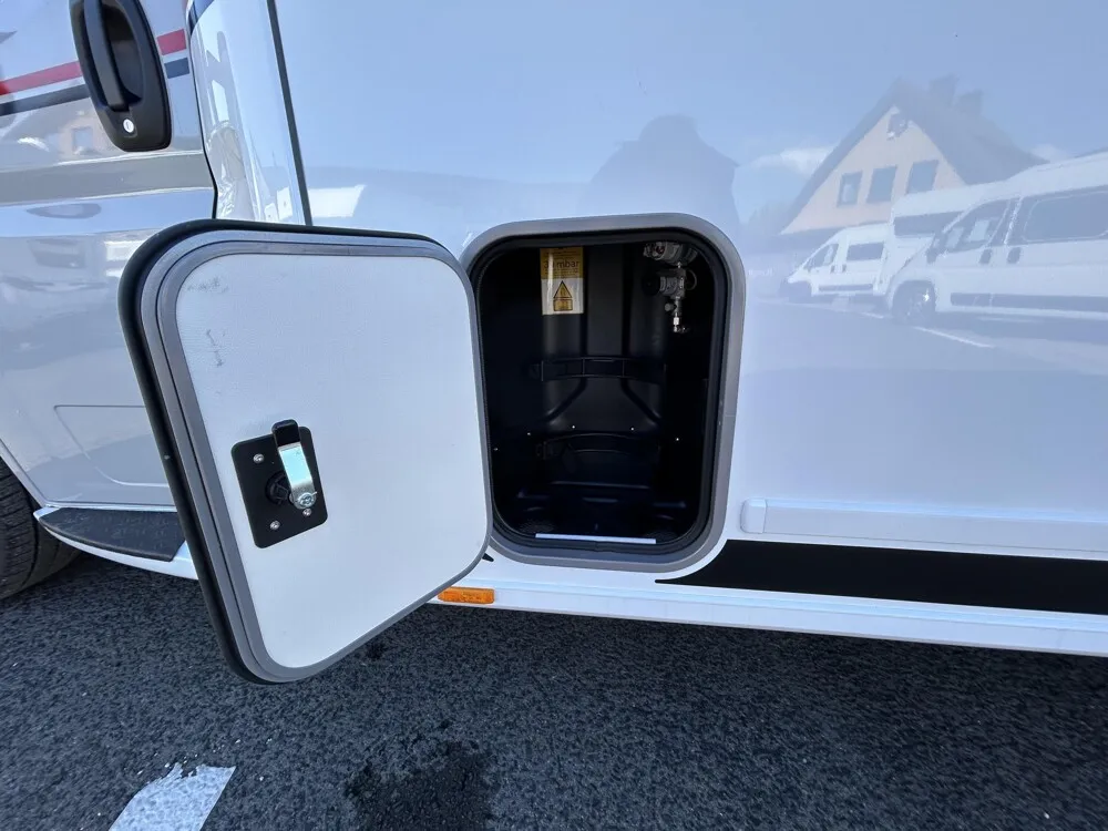 - Komfort Paket 1 (Fahrerhausverdunkelung, Cassettenplissees Front- und Seitenscheiben, Garagenklappe in Fahrtrichtung links, Sun-Roof (Aufstellbar, mit Verdunkelung und Fliegenschutz), Aufbautür breite Ausführung (mit Fenster und Zentralverriegelung), Rahmenfenster, Dachfenster 50 x 70 cm mit Verdunkelungsrollo und Fliegenschutz im Wohnbereich, Elektrisch ausfahrbare Einstiegsstufe, Licht Paket, 7 Display für My Bürstner App)