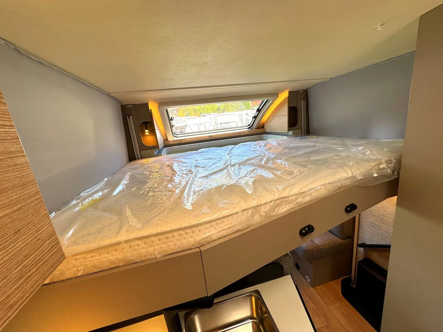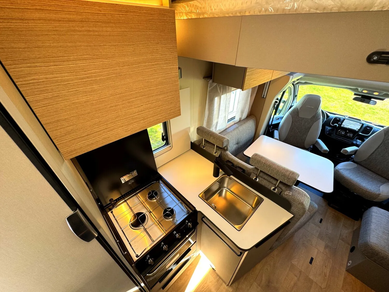 - Komfort Paket 1 (Fahrerhausverdunkelung, Cassettenplissees Front- und Seitenscheiben, Garagenklappe in Fahrtrichtung links, Sun-Roof (Aufstellbar, mit Verdunkelung und Fliegenschutz), Aufbautür breite Ausführung (mit Fenster und Zentralverriegelung), Alurahmenfenster, Dachfenster 50 x 70 cm mit Verdunkelungsrollo und Fliegenschutz im Wohnbereich, Elektrisch ausfahrbare Einstiegsstufe, Licht Paket, 7 Display für My Bürstner App)
