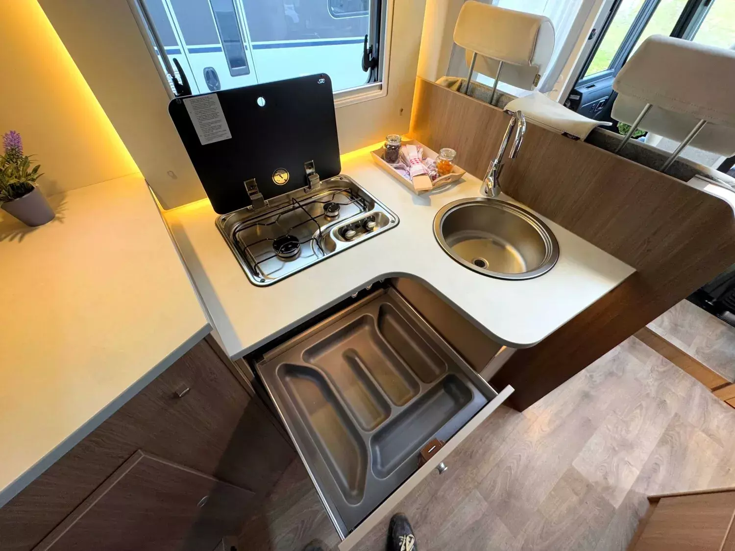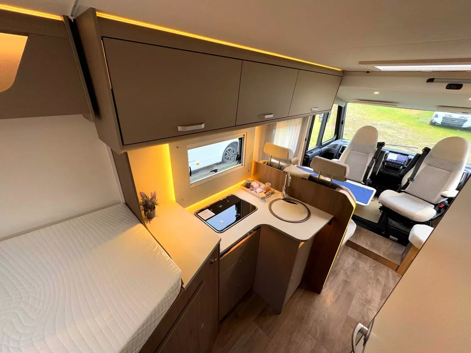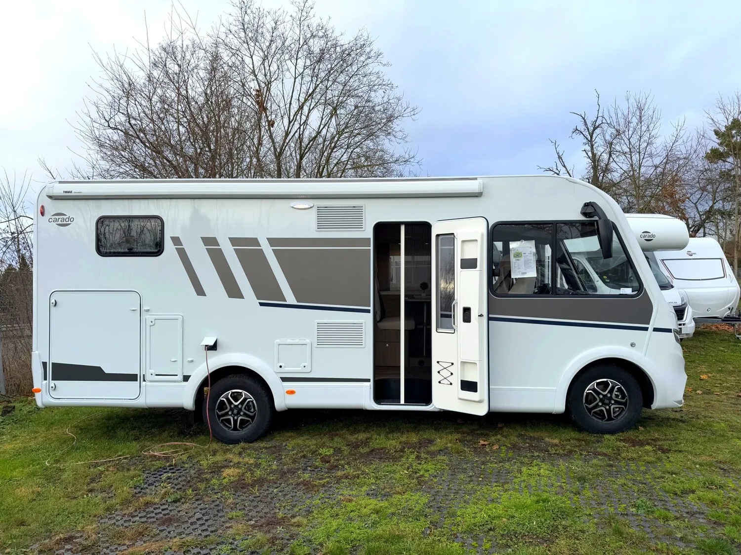 - Carado Serienausstattung Integrierte (Tempomat, Traction+ mit Bergabfahrassistent, Elektrisch verstell- und beheizbare Außenspiegel in Reisebus-Optik mit Weitwinkel, Multifunktionslenkrad, Voll LED-Frontbeleuchtung (Tagfahr-, Abblend?,, Fern?, und Blinklicht), Dach- und Heckaußenhaut aus widerstandsfähigem GFK, Fahrerhaus Jalousien für beste Isolation und Sichtschutz, Zuladung Heckgarage bis zu 150 kg, Ergonomisch geformte Polster für mehr Sitzkomfort, Isofix für zwei Plätze, Hochwertige Matratzen mit erhöhtem Liegekomfort in allen Betten, Matratzenbezüge abnehmbar und waschbar, Holzlattenrost in allen Festbetten für erhöhten Liegekomfort, Hinterlüftete Stauschränke und Truhen, LED-Beleuchtung integriert über den Dachschränken, Bord Control Panel mit Angabe aller Füllstände und Batteriekapazitäten, Zuschalt- und Trennautomatik für Starter- und Aufbaubatterie sowie Kühlschrank, Spiegel mit Garderobenhaken, Gasflaschenkasten für zwei Gasflaschen mit 11 kg Füllgewicht, Ergonomisch angeordnete Küche mit großzügiger Arbeitsfläche, Großes Rundspülbecken aus Edelstahl mit Abdeckung, uvm...)