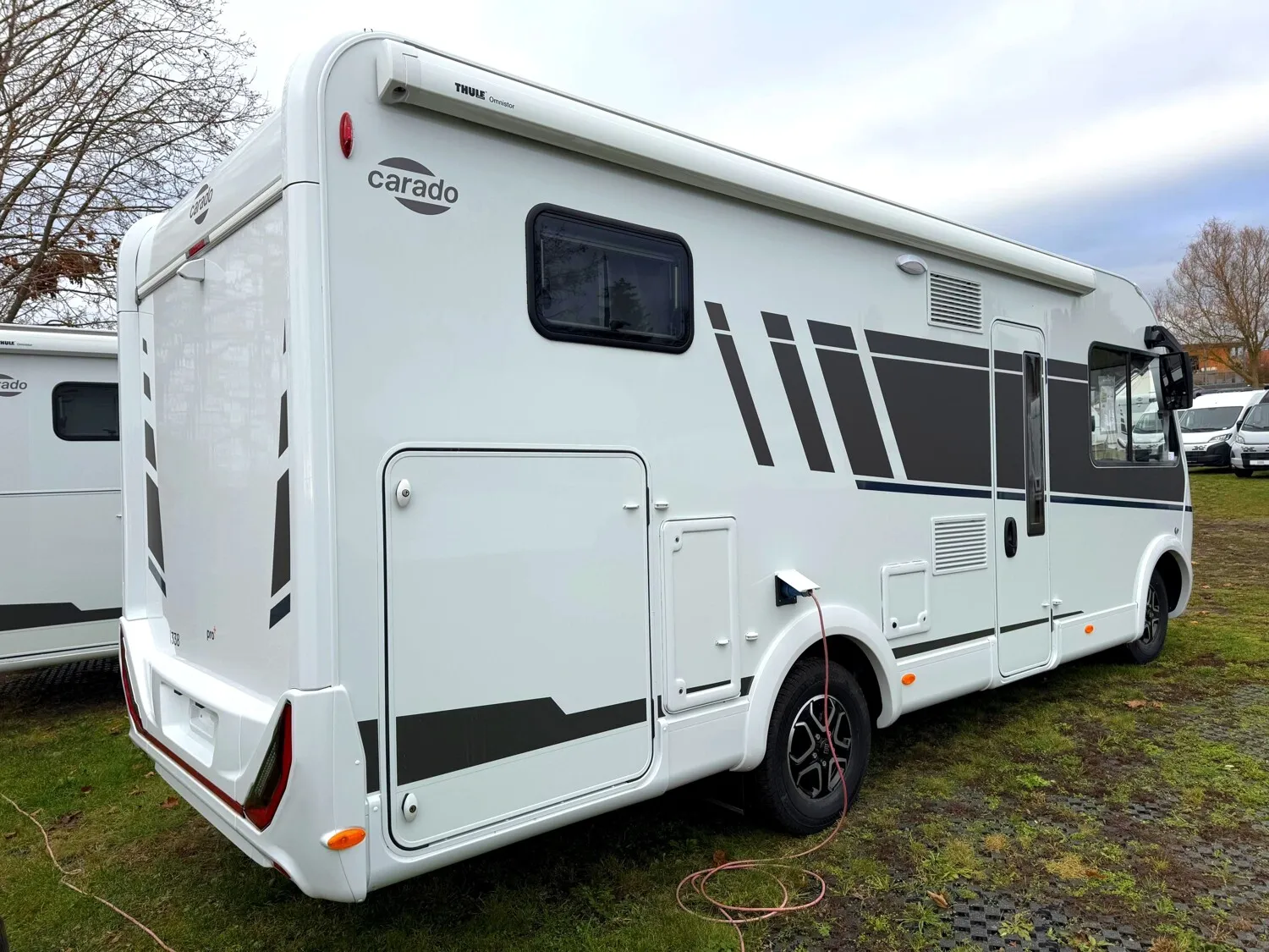 - pro+ Paket I338 - Großer Kühlschrank 156 l mit separatem Frosterfach 29 l, Abwassertank isoliert, Rahmenfenster, Markise 4,5 m, Design Applikation Heck, Zweite Außenstauraumklappe (Größe modellabhängig) , Beklebung pro+