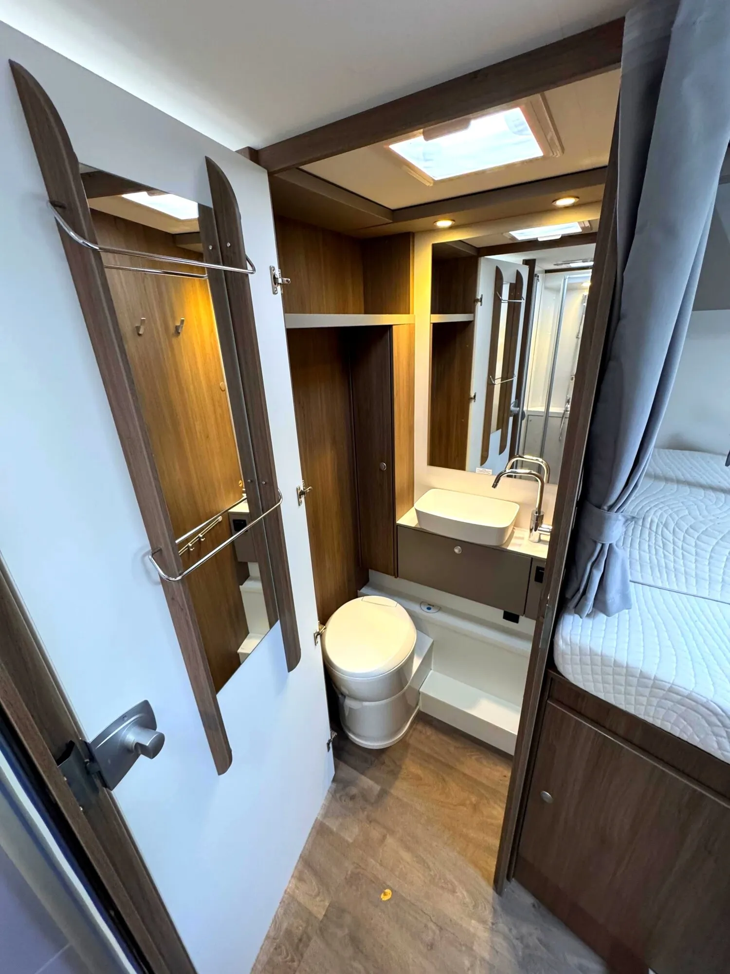 - Basic Paket (Panoramadachhaube 70 x 50 cm, Klarglasdachhaube 40 x 40 cm, Fliegengittertür (einteilig), Kabelvorbereitung für Rückfahrkamera, Komfort-Eingangstür mit Fenster und Verdunkelung, Bridge Light)