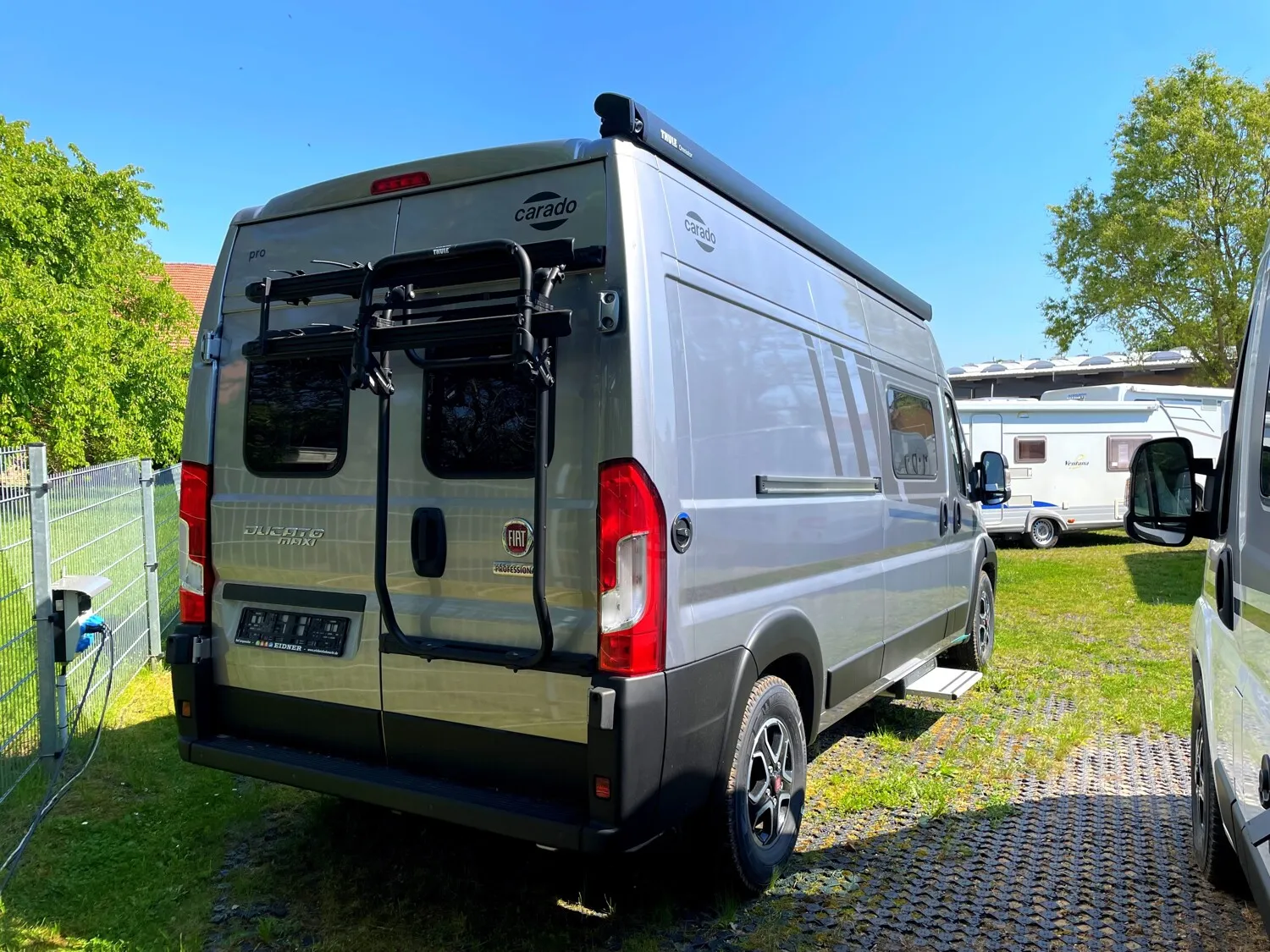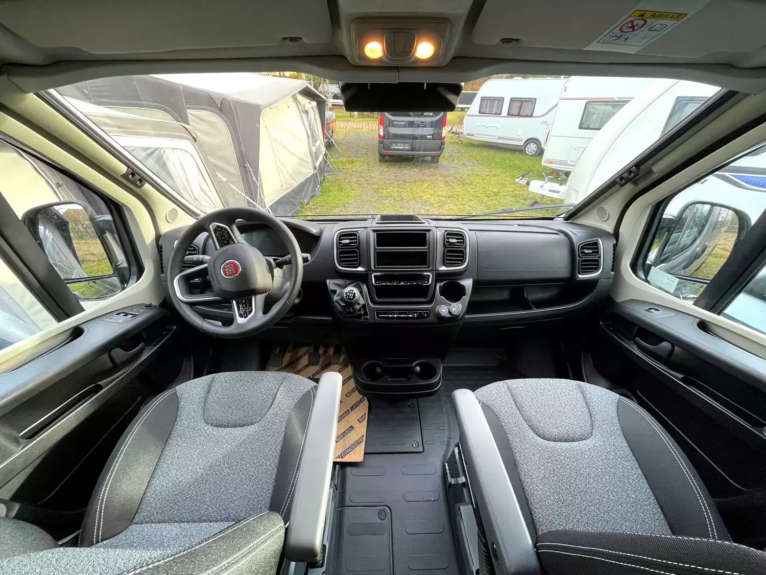 - Basic-Paket (Carado CV 2024) (Dachhaube Midi- Heki 70 x 50 cm über Sitzgruppe|Duschausstattung (Brausekopf ausziehbar, Duschvorhang, Führungsschiene, Brausehalter)|Fenster im Bad |Kleiderstange in der Nasszelle|Breite Einstiegsstufe |Drehplatte für Tischerweiterung ander Sitzgruppe|Kabelvorbereitung für Rückfahrkamera)