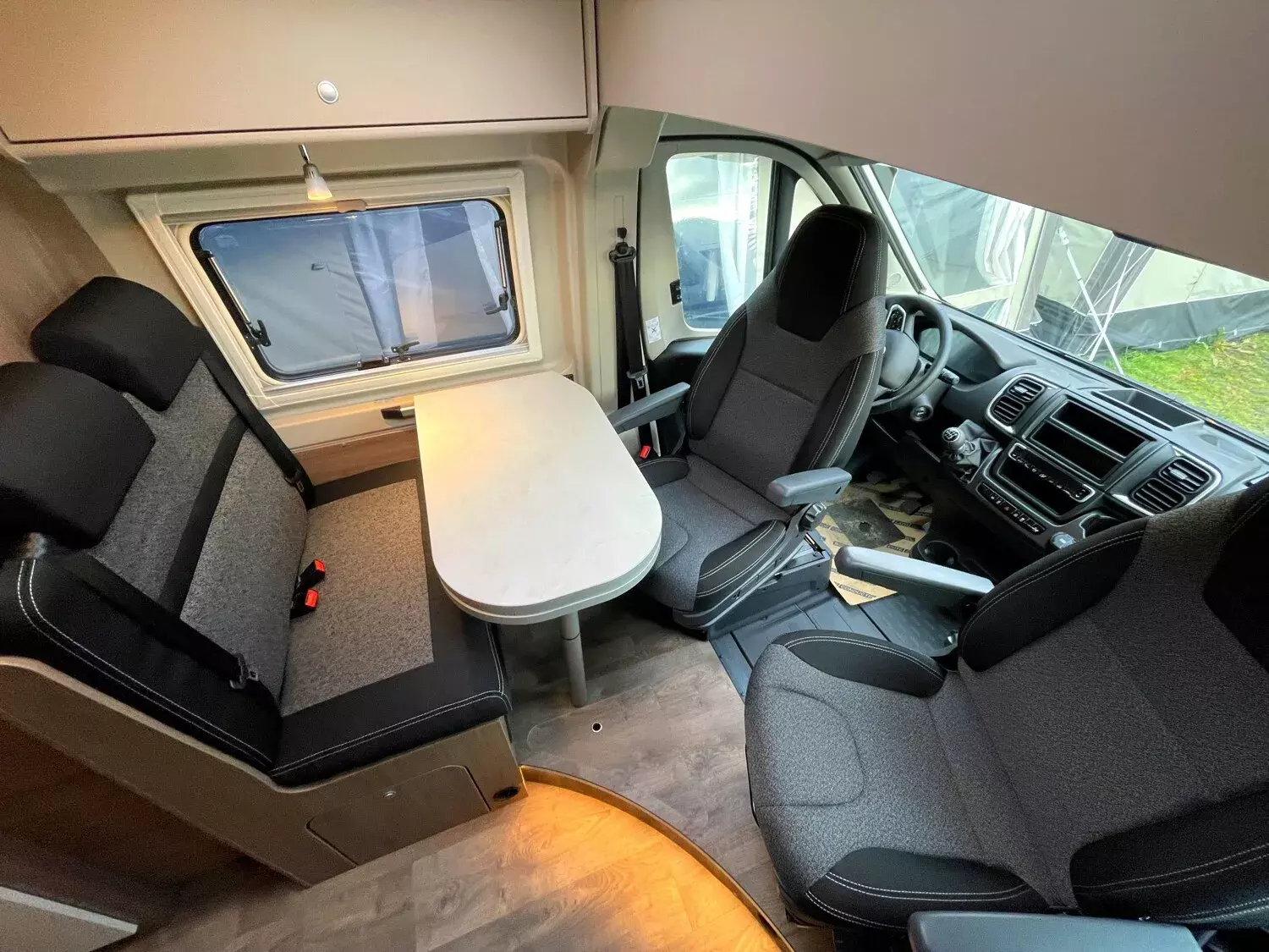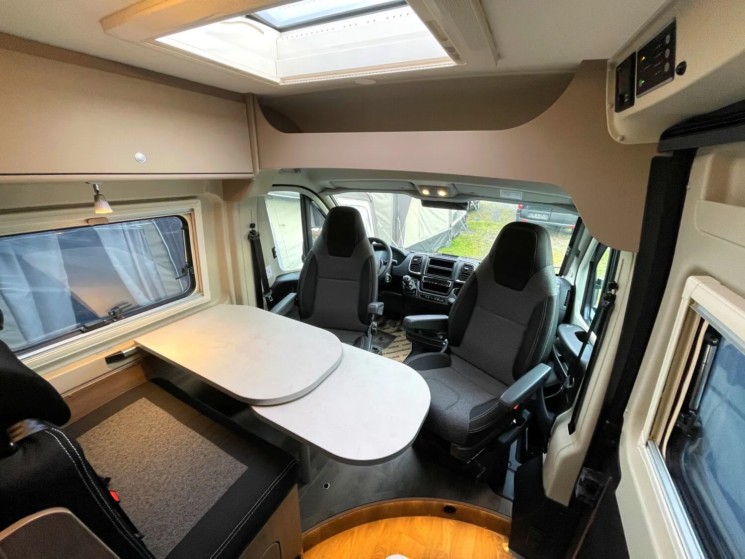- Basic-Paket (Carado CV 2024) (Dachhaube Midi- Heki 70 x 50 cm über Sitzgruppe|Duschausstattung (Brausekopf ausziehbar, Duschvorhang, Führungsschiene, Brausehalter)|Fenster im Bad |Kleiderstange in der Nasszelle|Breite Einstiegsstufe |Drehplatte für Tischerweiterung ander Sitzgruppe|Kabelvorbereitung für Rückfahrkamera)