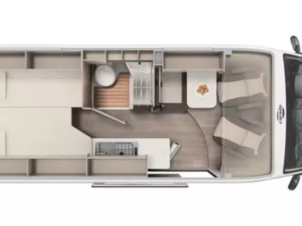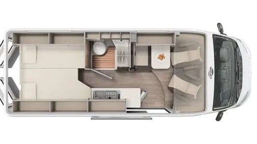 Der CV640 Entry ist ein kompakter, moderner Campervan mit komfortablem Einzelbett-Grundriss, der sich ideal für Paare eignet. Mit seinen 6,36 m Länge bleibt das Fahrzeug angenehm wendig und bietet dennoch ein durchdachtes Raumkonzept mit ausreichend Wohn- und Stauraum.