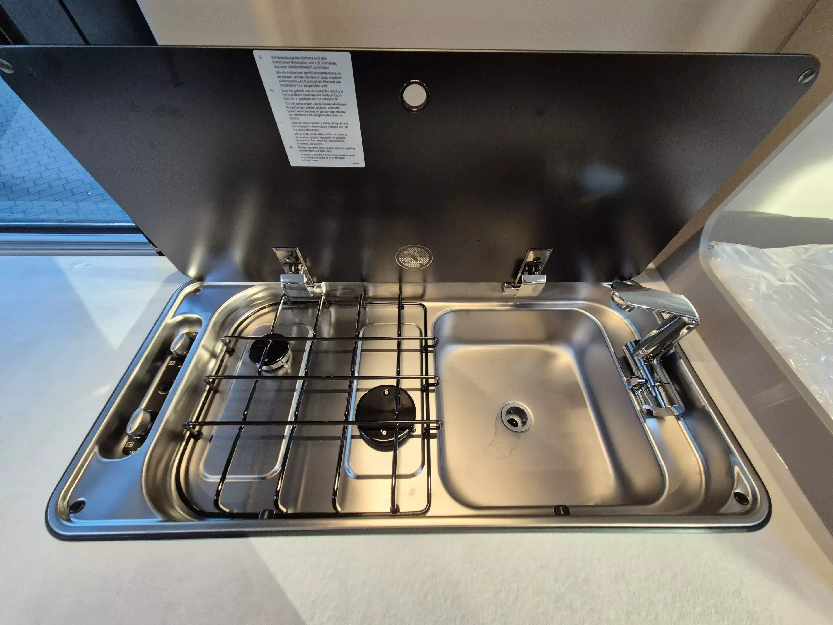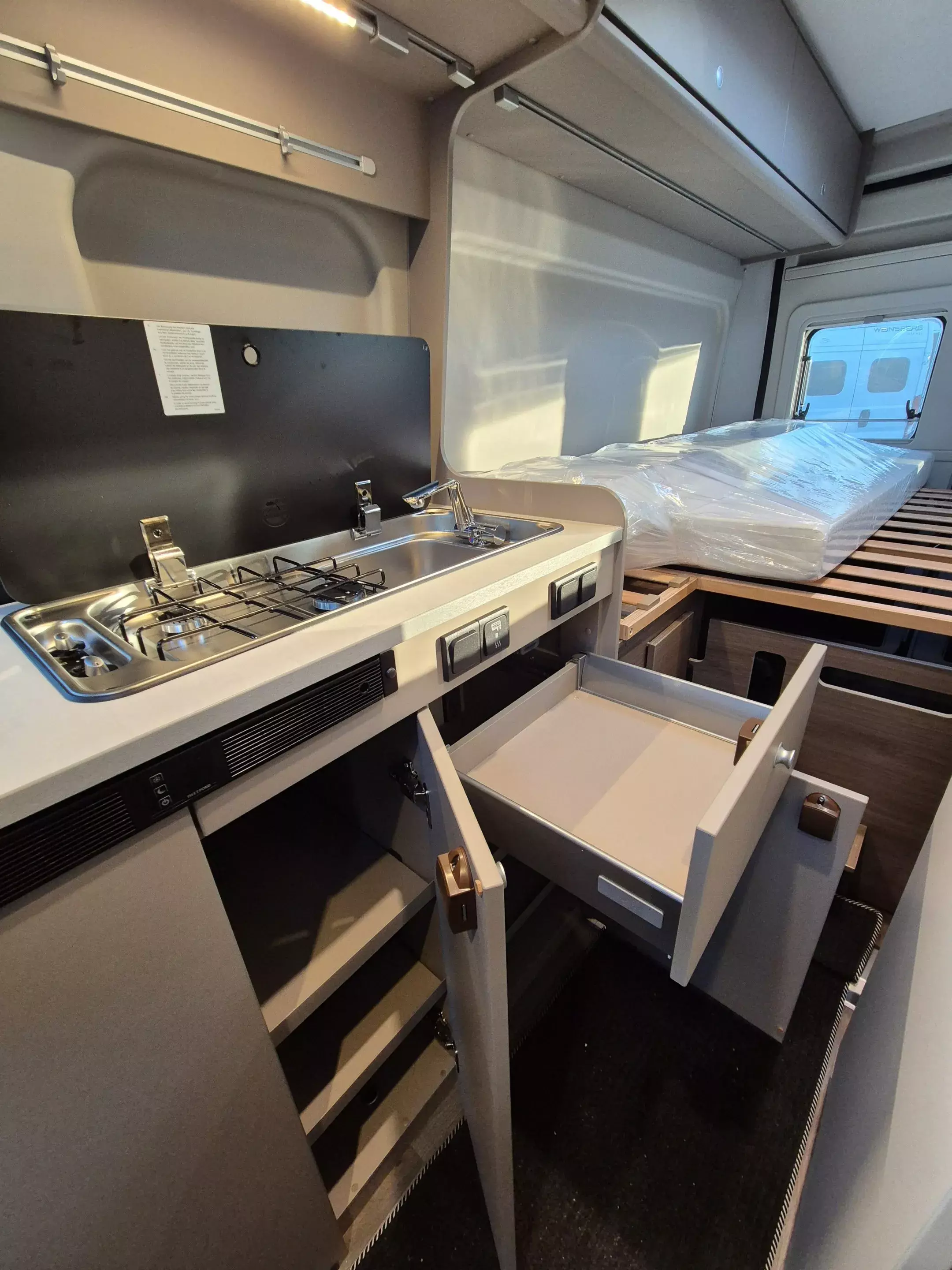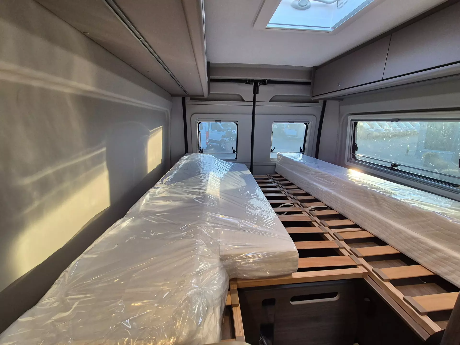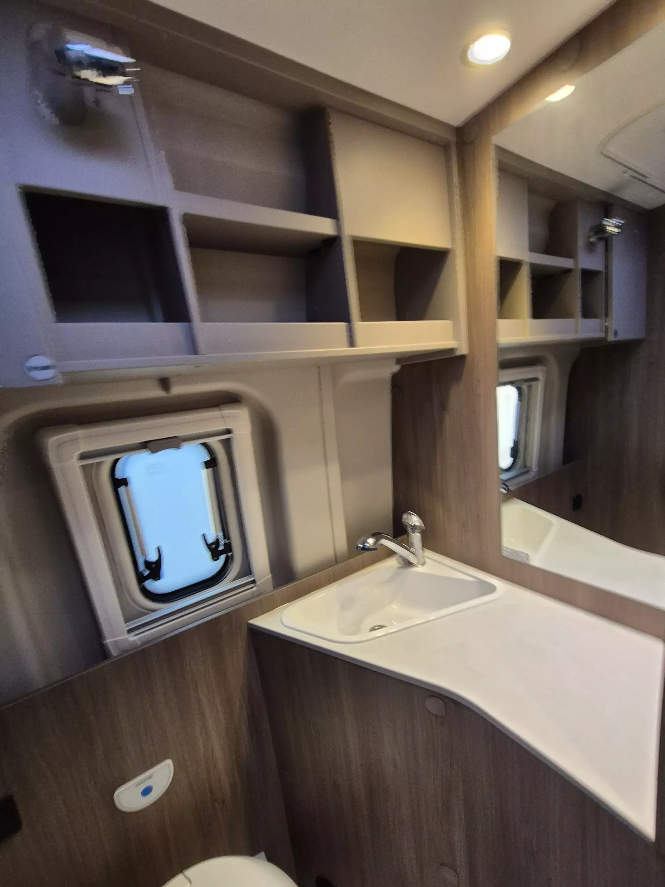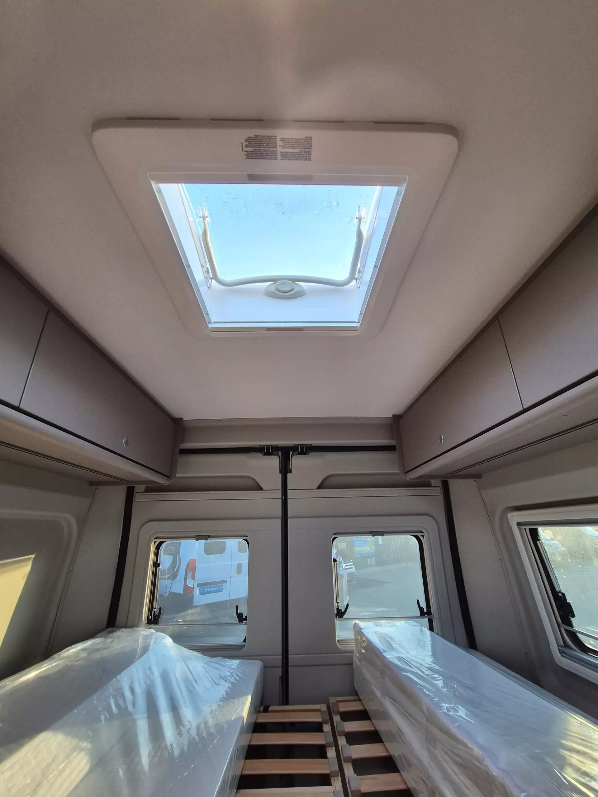 - Basic Paket: Dachhaube Midi Heki 70 x 50 cm über Sitzgruppe ; Duschausstattung; Fenster im Bad ; Kleiderstange in der Nasszelle ; Breite Einstiegsstufe ; Drehplatte für Tischerweiterung an der Sitzgruppe