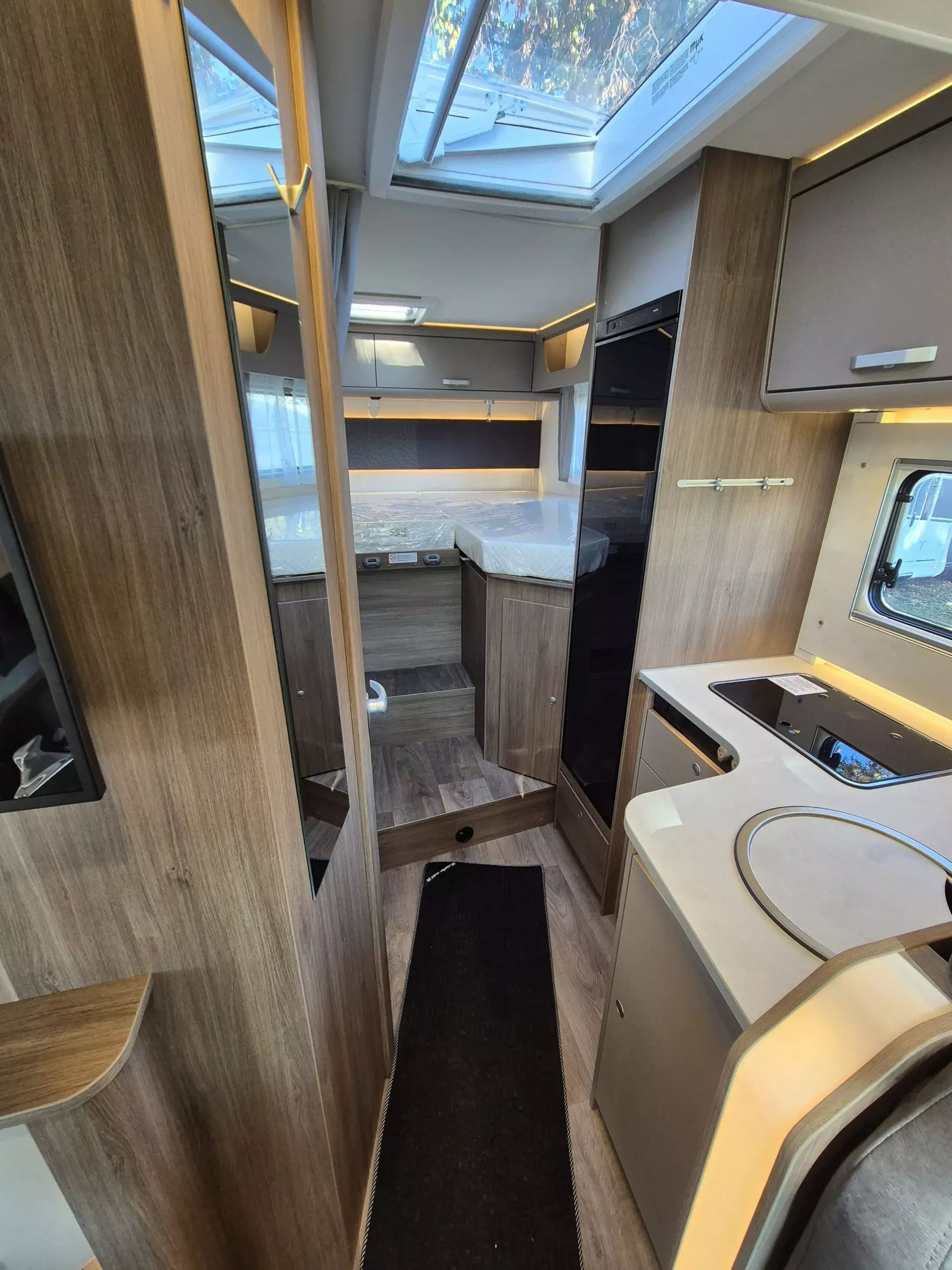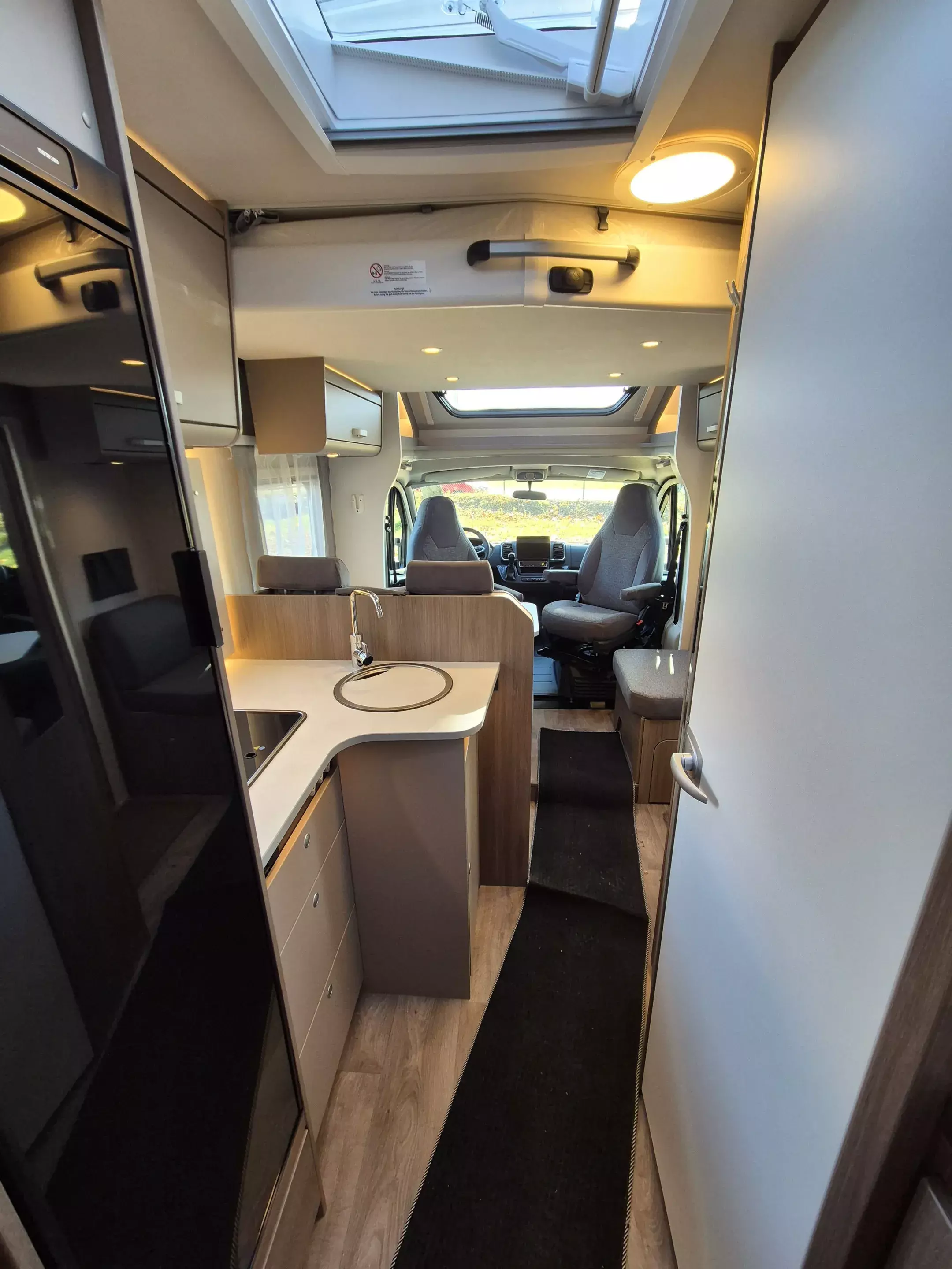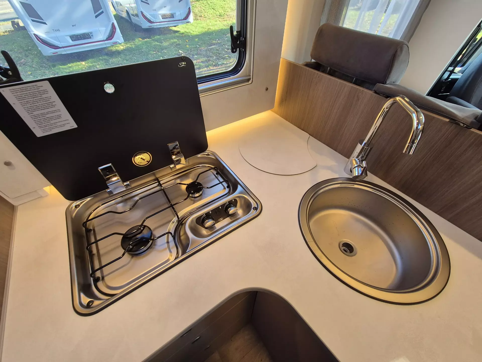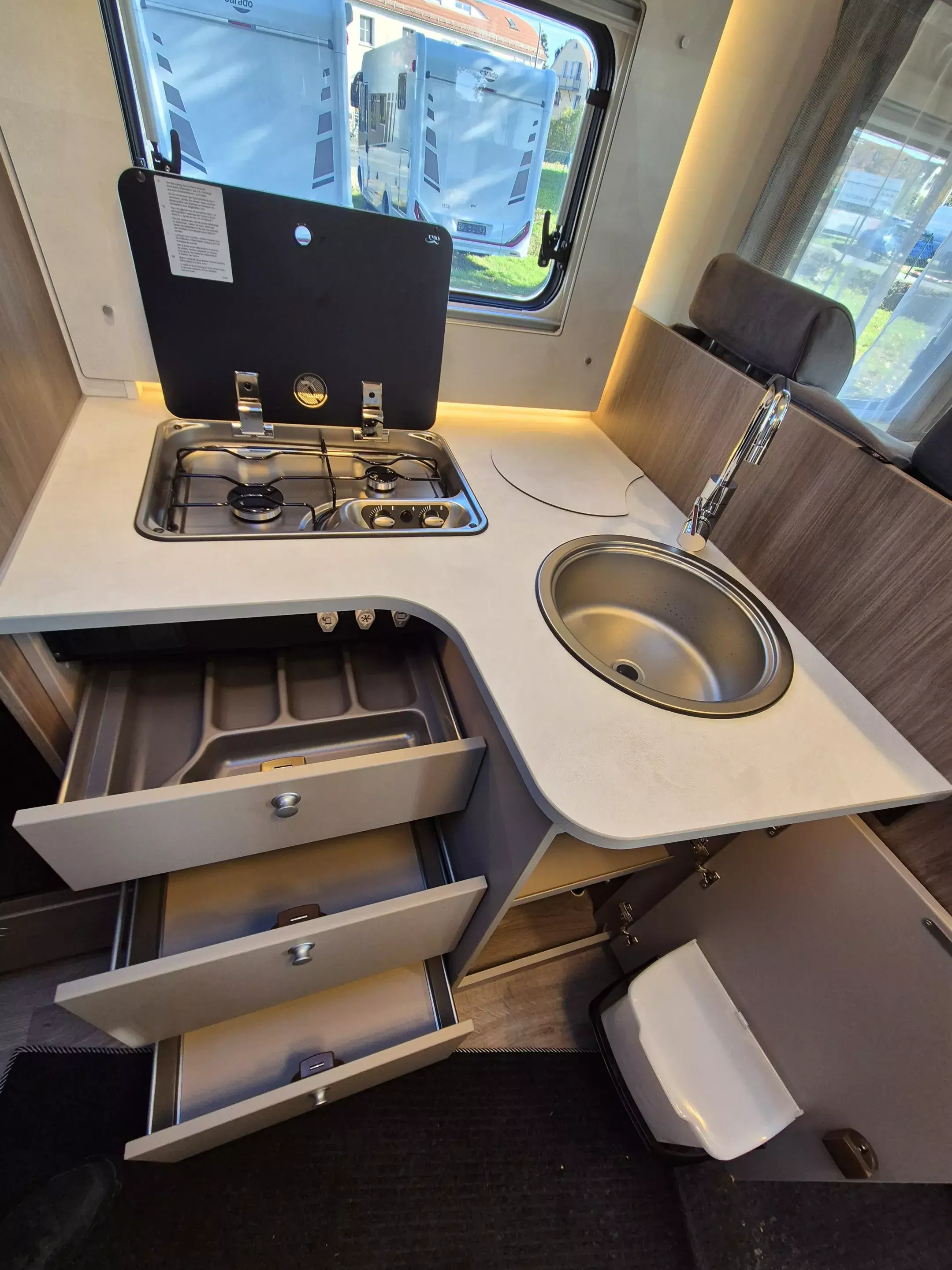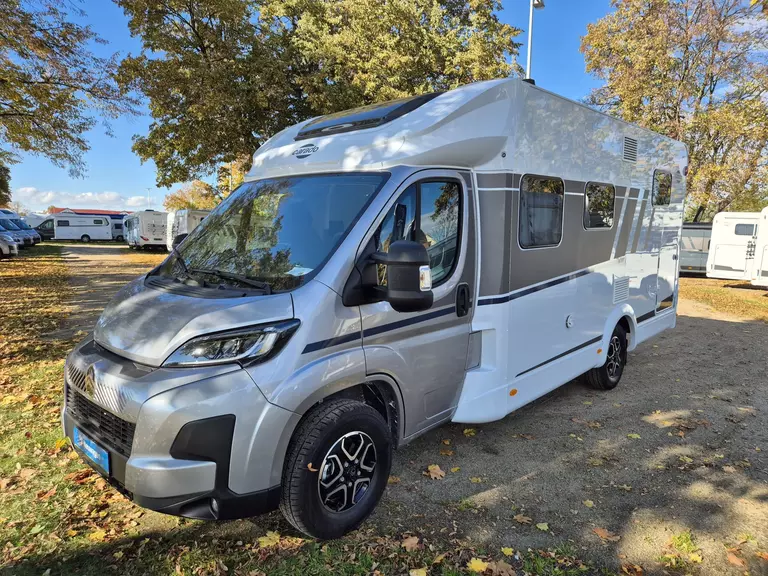 Der T328 pro+ kombiniert modernes Design, intelligente Technik und höchsten Komfort auf kompaktem Raum. Mit dem Citroën Jumper 2.2 BlueHDi (140 PS, Euro 6E) und der 8-Gang-Automatik bist du souverän unterwegs – leise, effizient und angenehm zu fahren. Das umfangreiche pro+ Paket bietet alles, was du für komfortables Reisen brauchst: edle Artense Grau Metallic-Lackierung, Markise, Rahmenfenster, isolierten Abwassertank, Komfort-Eingangstür und das unverwechselbare Heckdesign mit Applikationen. Innen erwartet dich die stilvolle Wohnwelt Grau mit Einzelbetten, Bettenumbau, Hubbett mit Clima-Plux-Elementen und cleverem Stauraumkonzept. Das Digital-Paket sorgt für beste Vernetzung – mit 10″ Radio/Navi, Klimaautomatik, Rückfahrkamera und induktiver Smartphone-Ladefunktion. Für Entertainment und Autarkie sorgt das LTE-Paket mit 22″ Smart-TV, Router, WiFi & LTE-Antenne. Die Voll-LED-Scheinwerfer, Combi 6E-Heizung und hochwertige Materialien runden das Gesamtbild ab.