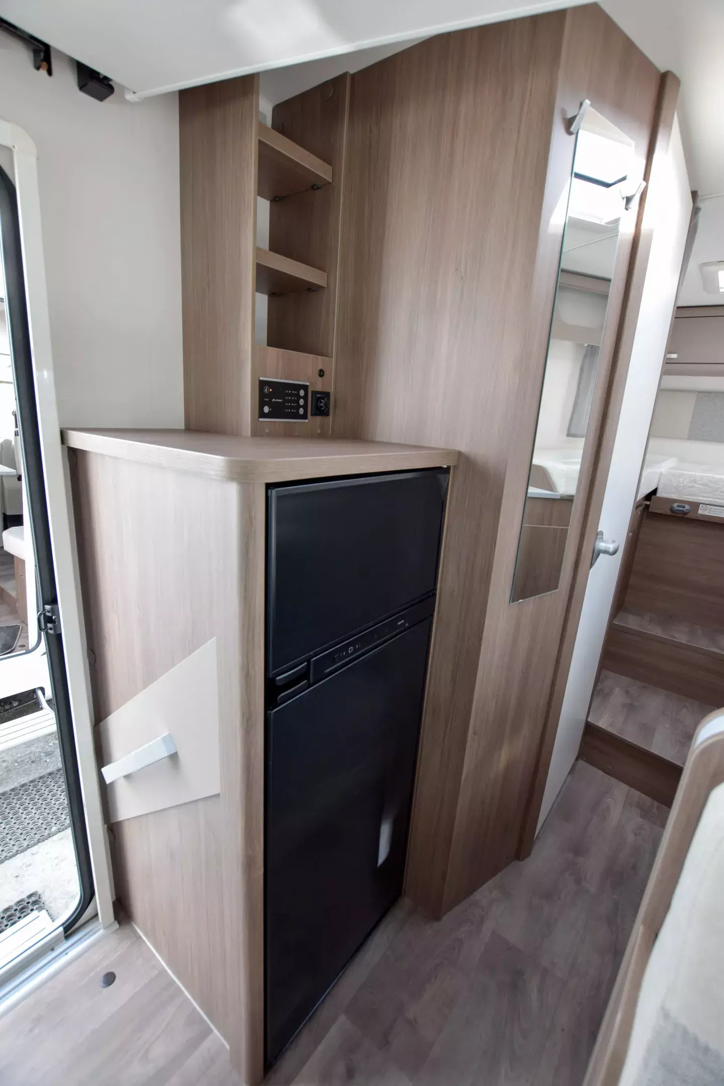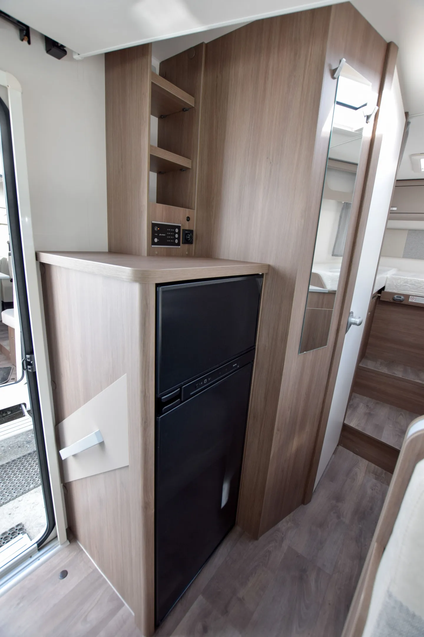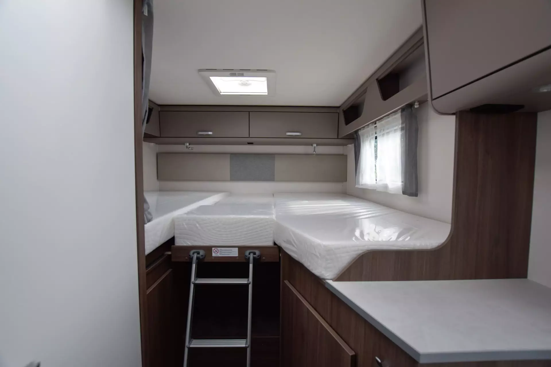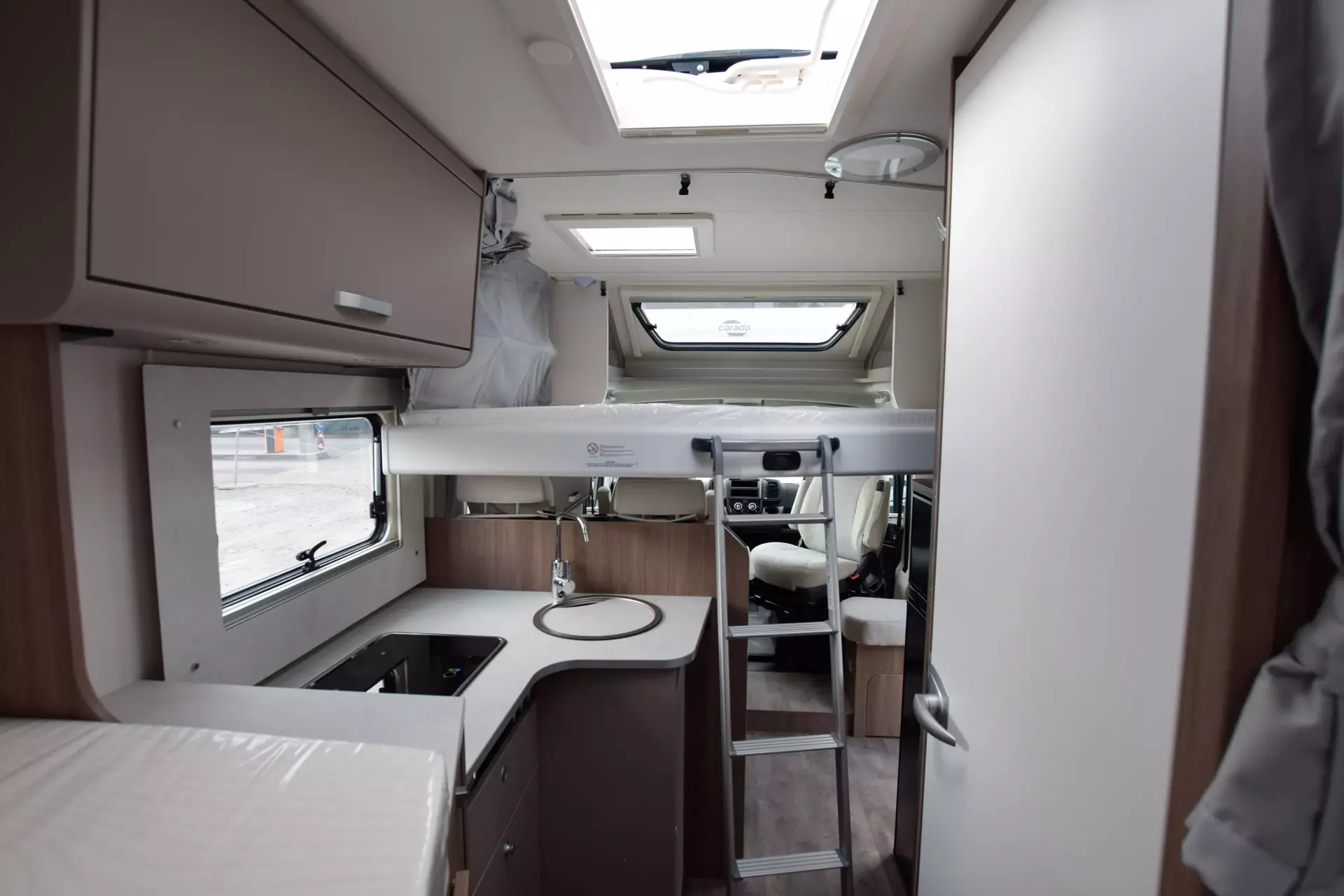 - Basic Paket; Panoramadachhaube 70 x 50 cm; Klarglasdachhaube 40 x 40 cm; Fliegengittertür (einteilig); Komfort-Eingangstür mit Fenster und Verdunkelung; Bridge Light