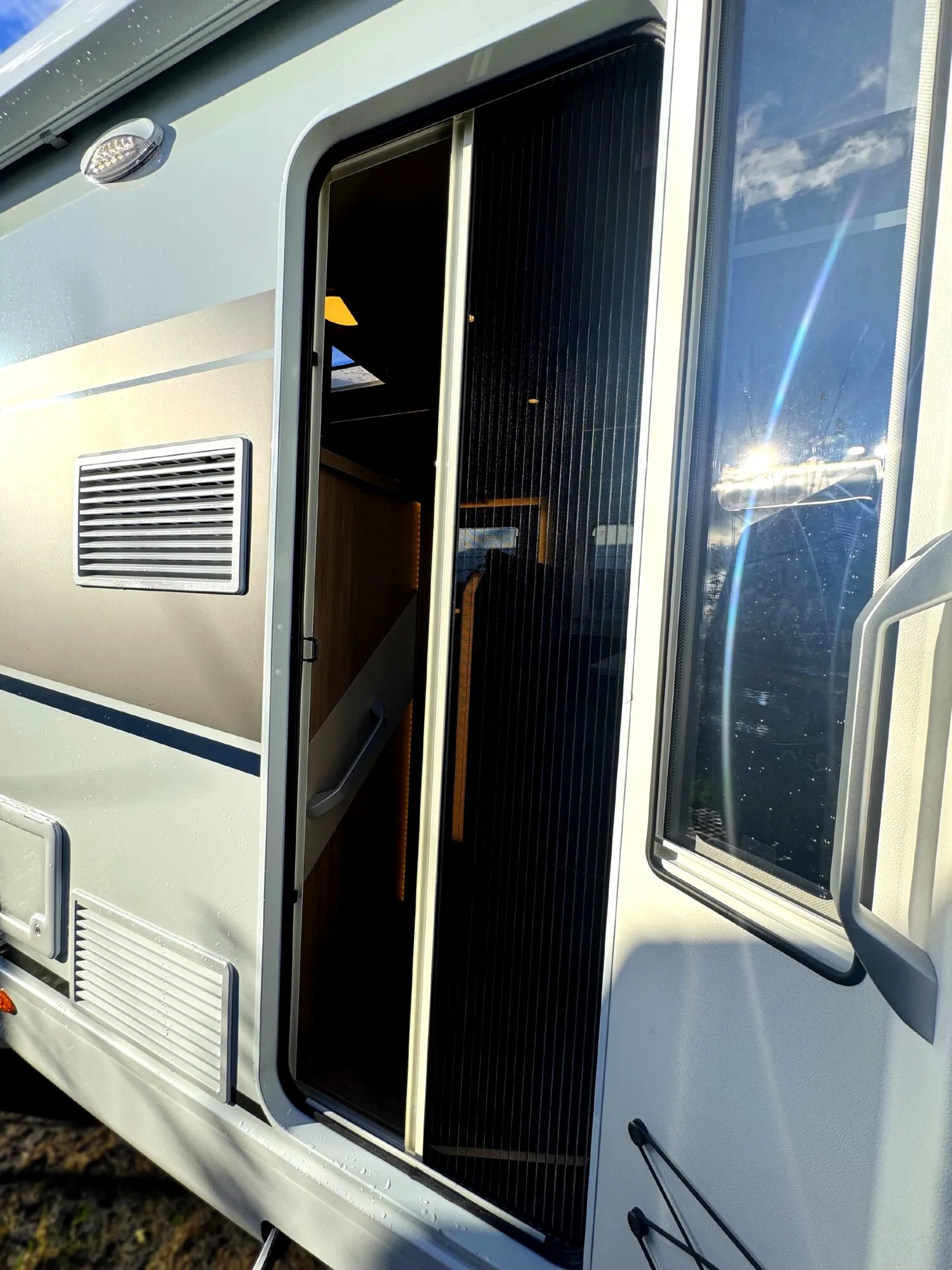 - Basic Paket - (Panoramadachhaube 70 x 50 cm, Klarglasdachhaube 40 x 40 cm, Fliegengittertür (einteilig), Komfort-Eingangstür mit Fenster und Verdunkelung, Bridge Light)
