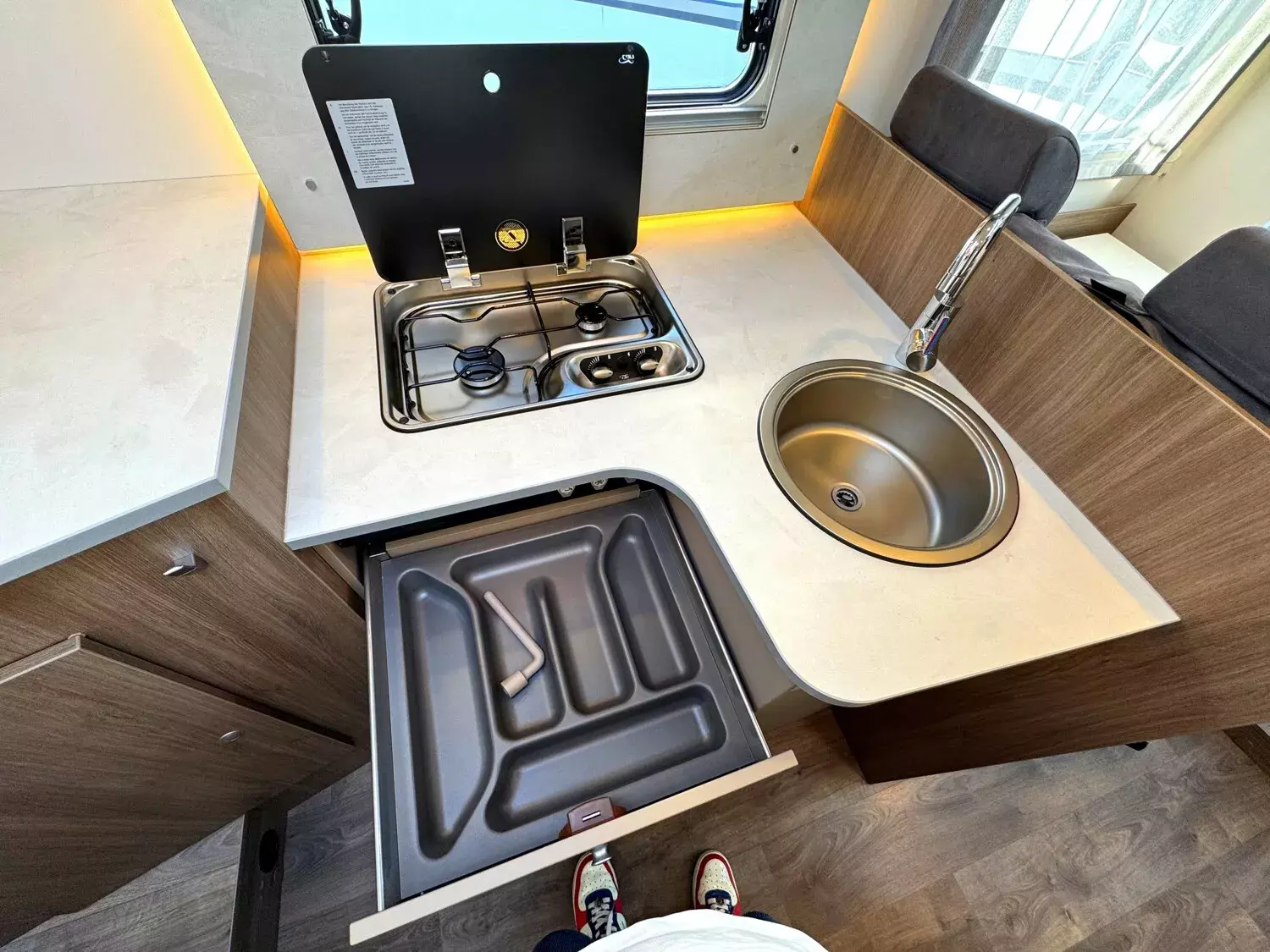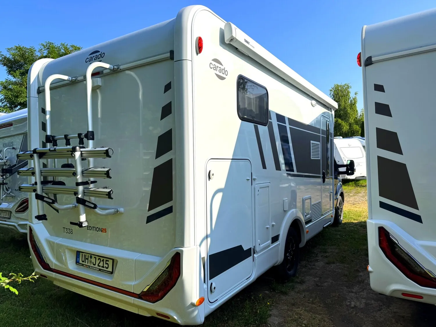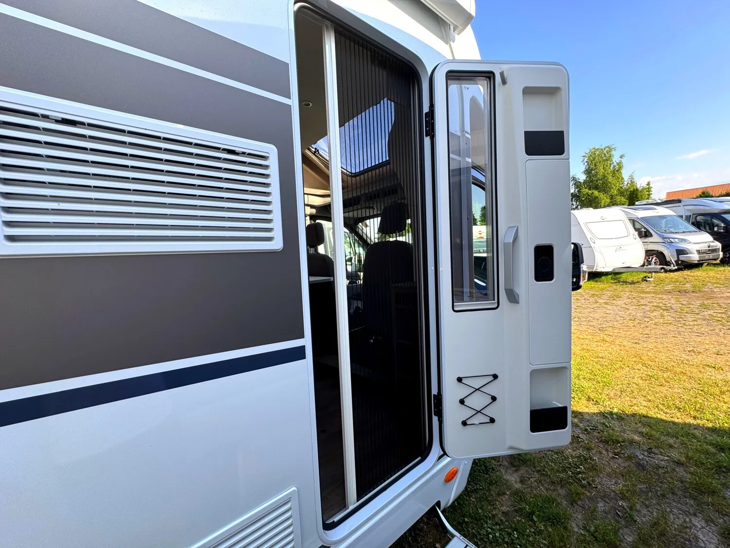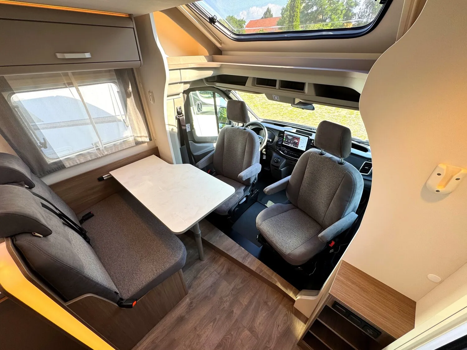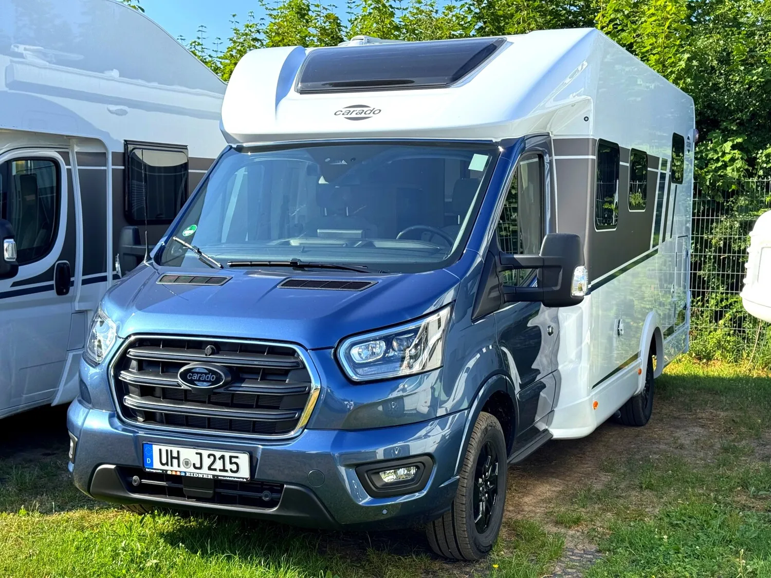 - EDITION25 Paket (Chassisfarbe Chroma Blau, 16" Alufelgen, Faltverdunkelung Fahrerhaus, Fenster in Fronthaube, Großer Kühlschrank 156 l mit separatem Frosterfach 29 l, Abwassertank isoliert, Markise, Rahmenfenster, Design Applikation Heck, Zweite Außenstauraumklappe, Editionsabklebung, Wohnwelt Grau)
