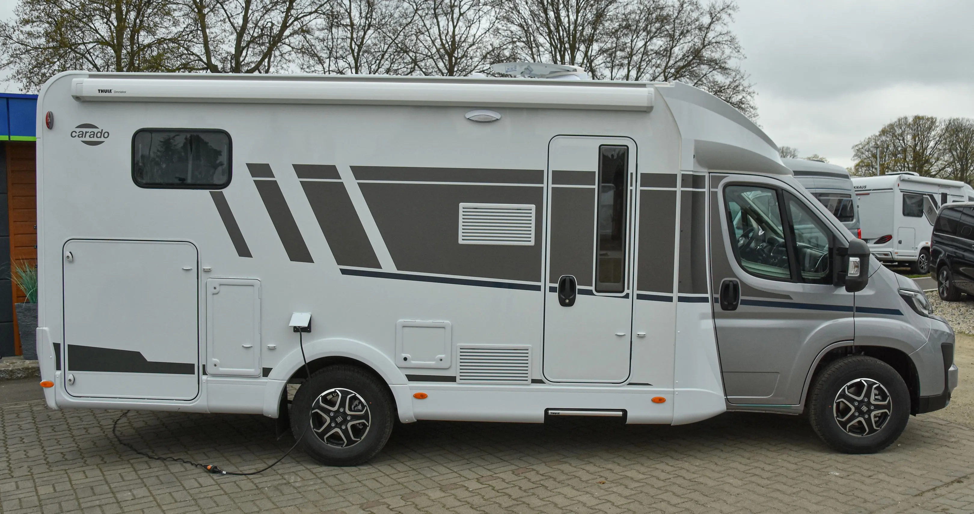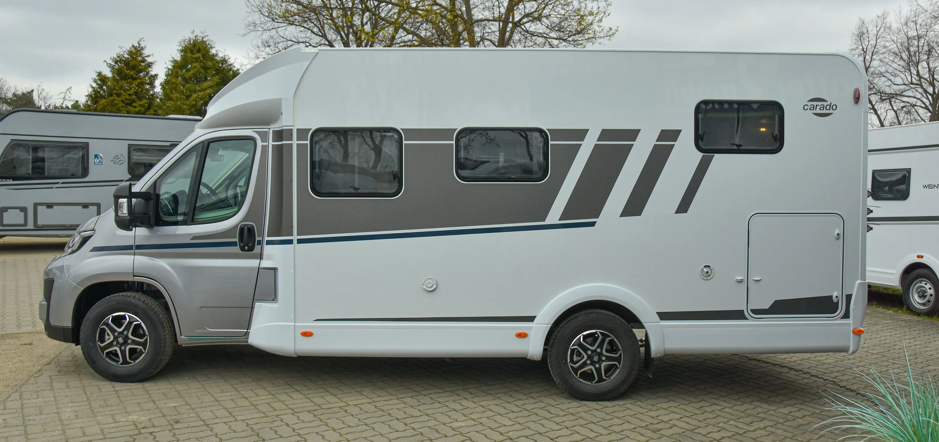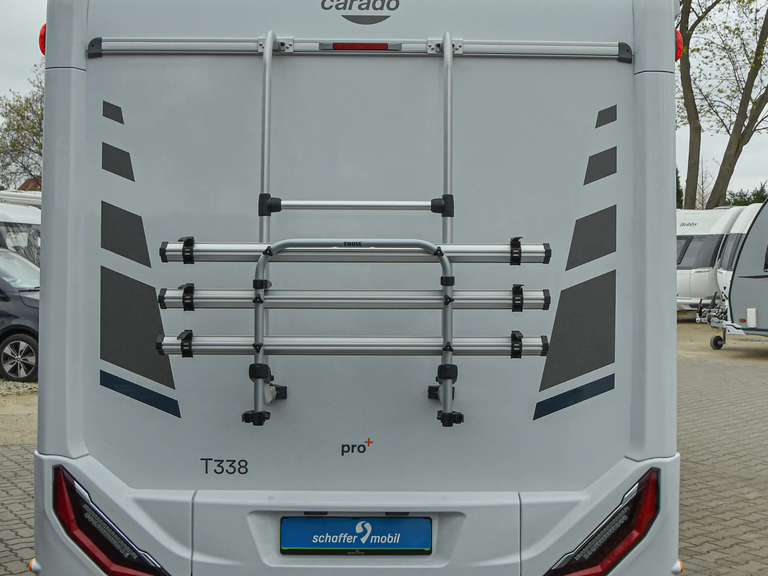 - Carado pro+ Paket (Faltverdunkelung Fahrerhaus, Fenster in Fronthaube, Großer Kühlschrank 156 l mit separatem Frosterfach 29 l, Abwassertank isoliert, Markise 4 m, Rahmenfenster, Design Applikation Heck, Zweite Außenstauraumklappe (Größe modellabhängig), Beklebung pro+)