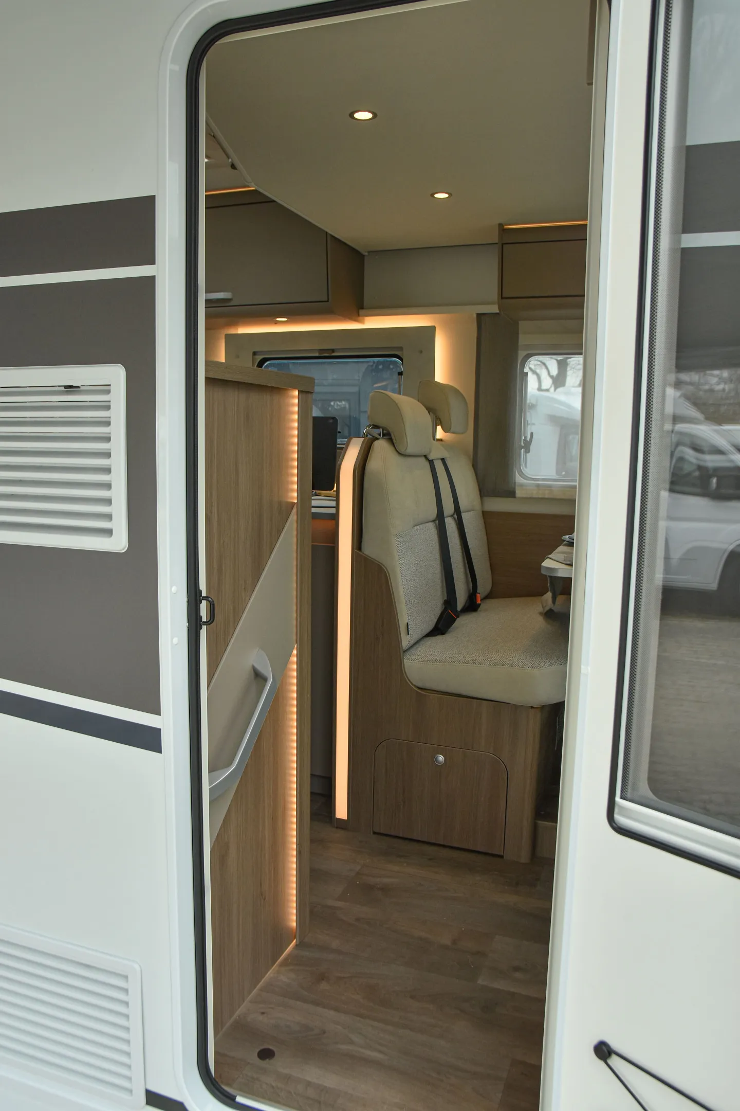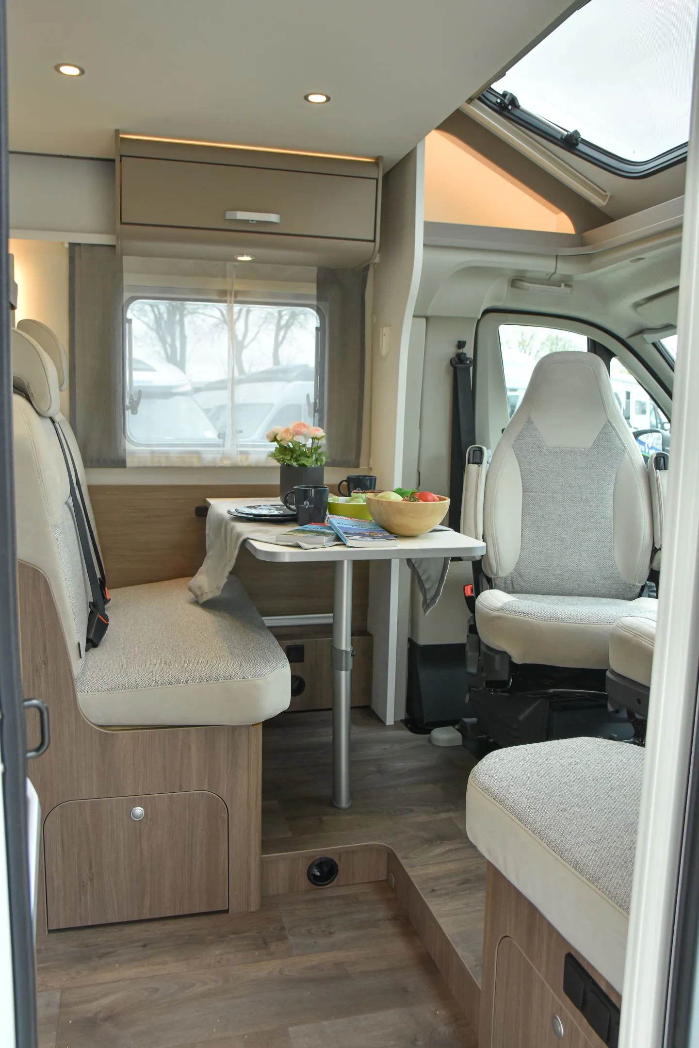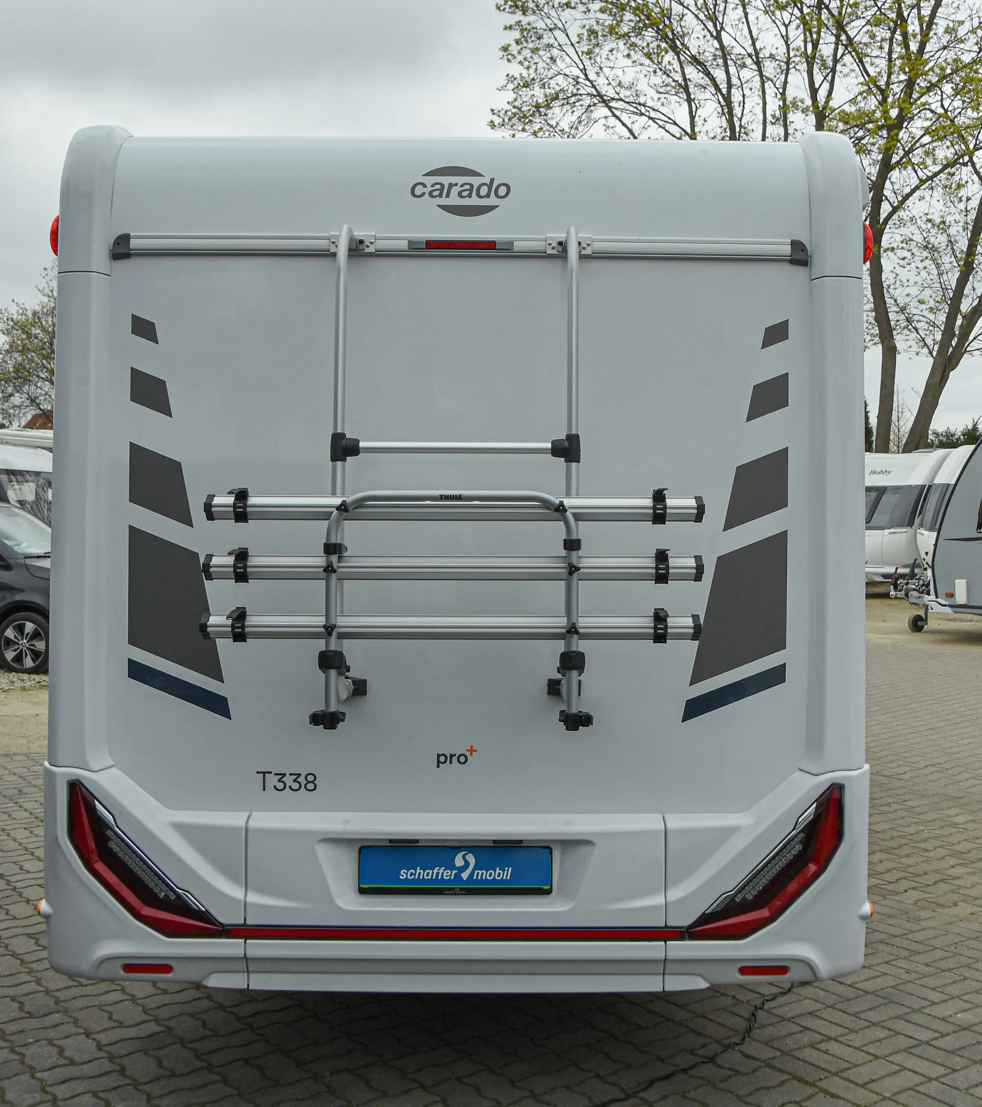 - Carado pro+ Paket (Faltverdunkelung Fahrerhaus, Fenster in Fronthaube, Großer Kühlschrank 156 l mit separatem Frosterfach 29 l, Abwassertank isoliert, Markise 4 m, Rahmenfenster, Design Applikation Heck, Zweite Außenstauraumklappe (Größe modellabhängig), Beklebung pro+)
