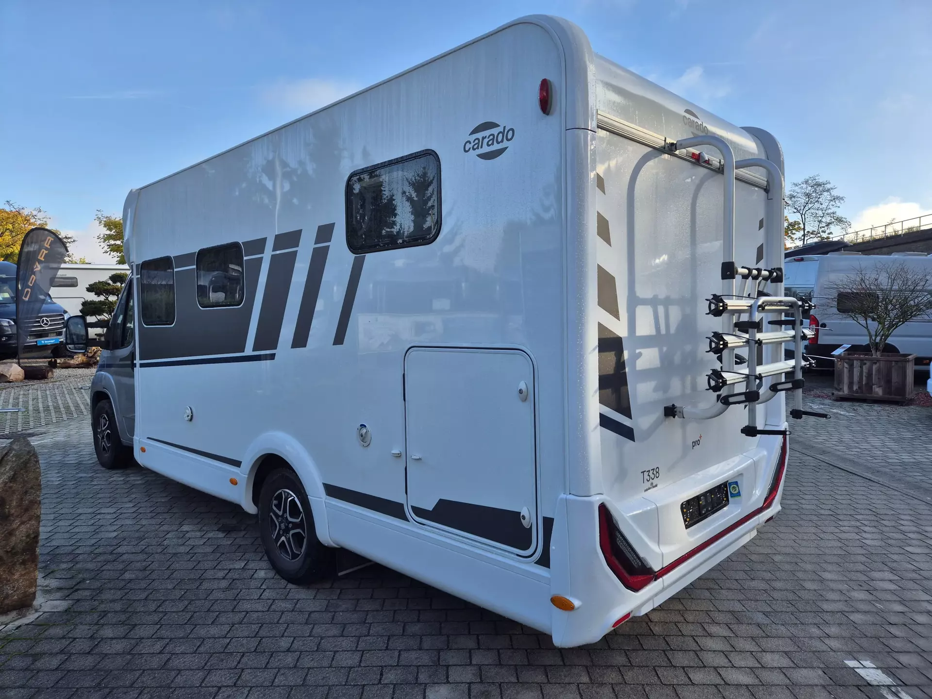 - Carado pro+ Paket (Faltverdunkelung Fahrerhaus, Fenster in Fronthaube, Großer Kühlschrank 156 l mit separatem Frosterfach 29 l, Abwassertank isoliert, Markise 4 m, Rahmenfenster, Design Applikation Heck, Zweite Außenstauraumklappe (Größe modellabhängig), Beklebung pro+)
