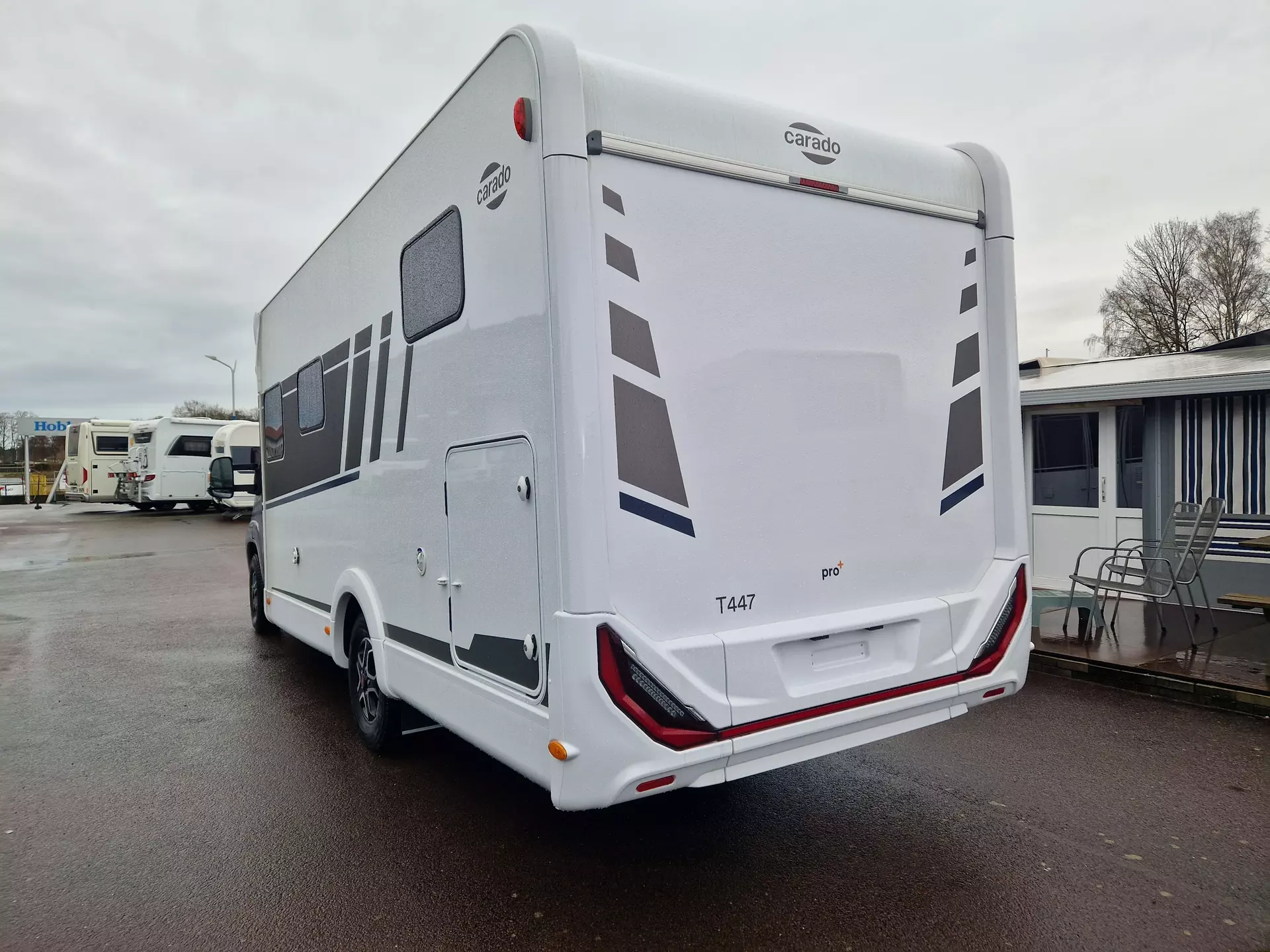 - Pro+ Paket (Abwassertank isloiert, Markise 4 m, Design-Aplikation Heck, Faltverdunkelung, Großer Kühlschrank, Fenster in Fronthaube, Rahmenfenster Schriftzug pro+)