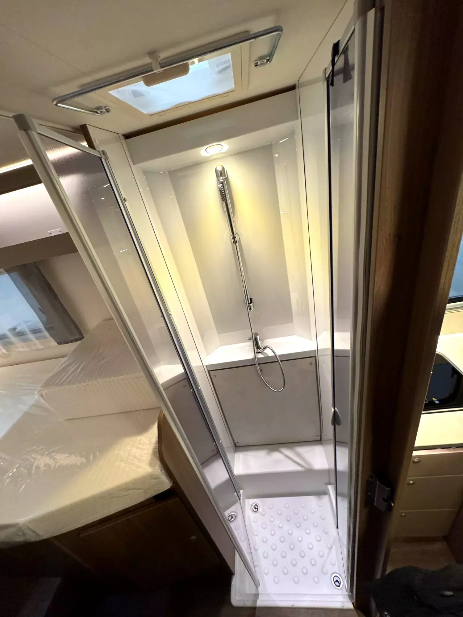 - Basic Paket (Panoramadachhaube 70 x 50 cm, Klarglasdachhaube 40 x 40 cm, Fliegengittertür (einteilig), Komfort-Eingangstür mit Fenster und Verdunkelung, Bridge Light)