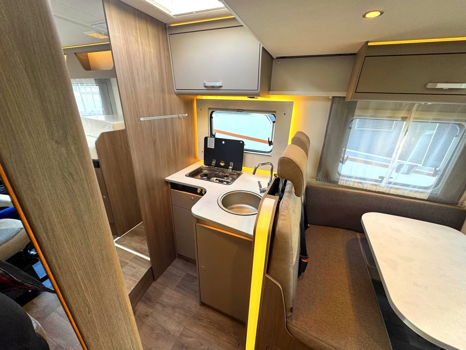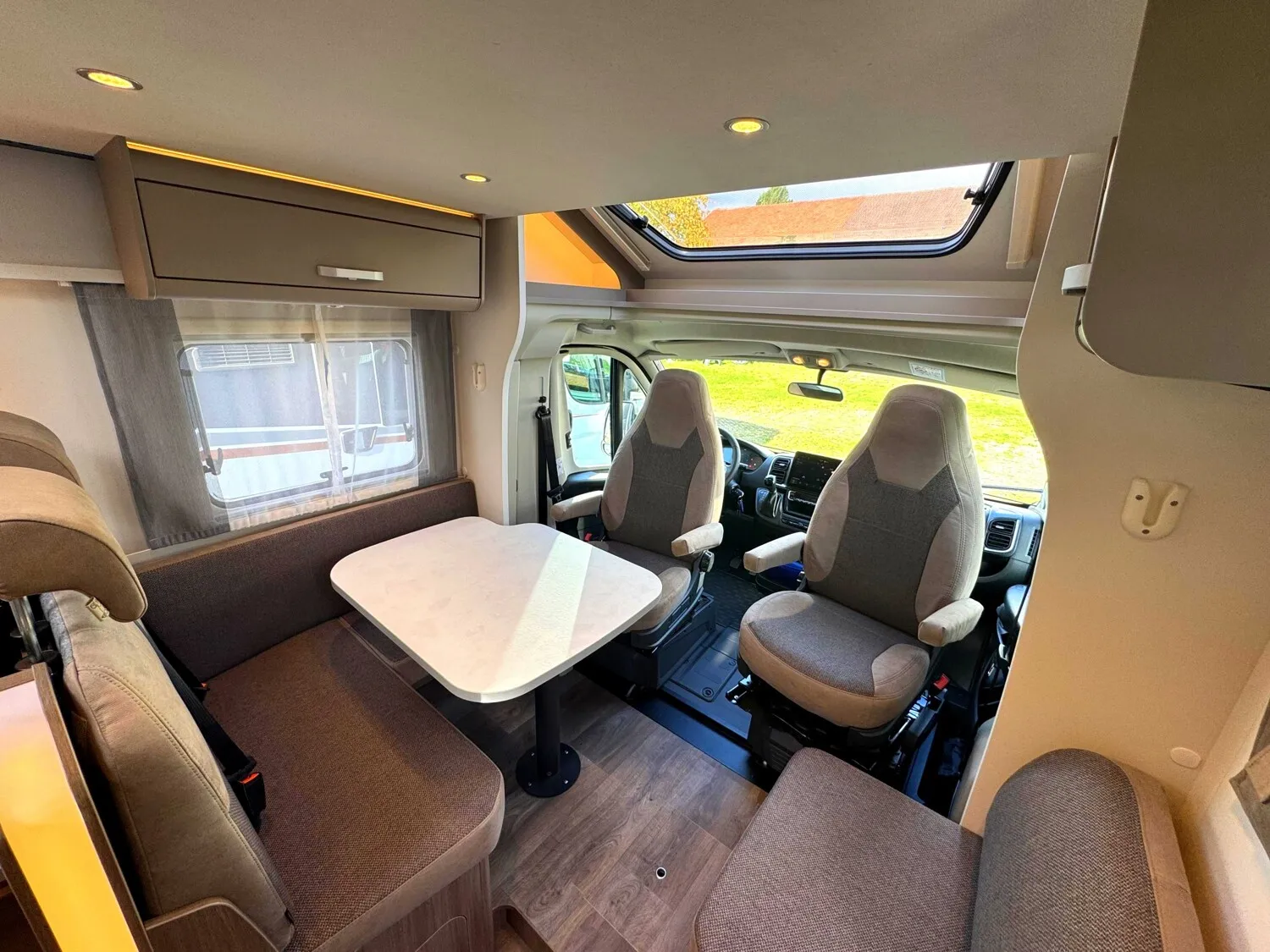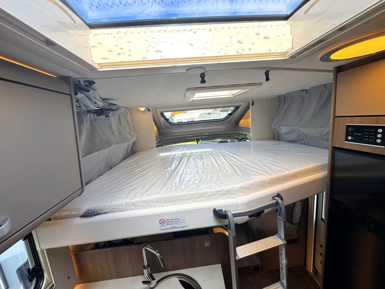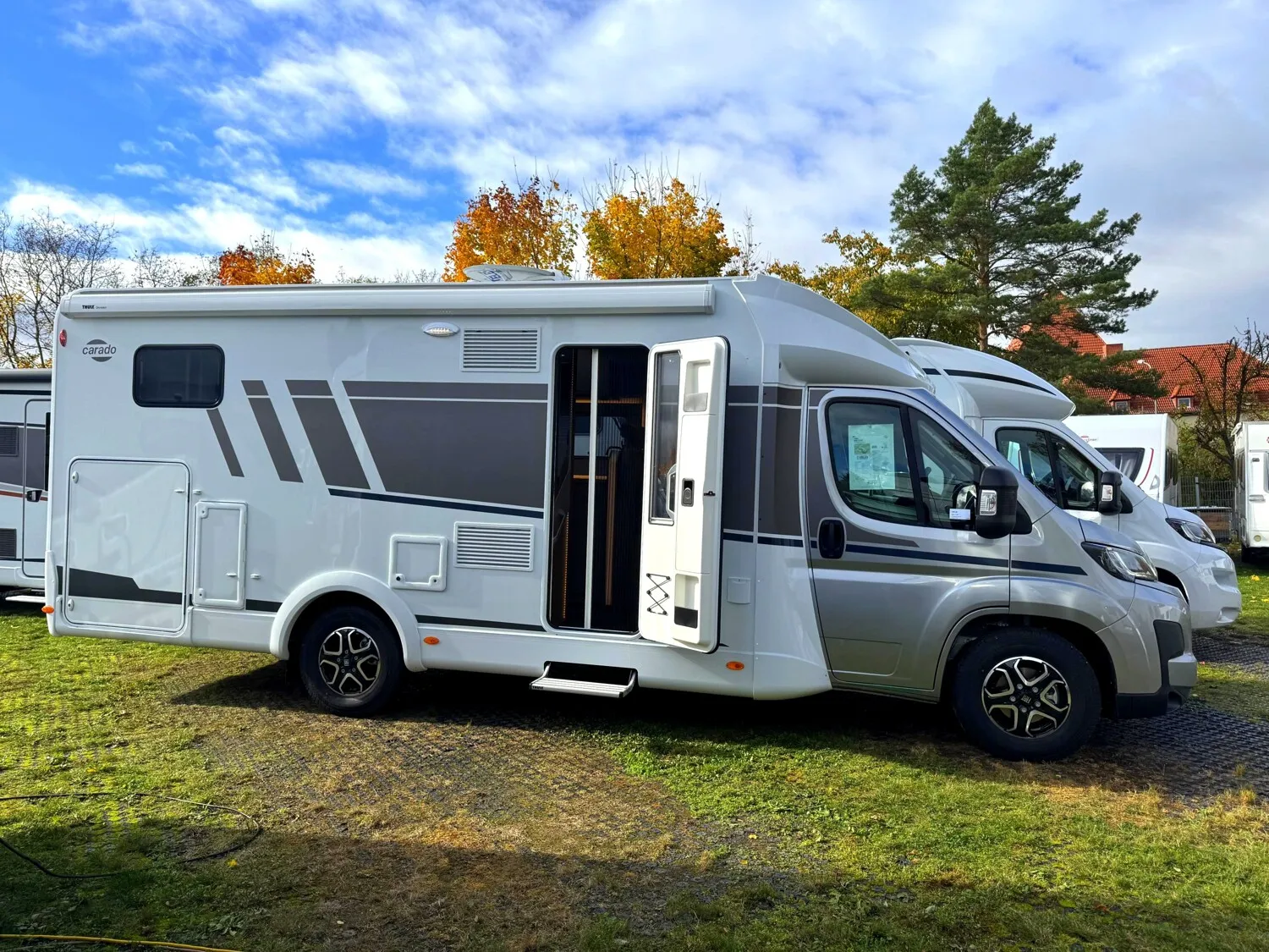 - Carado Serienausstattung Teilintegrierte Stellantis (Tempomat, Traction+ mit Bergabfahrassistent, Multifunktionslenkrad, Elektrische Fensterheber und Zentralverriegelung im Fahrerhaus, Reifen M+S Camping (Schneeflocke), Fahrer- und Beifahrersitz in Wohnraumstoff mit Doppelarmlehnen, Elektrische Trittstufe, Zuladung Heckgarage bis zu 150 kg, Isofix für zwei Plätze, Hochwertige Matratzen mit erhöhtem Liegekomfort in allen Betten, Holzlattenrost in allen Festbetten für erhöhten Liegekomfort, Bord Control Panel mit Angabe aller Füllstände und Batteriekapazitäten, Zuschalt- und Trennautomatik für Starter- und Aufbaubatterie sowie Kühlschrank, Ergonomisch angeordnete Küche mit großzügiger Arbeitsfläche, Geräumige Schublade mit Servo Soft im Küchenblock, Großes Rundspülbecken aus Edelstahl mit Abdeckung, uvm....)