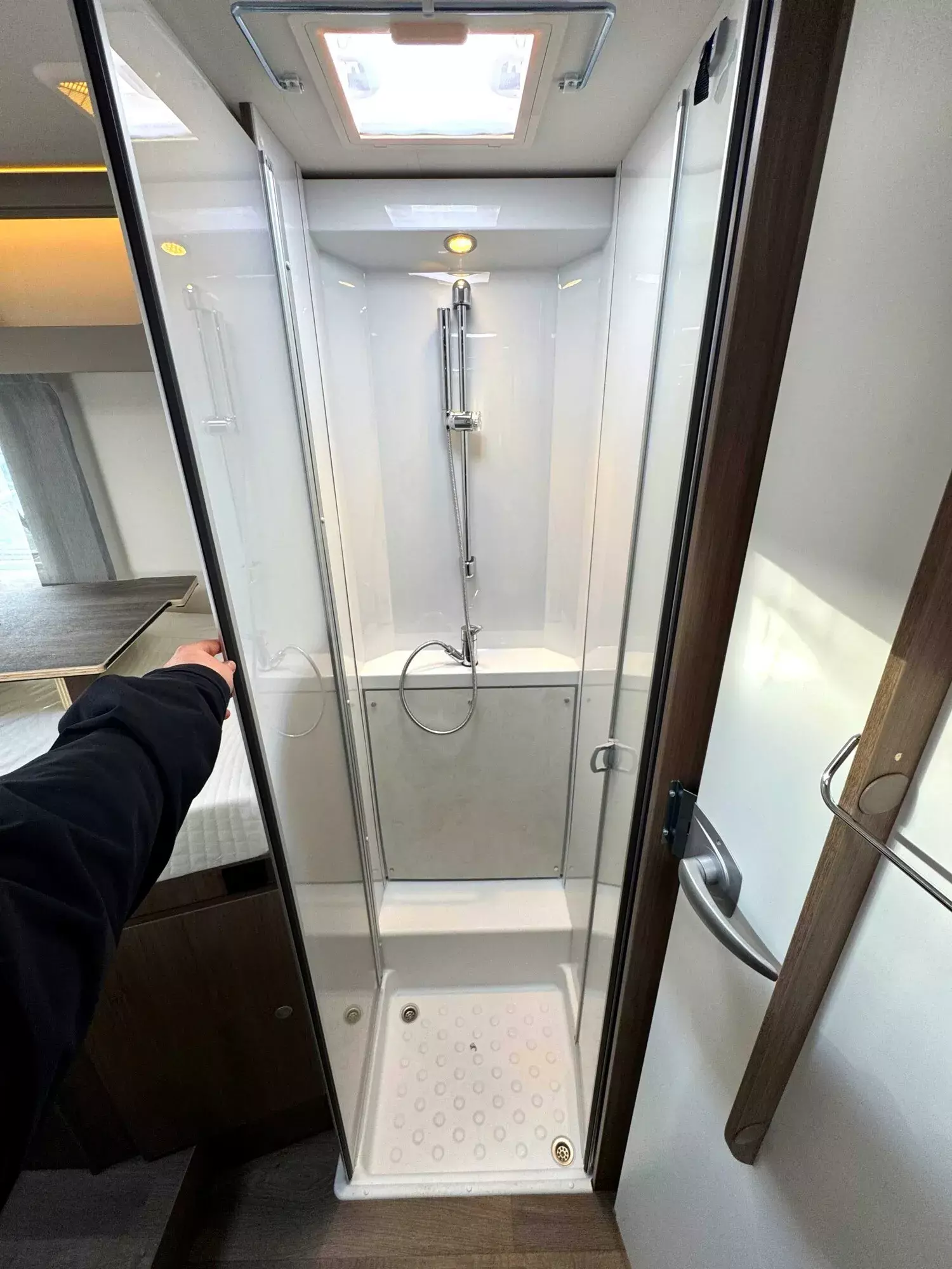 - Basic Paket - Panoramadachhaube 70 x 50 cm, Klarglasdachhaube 40 x 40 cm, Fliegengittertür (einteilig), Komfort-Eingangstür mit Fenster und Verdunkelung, Bridge Light