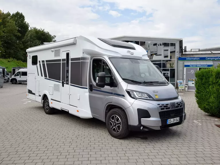 - Carado pro+ Paket (Faltverdunkelung Fahrerhaus, Fenster in Fronthaube, Großer Kühlschrank 156 l mit separatem Frosterfach 29 l, Abwassertank isoliert, Markise 4,5 m, Rahmenfenster, Design Applikation Heck, Zweite Außenstauraumklappe (Größe modellabhängig), Beklebung pro+)