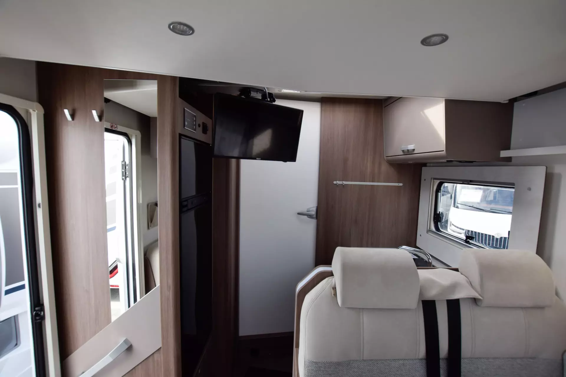 * Das pro+ Paket bringt viele komfortable Details mit, die man unterwegs sofort zu schätzen weiß: breite Rahmenfenster, eine hochwertige Komfort-Eingangstür, der große Kühlschrank, viel Stauraum in der abgesenkten Heckgarage sowie eine große Markise für entspannte Momente im Freien. Die separate Dusche, ergonomische Polster und das stimmige Lichtkonzept machen den Wohnbereich besonders angenehm.
