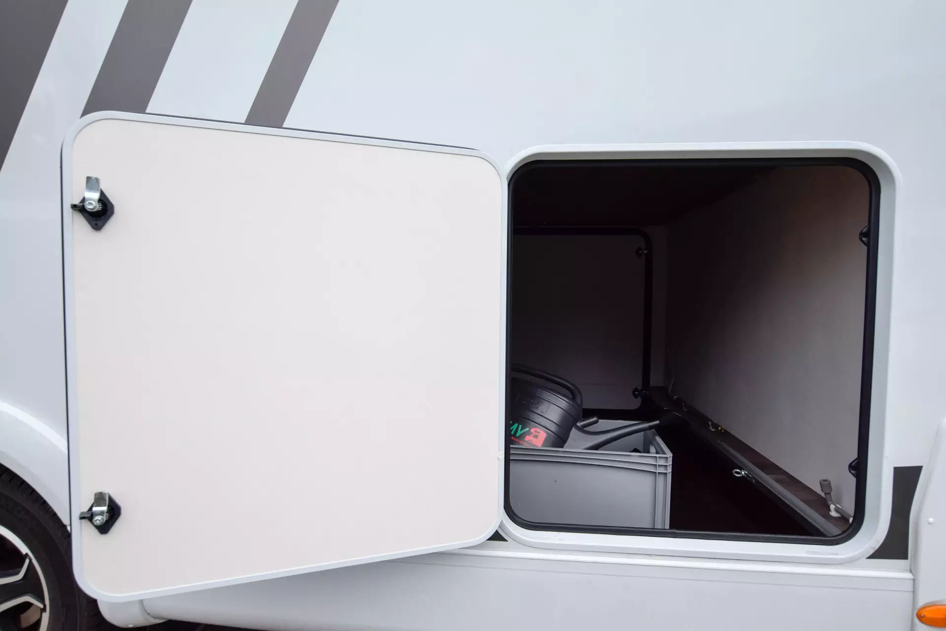 - Carado pro+ Paket (Faltverdunkelung Fahrerhaus, Fenster in Fronthaube, Großer Kühlschrank 156 l mit separatem Frosterfach 29 l , Abwassertank isoliert, Markise 4,5 m, Rahmenfenster, Design Applikation Heck, Zweite Außenstauraumklappe (Größe modellabhängig), Beklebung pro+)