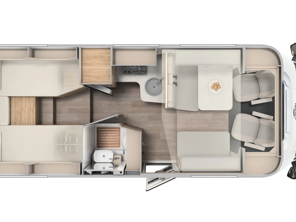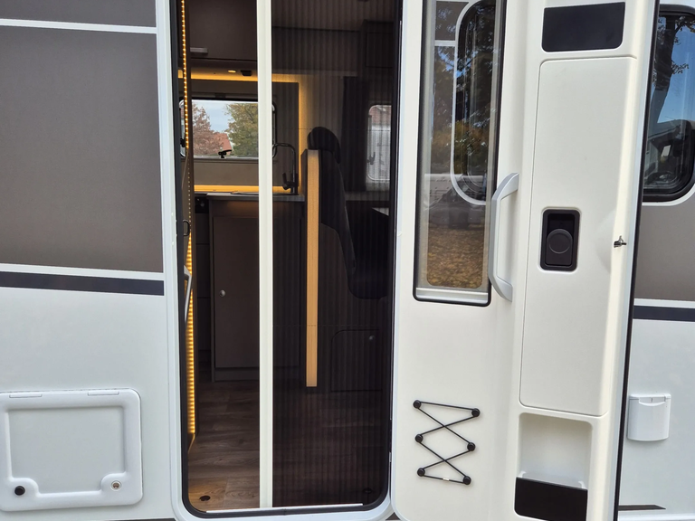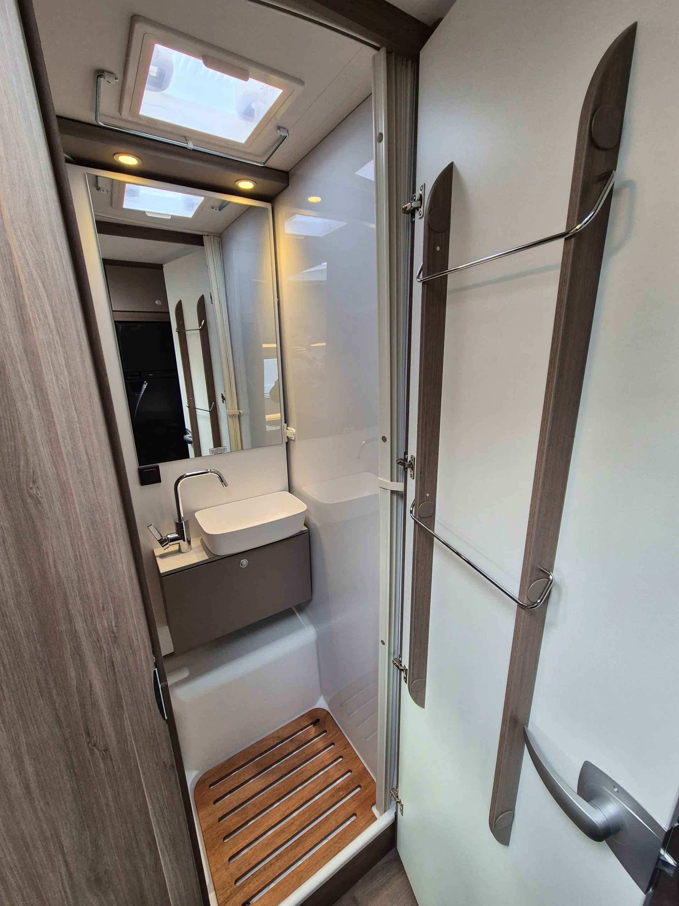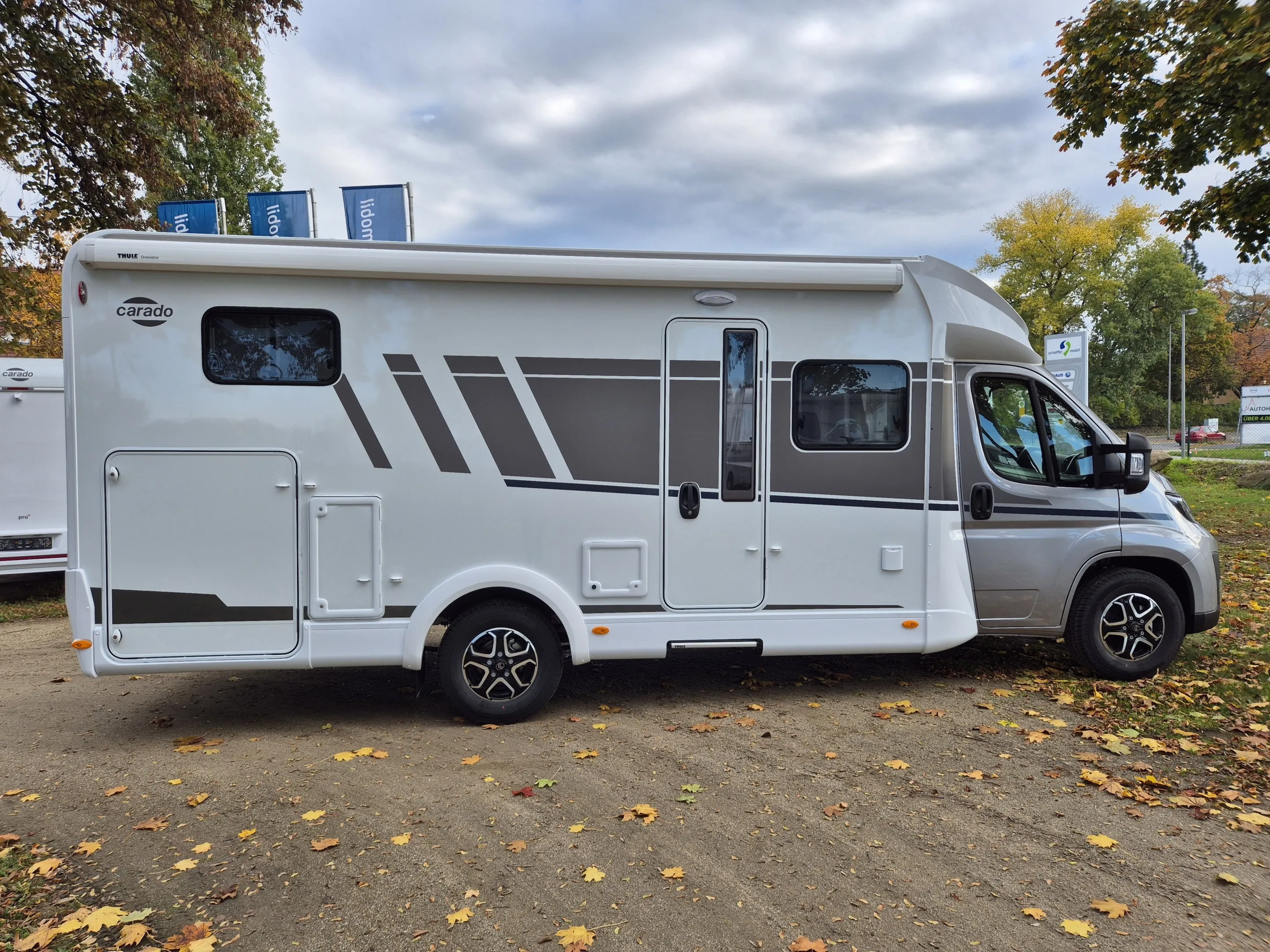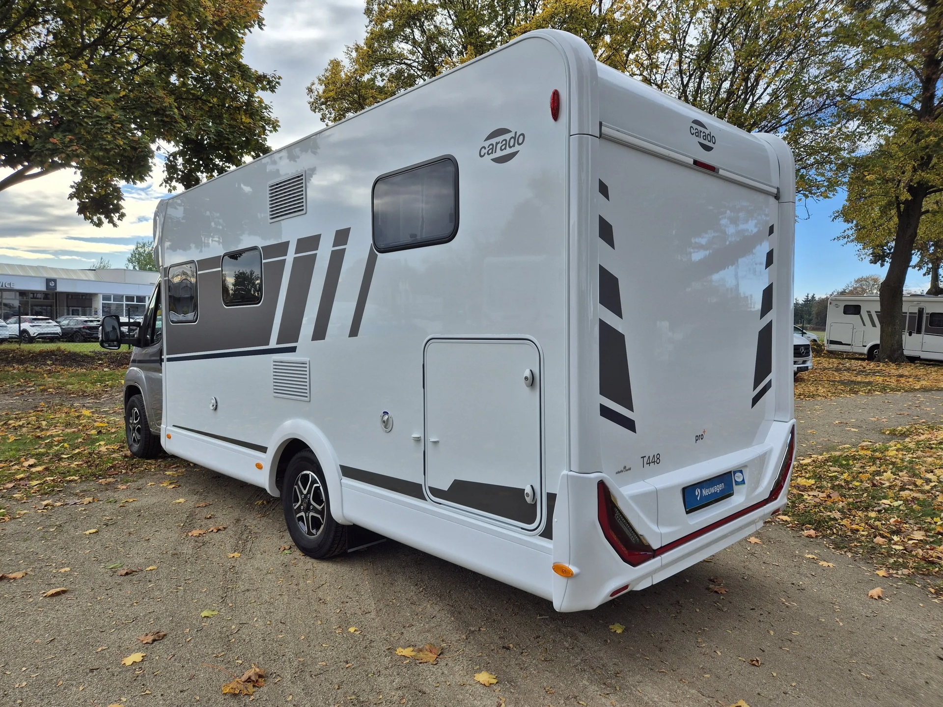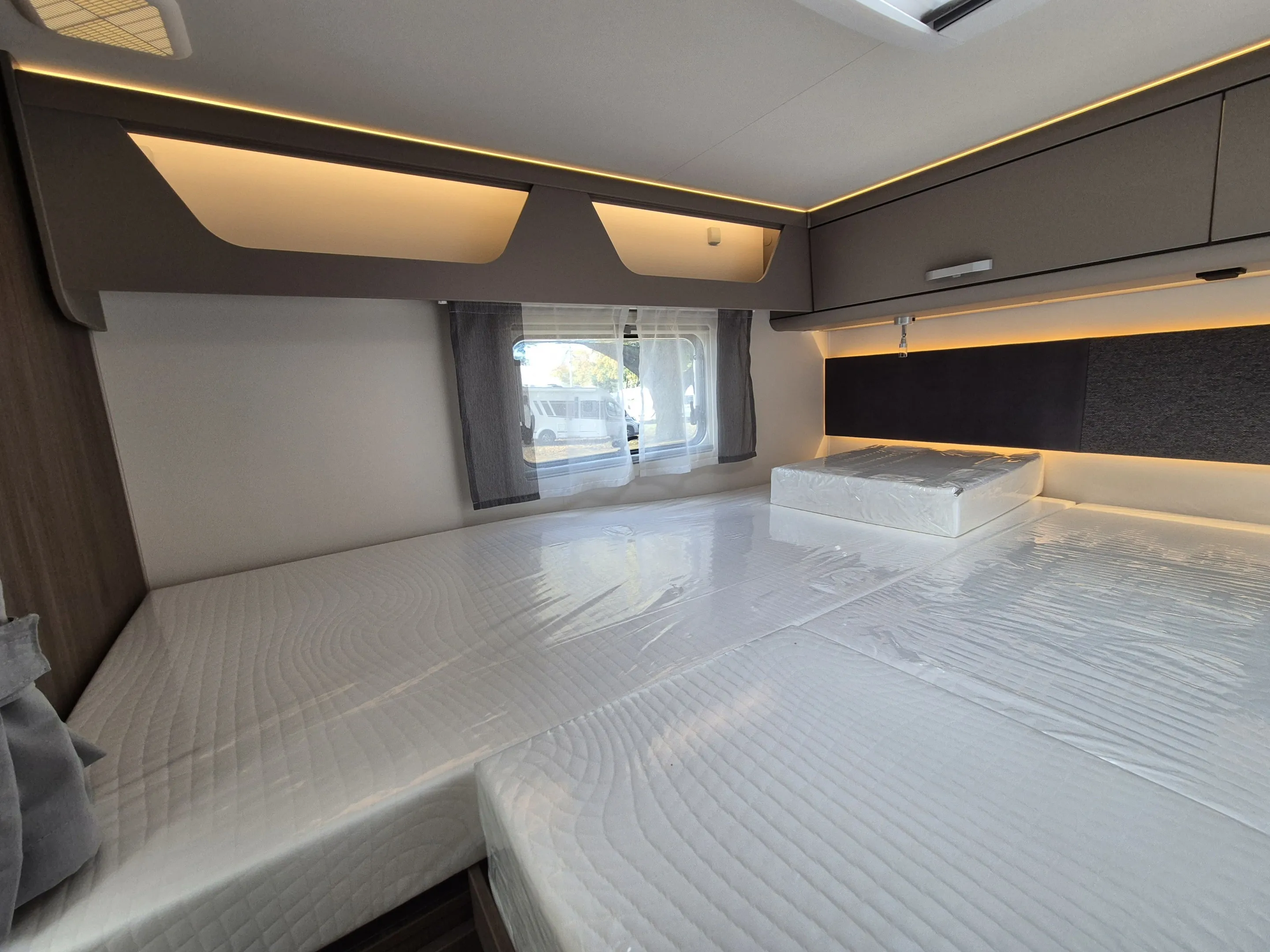 Raumwunder auf Rädern – der T448 pro+ bietet auf kompakten 7,31 Metern jede Menge Platz, Komfort und Technik. Mit dem Citroën Jumper 2.2 BlueHDi (140 PS, Euro 6E) und 8-Gang-Automatikgetriebe fährst du kraftvoll, leise und effizient. Das pro+ Paket bringt alles, was dein Reiseherz begehrt: edle Metallic-Lackierung in Artense Grau, Markise 4,5 m, Rahmenfenster, Faltverdunkelung, großen Kühlschrank (156 l), isolierten Abwassertank und das exklusive Design-Heck mit Applikationen. Im Innenraum überzeugt der T448 mit der modernen Wohnwelt Grau, Einzelbetten, Bettenumbau zur Liegewiese und Hubbett mit Clima-Plux-Elementen – ideal für Familien oder Paare, die extra Schlafkomfort wünschen. Durch die clevere Raumaufteilung und viele Staufächer ist jeder Zentimeter optimal genutzt.