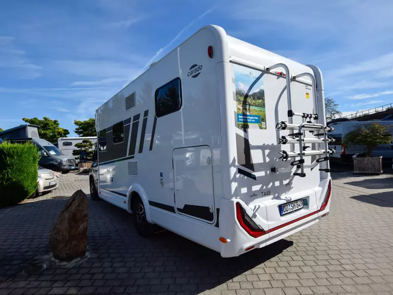 * Technisch ist der T448 ebenfalls top aufgestellt: ZENEC Multimedia mit Rückfahrkamera, TV-Paket inkl. SAT-Anlage, Klima, LED-Licht, Safety-Paket mit Notbrems-, Spurhalte- und Verkehrszeichenerkennung sowie viele Assistenzsysteme. Ein 3-fach-Fahrradträger gehört ebenfalls dazu.