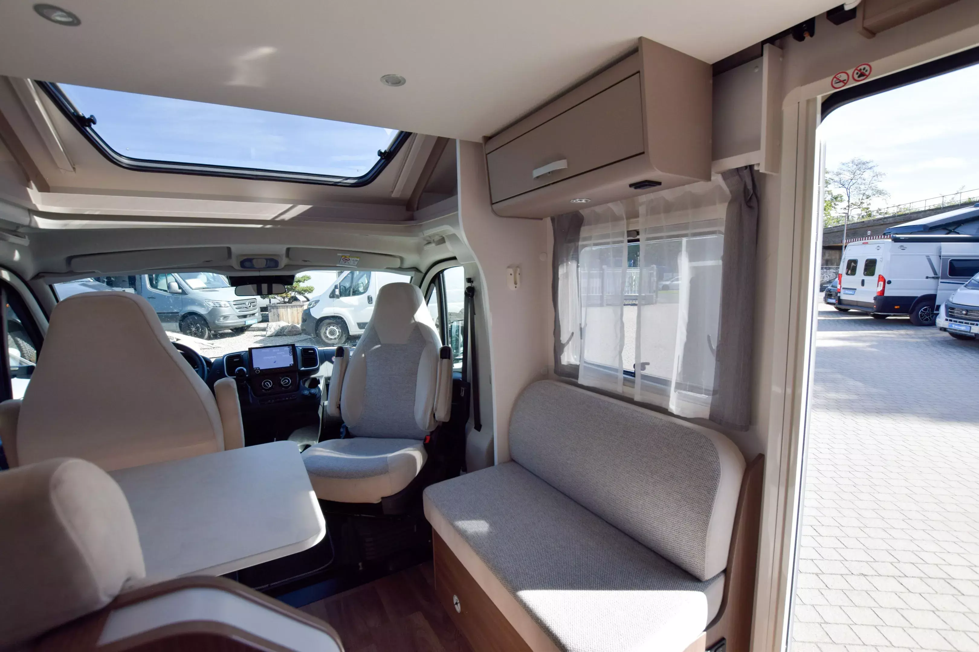 - Carado pro+ Paket (Faltverdunkelung Fahrerhaus, Fenster in Fronthaube, Großer Kühlschrank 156 l mit separatem Frosterfach 29 l , Abwassertank isoliert, Markise 4,5 m, Rahmenfenster, Design Applikation Heck, Zweite Außenstauraumklappe (Größe modellabhängig), Beklebung pro+)