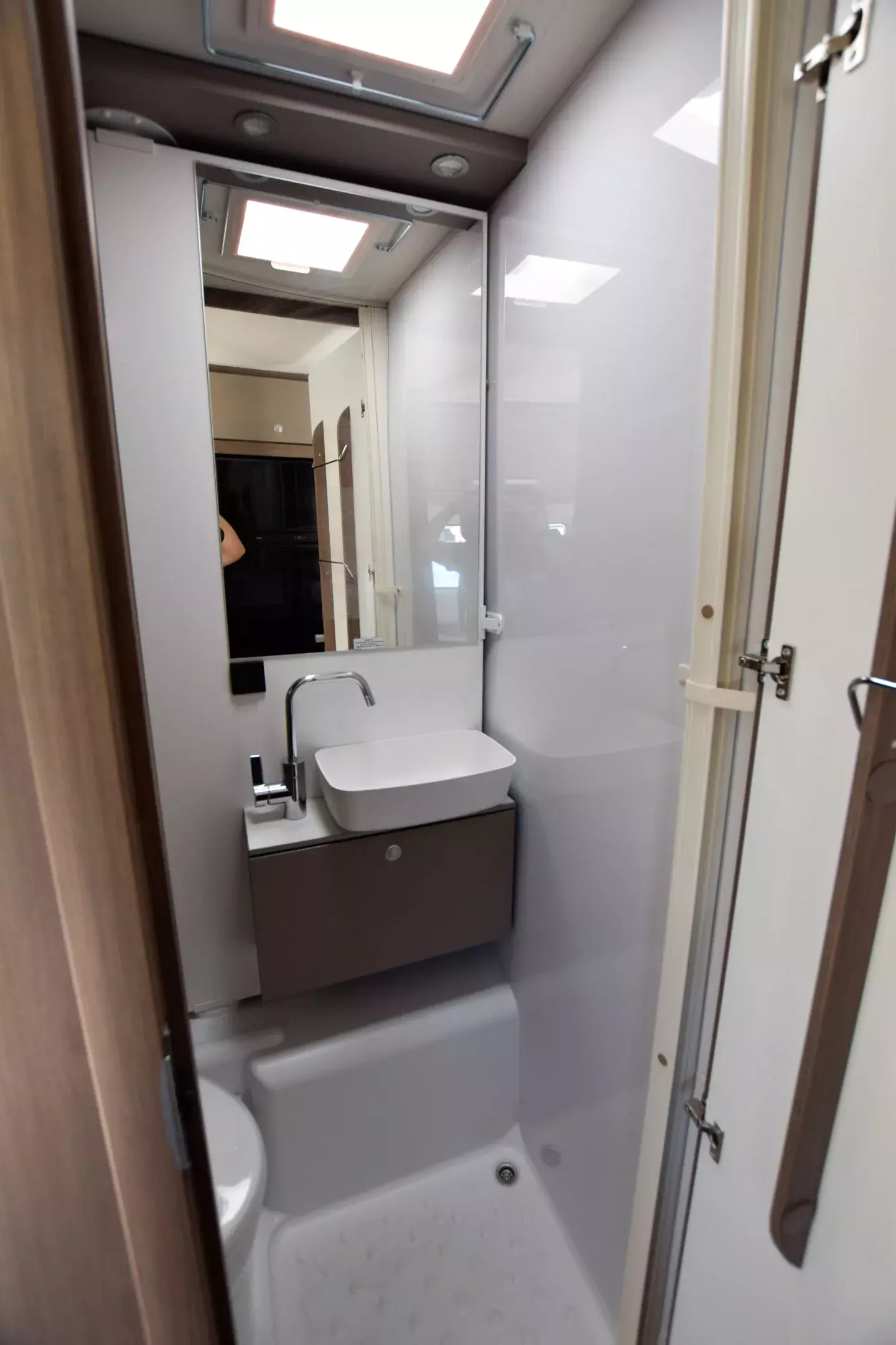 - Basic Paket (Panoramadachhaube 70 x 50 cm; Klarglasdachhaube 40 x 40 cm; Fliegengittertür; Komfort-Eingangstür mit Fenster und Verdunkelung; Bridge Light)