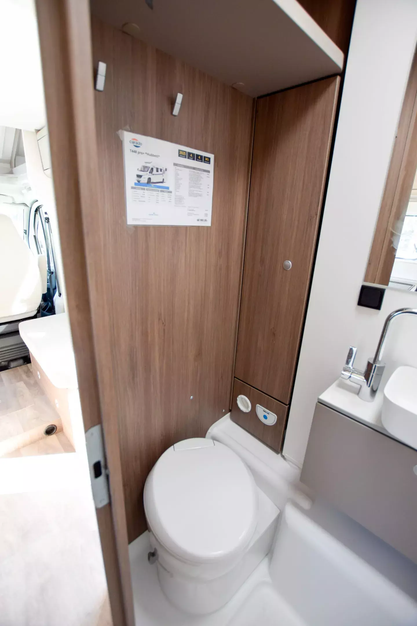 - Carado pro+ Paket (Faltverdunkelung Fahrerhaus, Fenster in Fronthaube, Großer Kühlschrank 156 l, Abwassertank isoliert, Markise 4,5 m, Rahmenfenster, Design Applikation Heck, Zweite Außenstauraumklappe, Beklebung pro+)