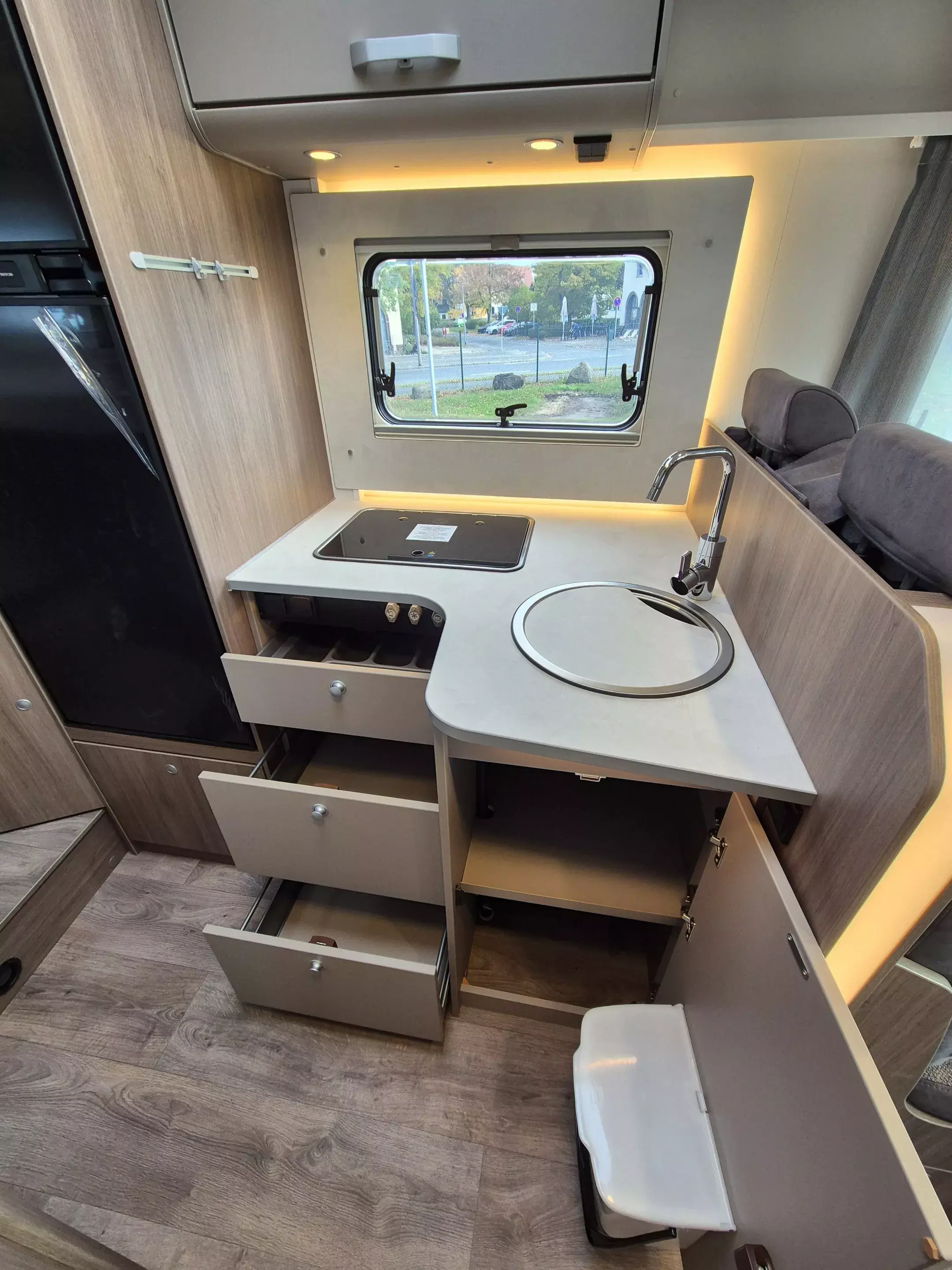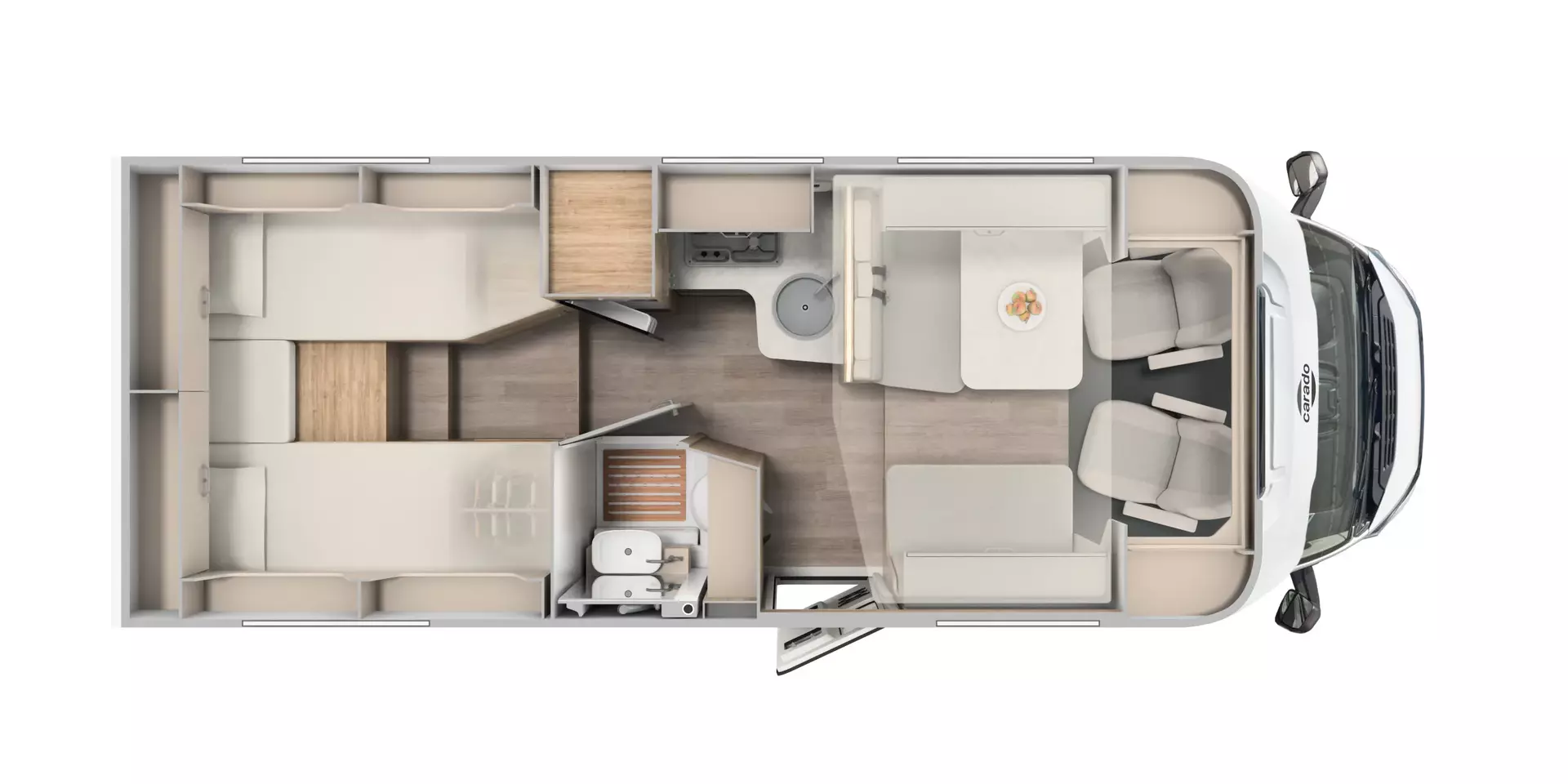 - pro+ Paket T447 & T448 & T457: Optik Paket 1 | Stoßfänger lackiert; Optik Paket 2 | Alufelgen; Chassisfarbe Artense Grau Metallic; Basic Paket; Faltverdunkelung Fahrerhaus; Fenster in Fronthaube; Großer Kühlschrank 156 l mit separatem Frosterfach 29 l ; Abwassertank isoliert; Markise 4,5 m; Rahmenfenster; Design Applikation Heck; Zweite Außenstauraumklappe (Größe modellabhängig) ; Beklebung pro+