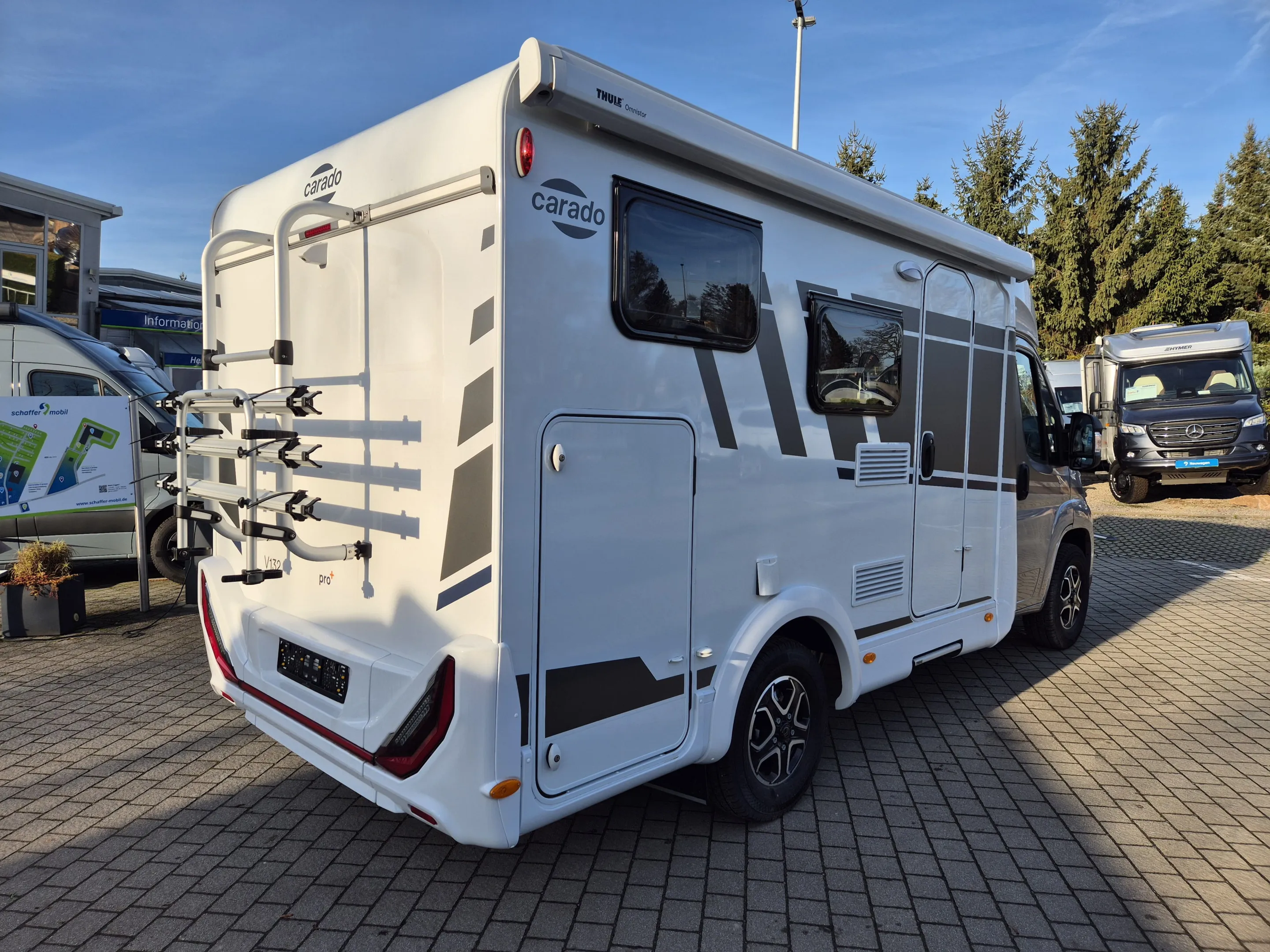 * Dank pro+ Paket, Digitalpaket und Safety-Paket ist der V132 technisch hervorragend ausgestattet: Klimaautomatik, 10"-Navigationssystem, Rückfahrkamera, induktives Laden, Voll-LED-Scheinwerfer, moderne Assistenzsysteme und vieles mehr. Dazu kommen Markise, Sat-Anlage mit Smart-TV und ein 3-fach-Fahrradträger – perfekt für Aktivurlauber.