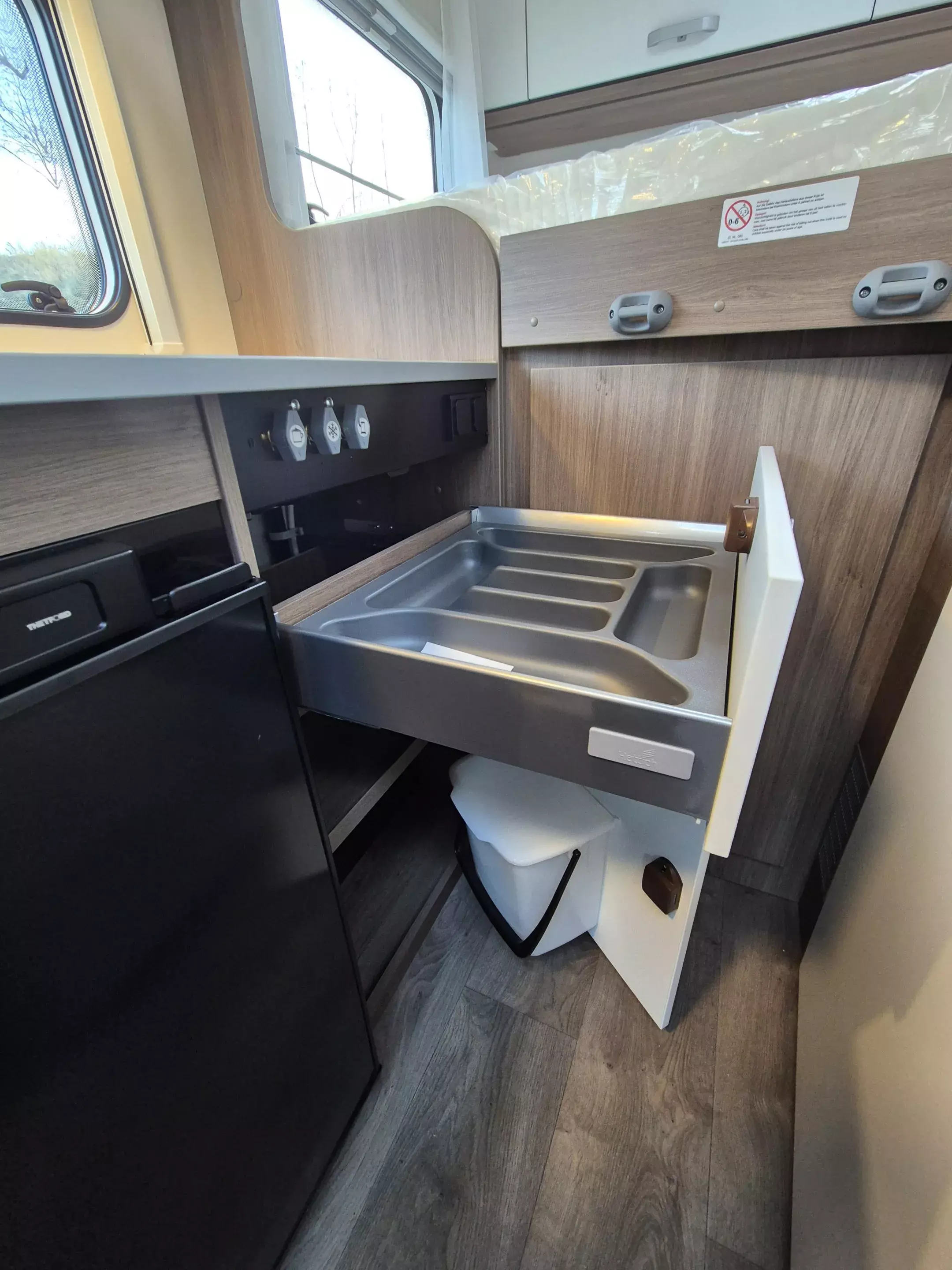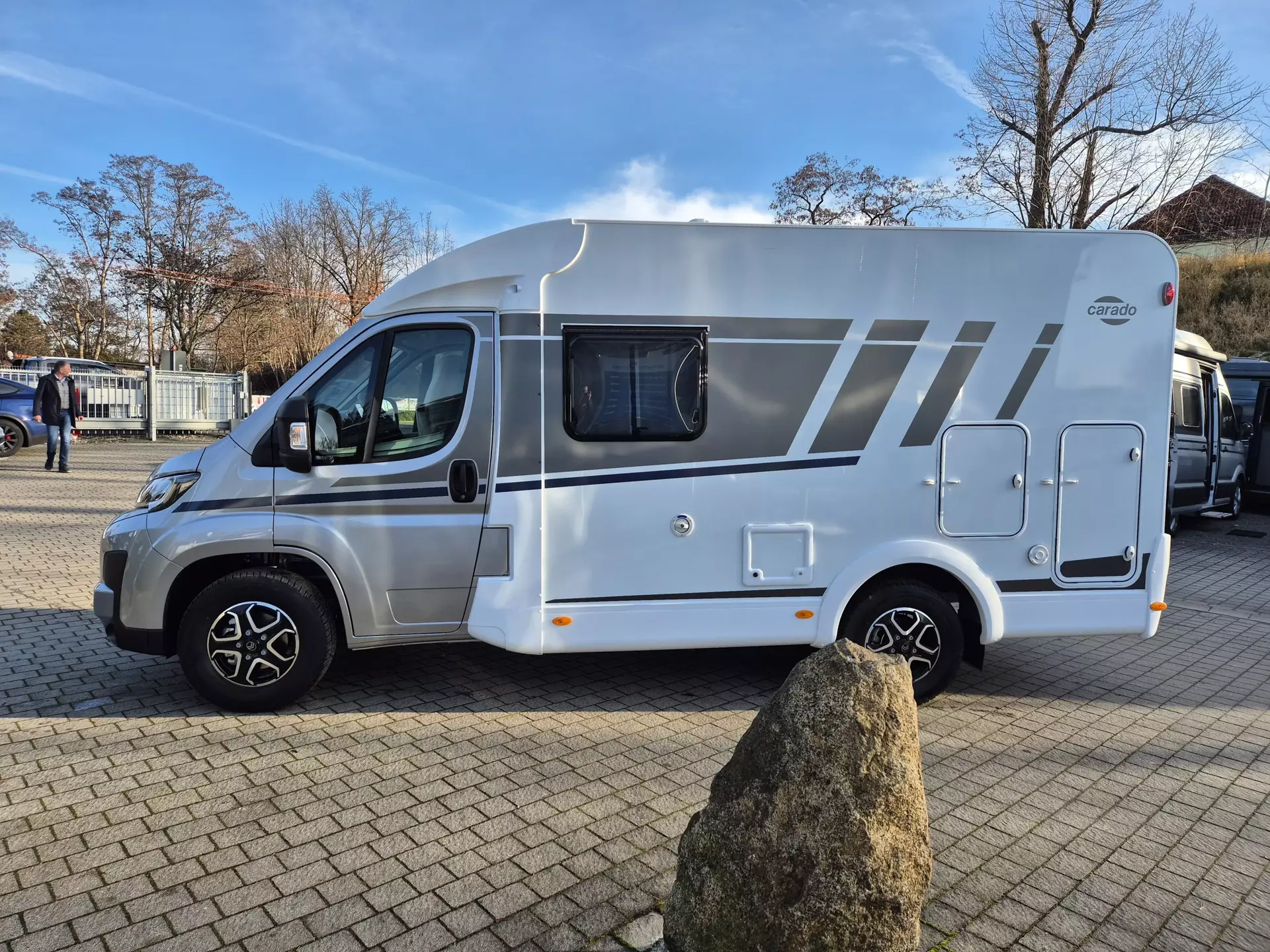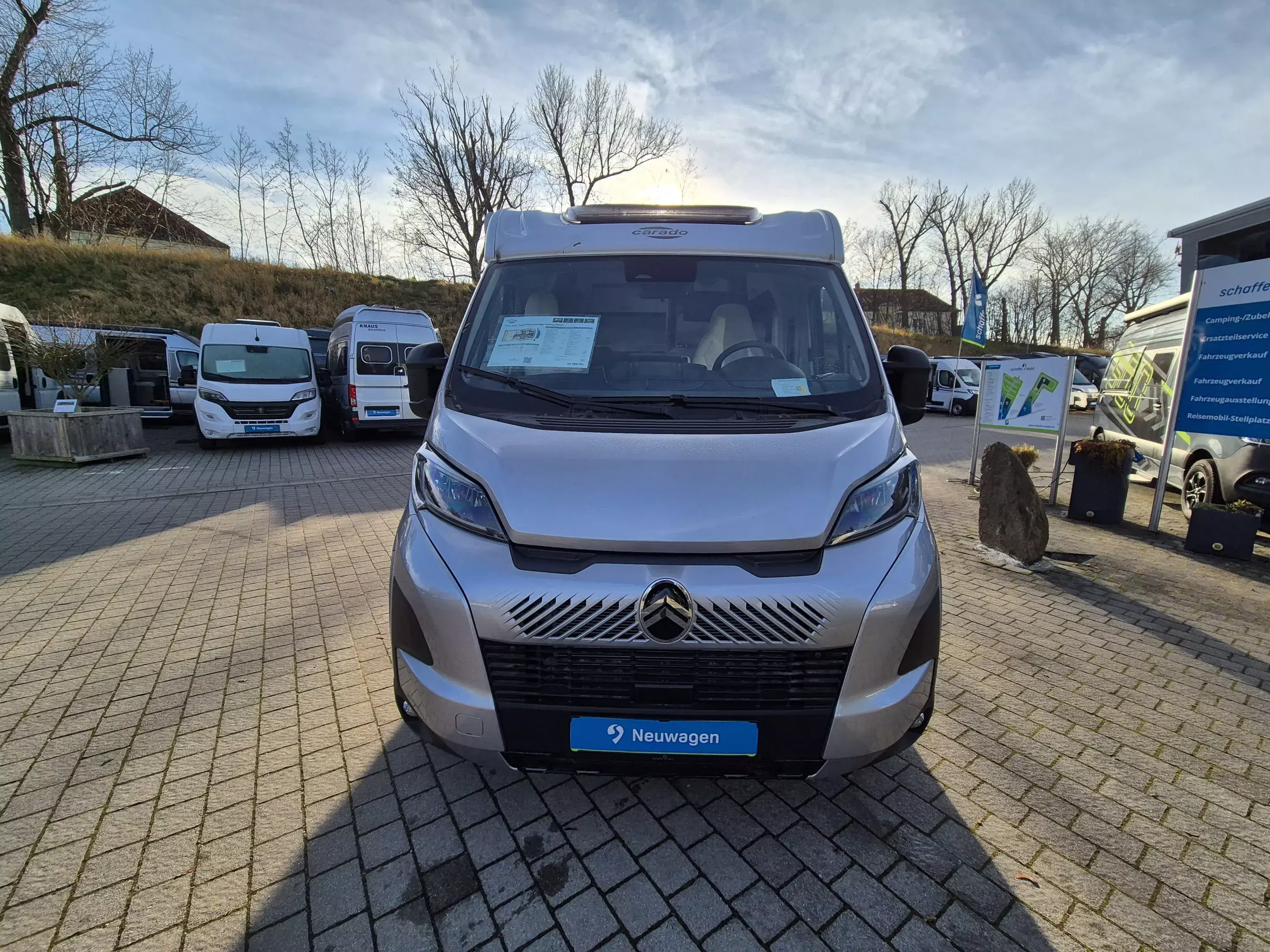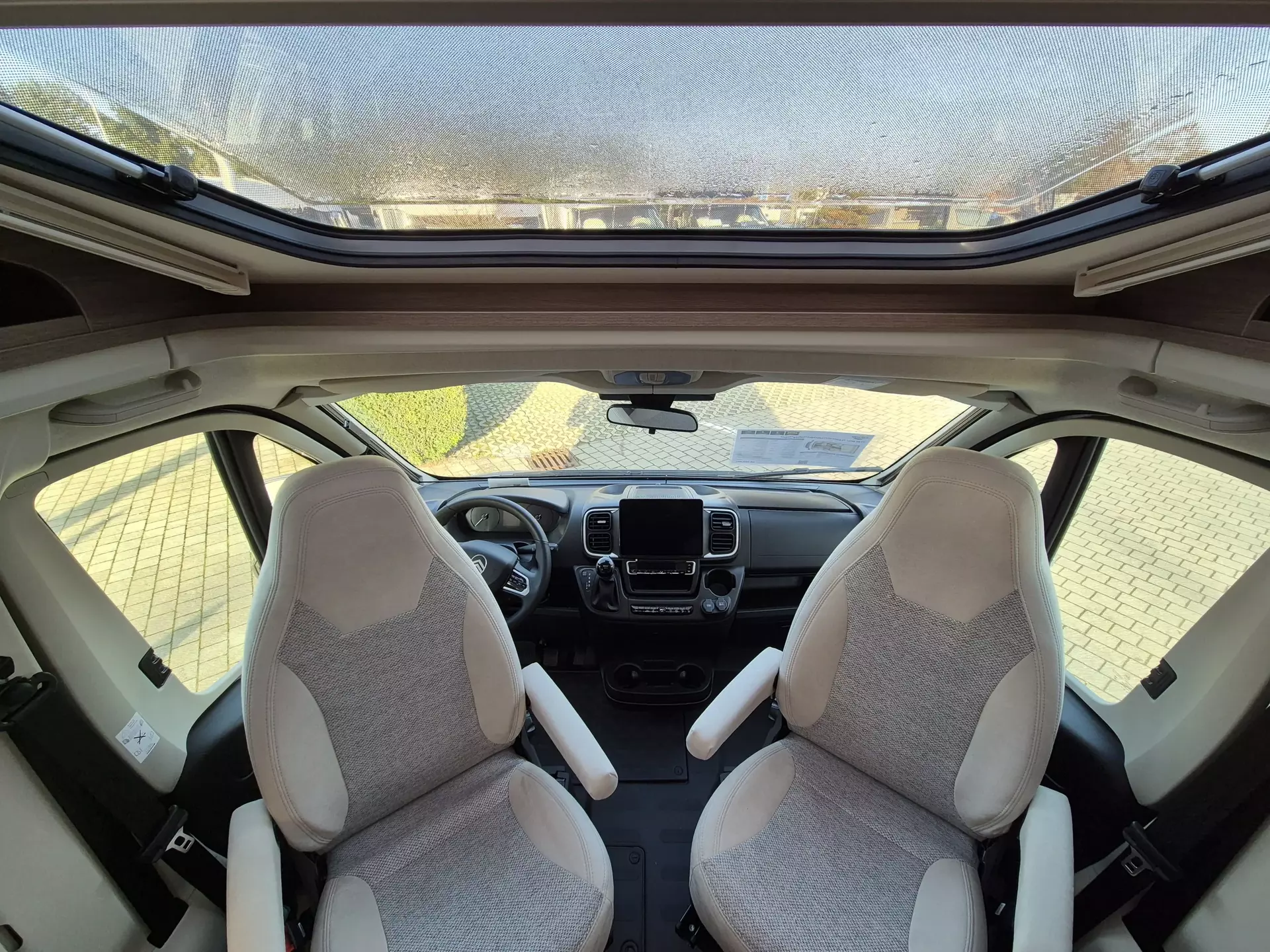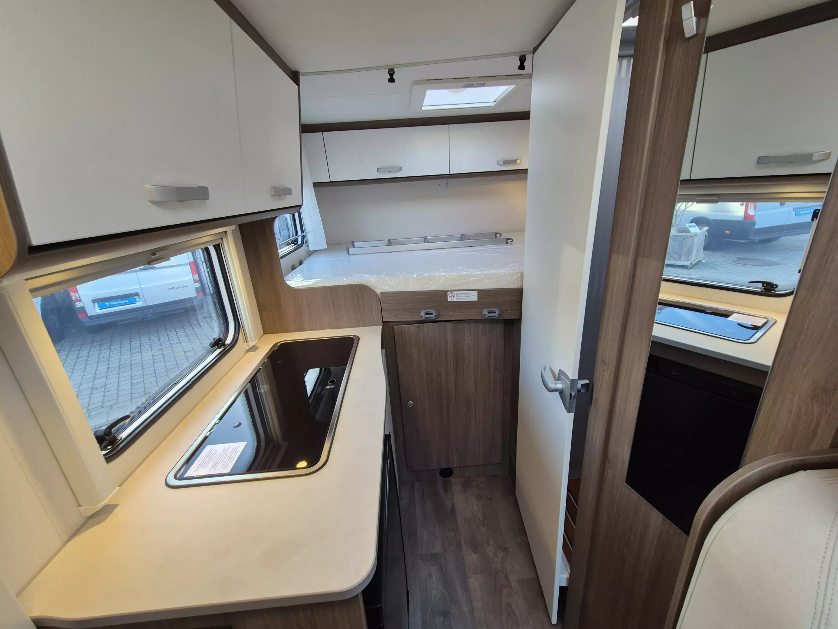 - pro+ Paket: Faltverdunkelung Fahrerhaus; Fenster in Fronthaube; Sonderfarbe Dachstauschrankklappen und Türen in Cosy White; Beklebung pro+; Markise 3,5 m ; Abwassertank isoliert; Zweite Außenstauraumklappe (Größe modellabhängig)