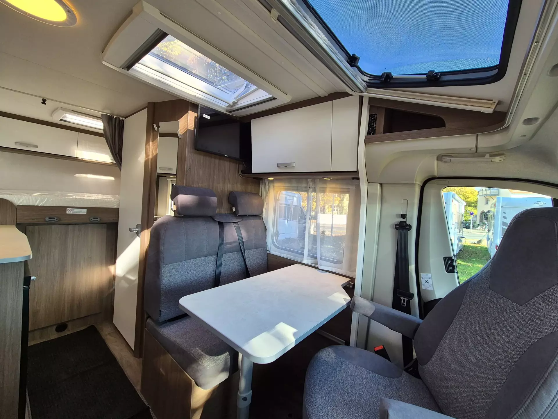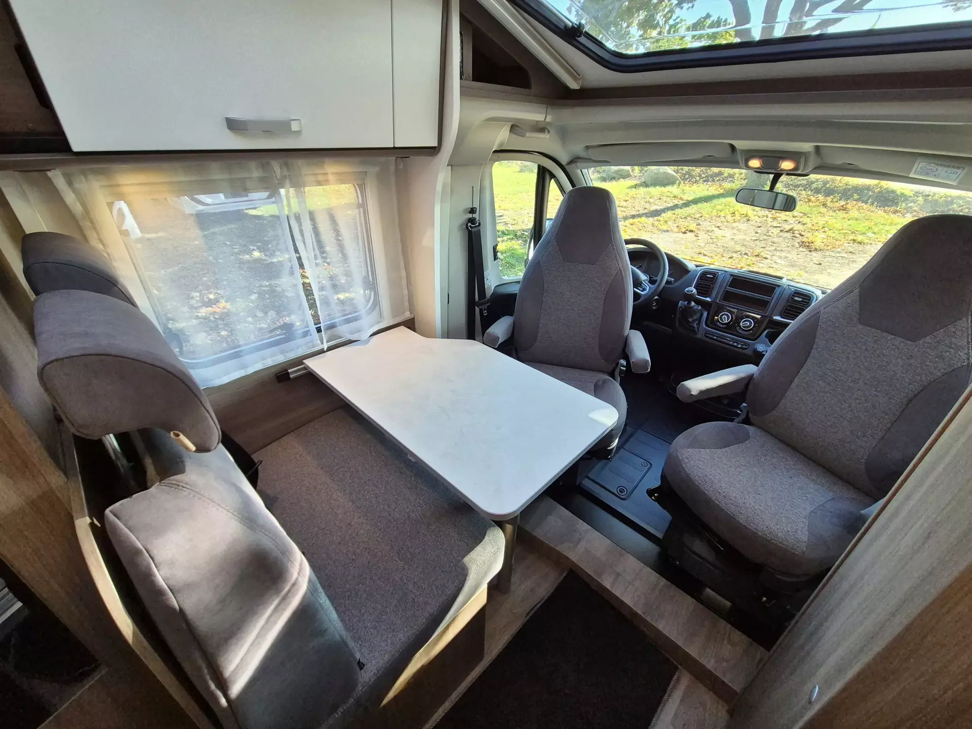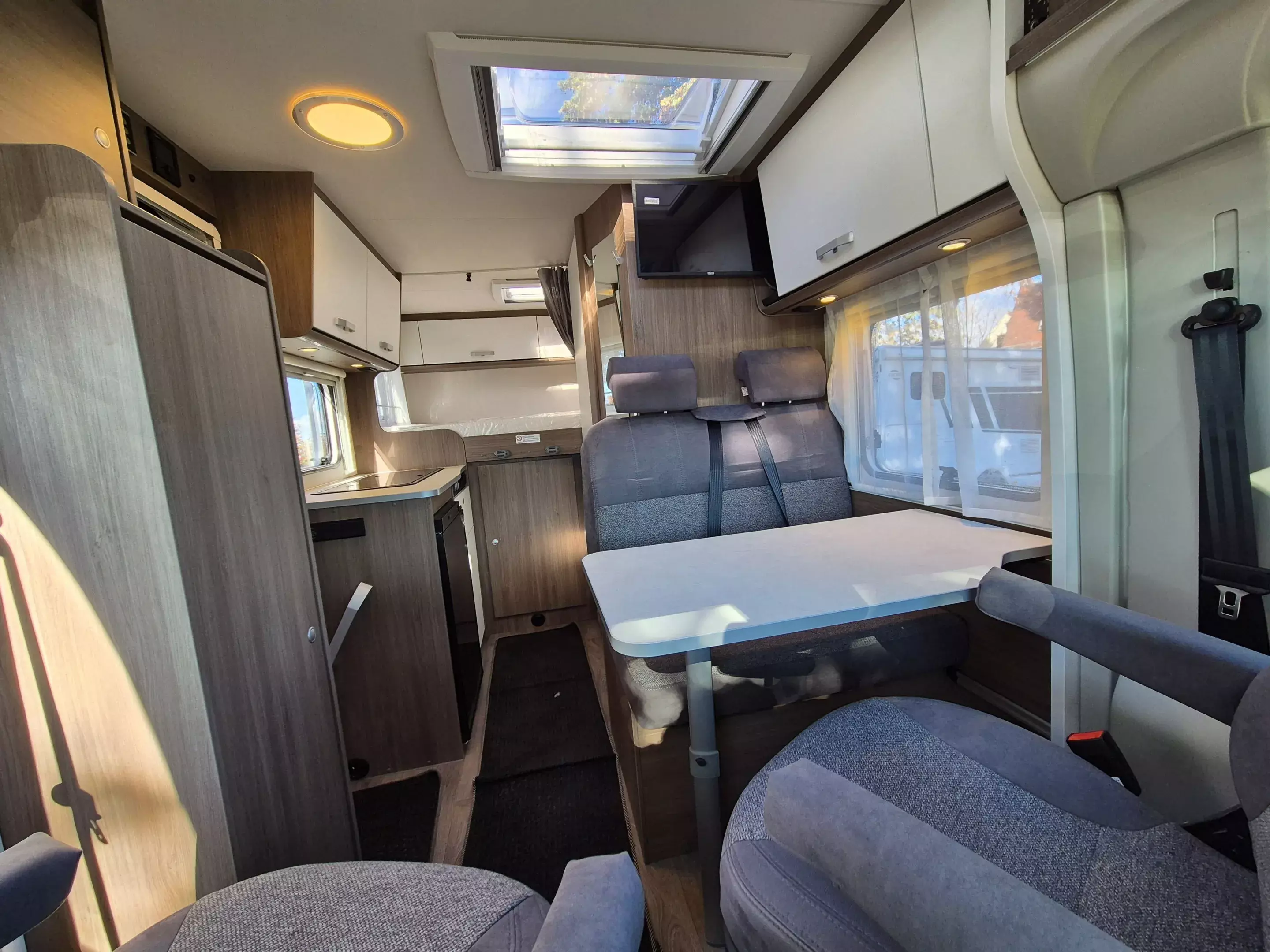 - pro+ Paket V132 (Chassisfarbe Artense Grau Metallic;Faltverdunkelung Fahrerhaus;Fenster in Fronthaube;Sonderfarbe Dachstauschrankklappen und Türen in Cosy White;Beklebung pro+;Markise 3,5 m ;Abwassertank isoliert;Zweite Außenstauraumklappe (Größe modellabhängig)