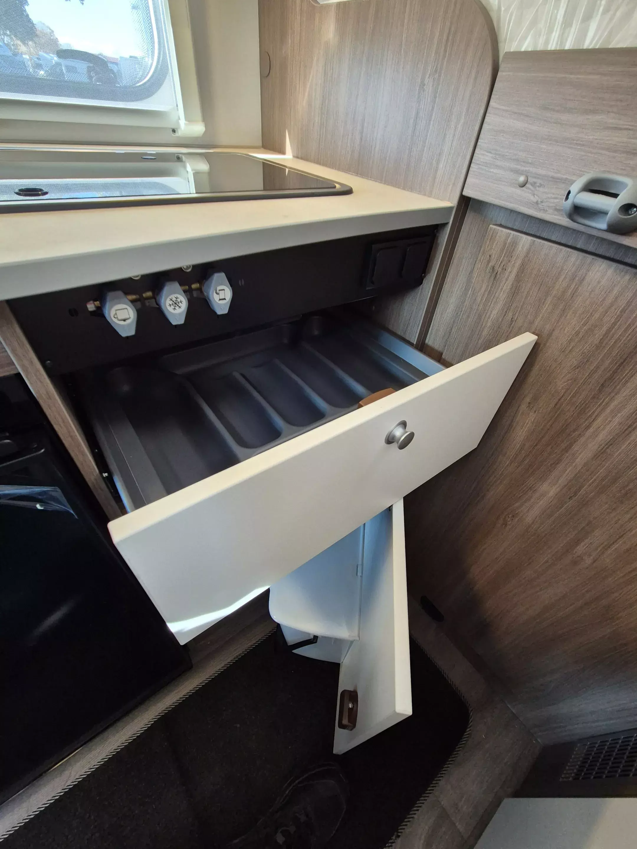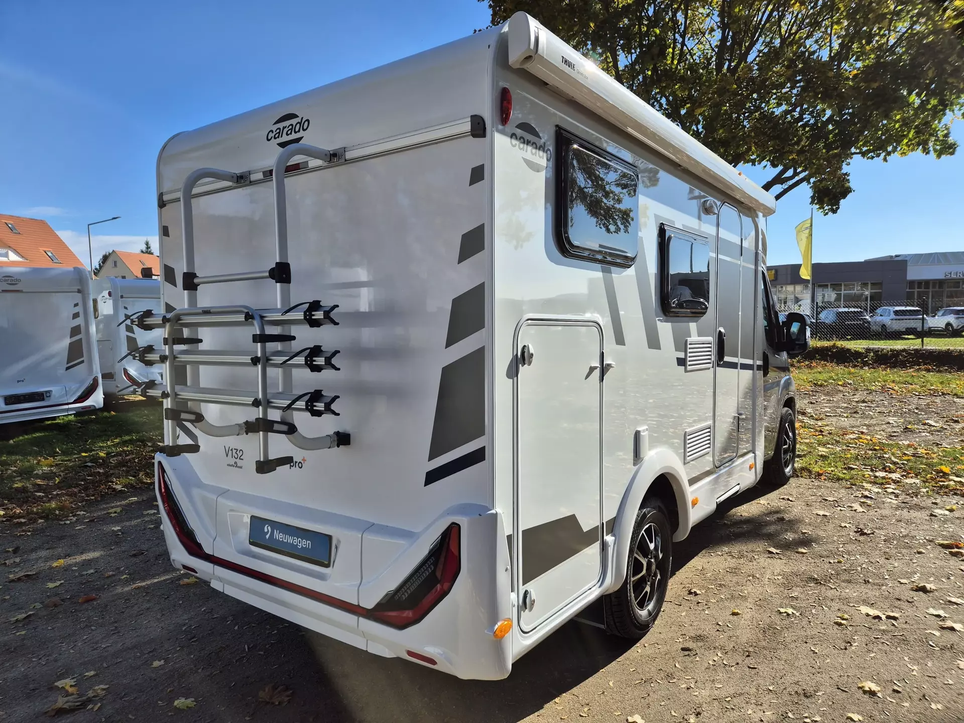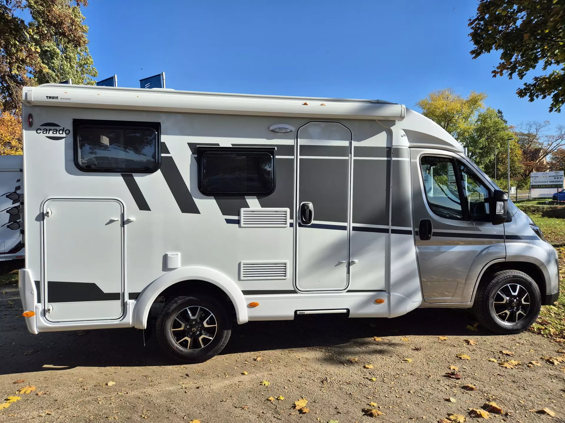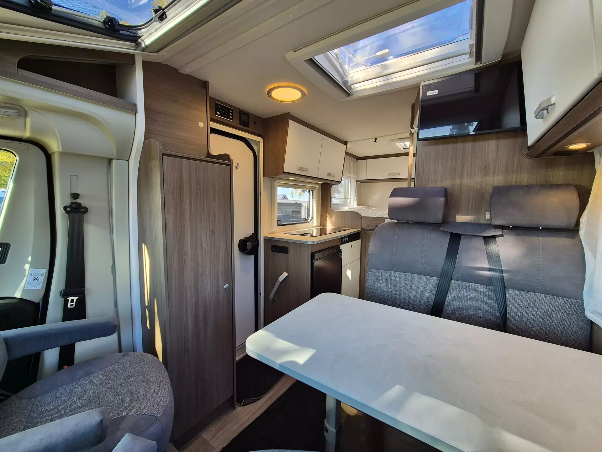 - pro+ Paket V132 (Chassisfarbe Artense Grau Metallic;Faltverdunkelung Fahrerhaus;Fenster in Fronthaube;Sonderfarbe Dachstauschrankklappen und Türen in Cosy White;Beklebung pro+;Markise 3,5 m ;Abwassertank isoliert;Zweite Außenstauraumklappe (Größe modellabhängig)