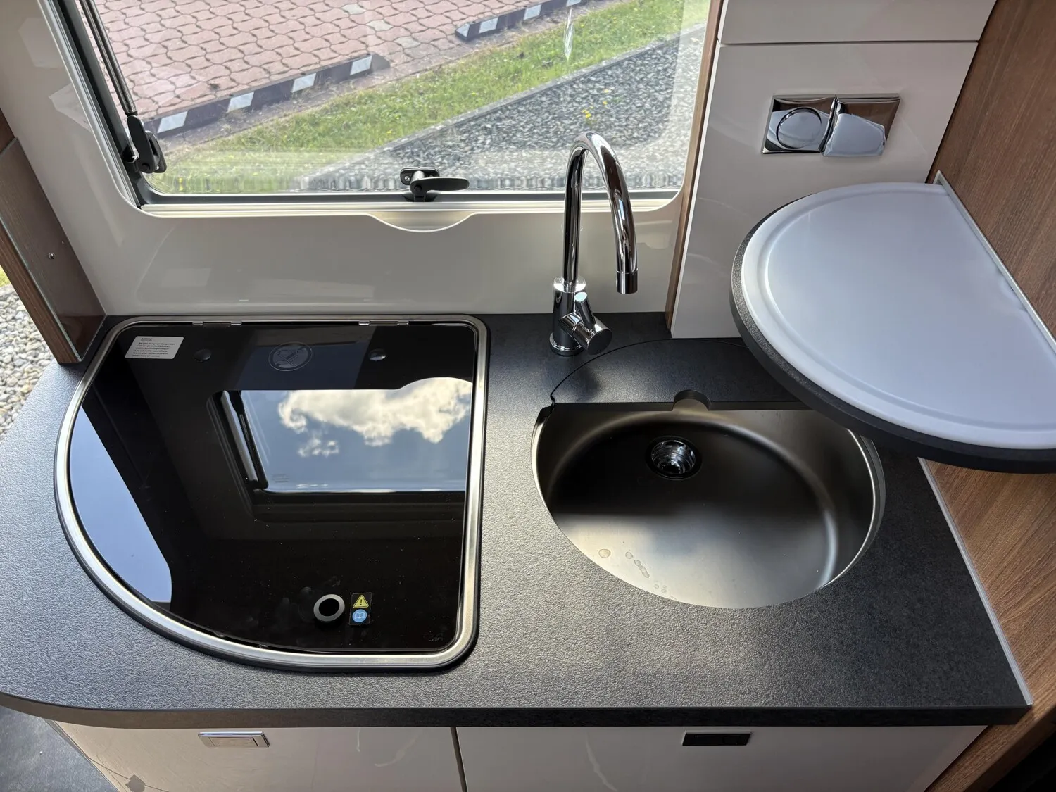 - Media-Paket (Rückfahrkamerasystem mit Einzellinse und 7" Farbmonitor seitlich im Armaturenbrett, TV-Auszugssystem für TV-Schrank über L-Wohnsitzgruppe, Smart-LED-TV 24", )