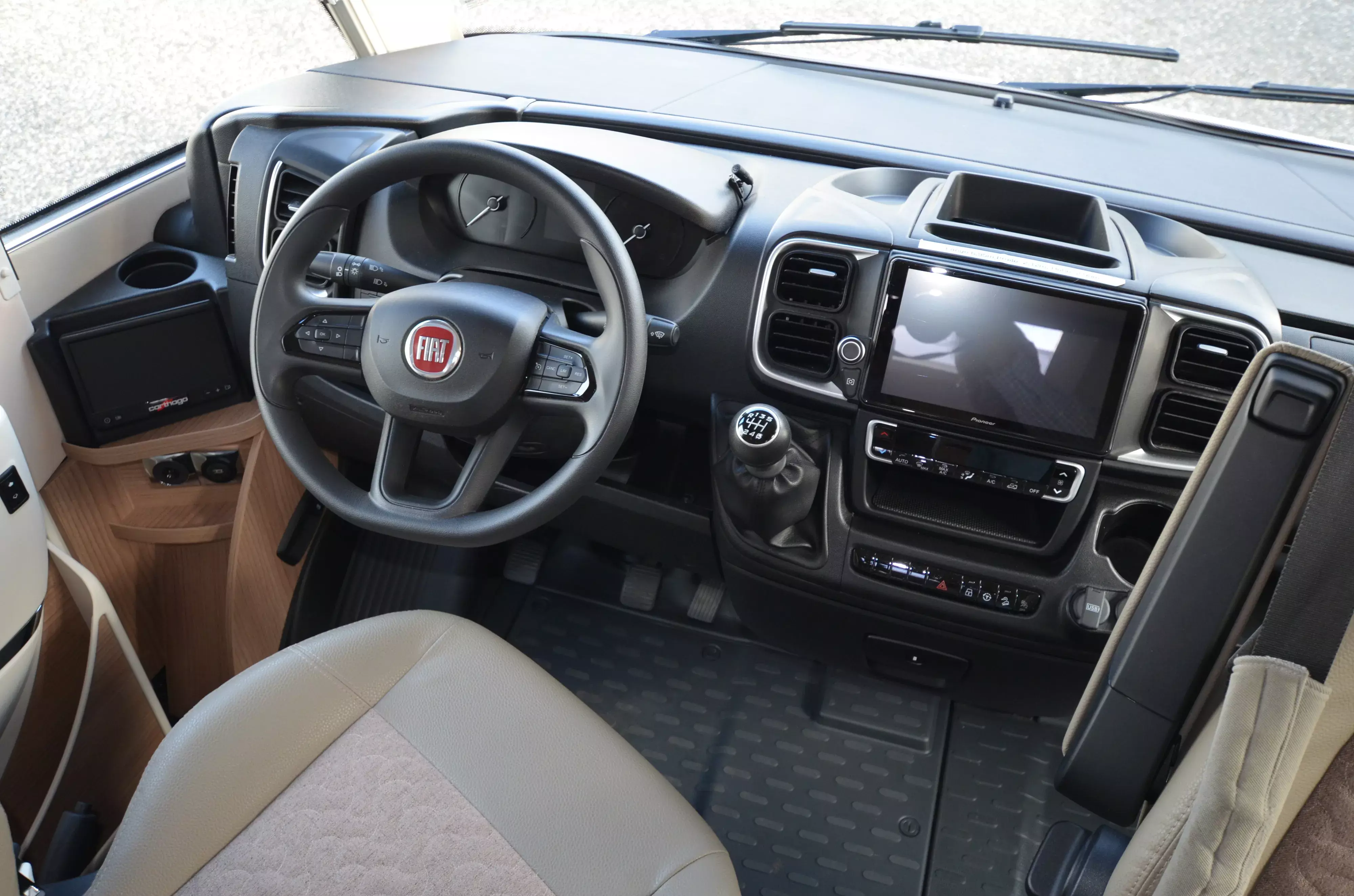- Radiovorbereitung mit Dachantenne mit DAB+, Lautsprecher im Fahrerhaus (2x) und Wohnsitzgruppe (2x) mit DVB-T2 Empfang