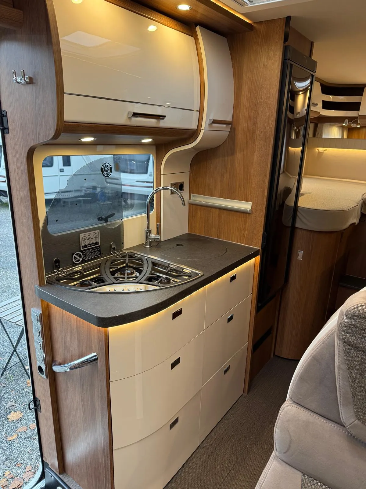 Ein tolles vollintegriertes, kompaktes Reisemobil von Carthago mit Einzelbetten und Hubbett aus unserem jungen Mietfuhrpark Nr. 544.
