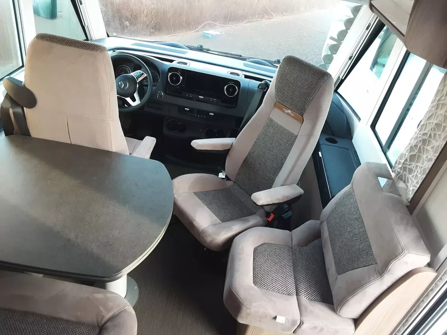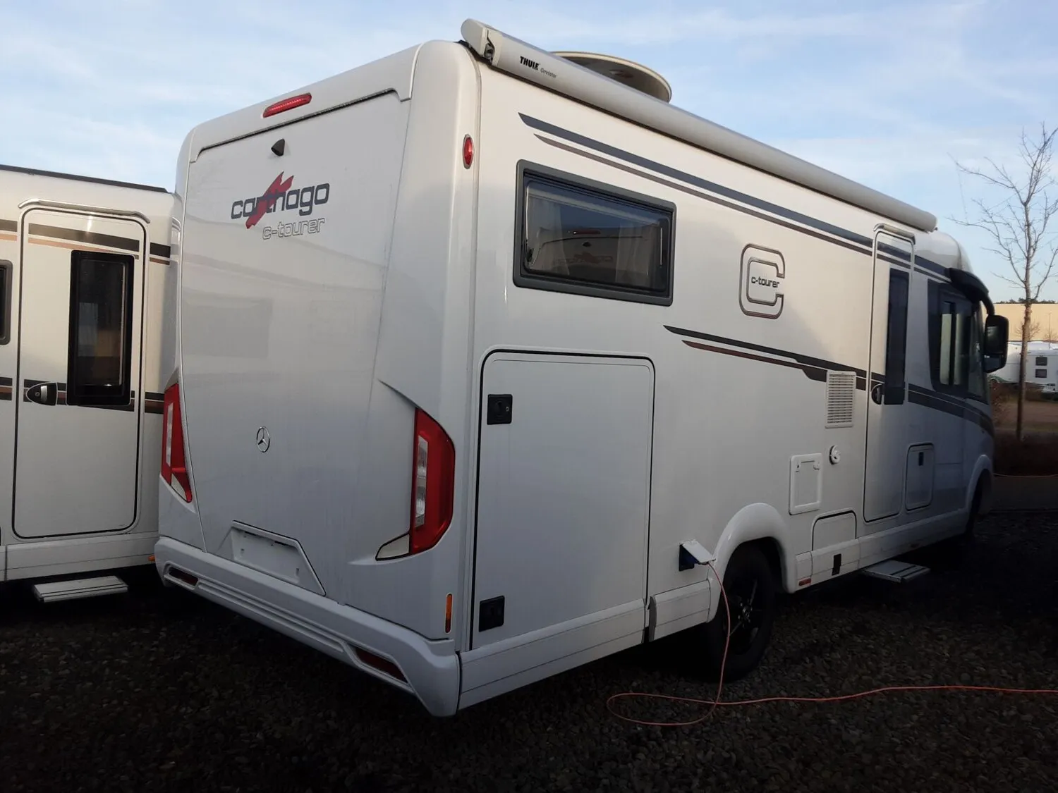 - Basis-Plus-Paket (Radzierblenden, Halbautomatische Klimaanlage Tempmatik, Tempomat, Ladebooster, Kraftstofftank 92 Liter, Vorderachse mit erhöhter Traglast, Lederlenkrad mit Option Multifunktionstasten (bei Schaltgetriebe inkl. Leder-Schalthebel), Kombiinstrument mit Farbdisplay, Regensensor, Elektrische Feststellbremse, Busspiegel "Carthago best view" mit Busspiegelgehäuse schwarz / weiß, verstell- und beheizbar, Fahrerhauskomfortsitze mit Neigungs- und Höhenverstellung (vorn / hinten), Radiovorbereitung mit Dachantenne mit DAB+, Lautsprecher (4 x), Radio / Moniceiver Pioneer 6,8" inkl. DAB+, Dachluke Midi-Heki mit LED-Spots über L-Wohnsitzgruppe, Große Rollergaragentür auf der Fahrerseite, XL-Aufbautür "premium two 2.0" (Breite 63 cm) mit Doppelverriegelung, Fenster- und Insektenschutzrollo, SOG-Toilettenentlüftung über Dachkamin, Abwasserschlauchset zur komfortablen Entsorgung, USB-Steckdose im Dachstauschrank über Heckbett, Vorbereitung Dachhaubenlüfter elektrisch, Vorbereitung Solaranlage, Vorbereitung Sat-Anlage, Vorbereitung Rückfahrkamera (Einzellinse))