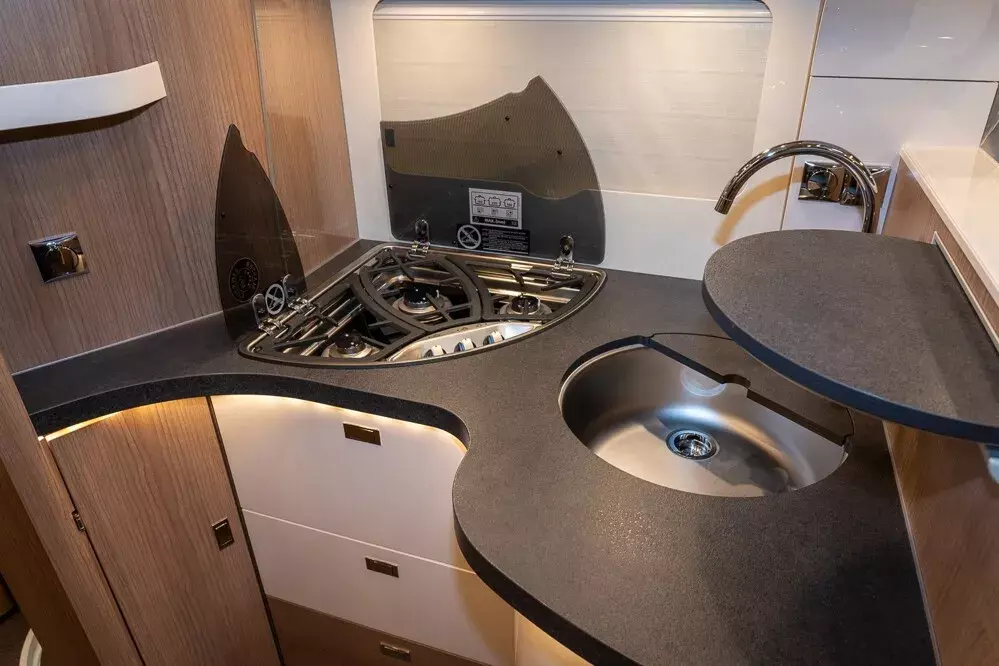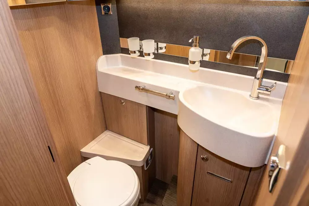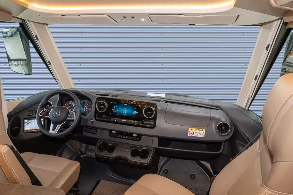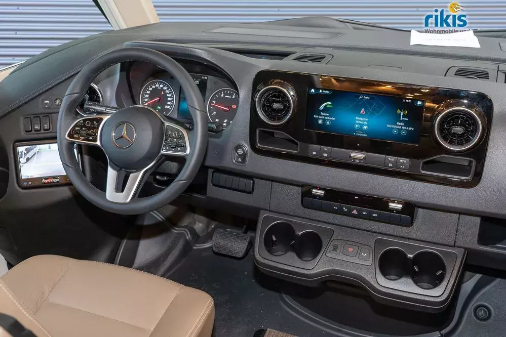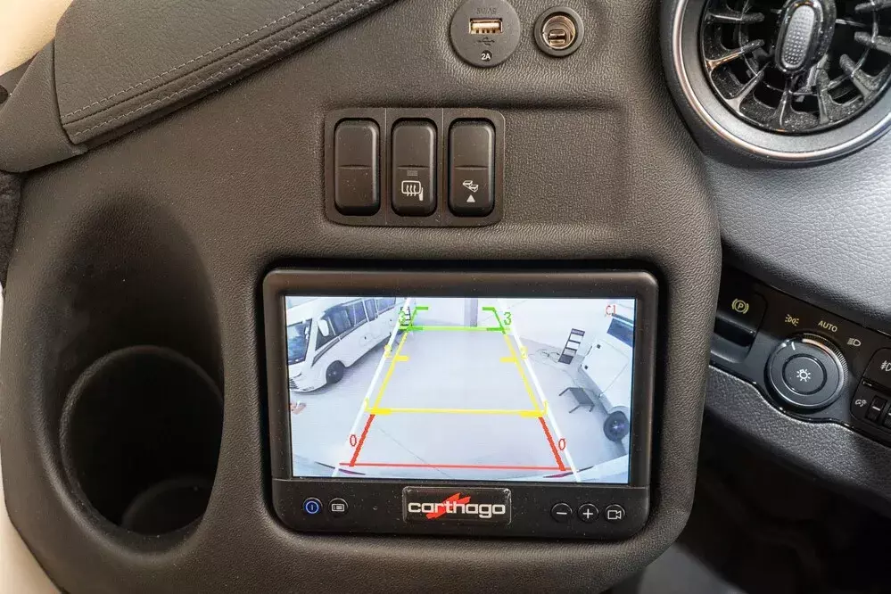 - Basis-Plus-Paket (Radzierblenden, Halbautomatische Klimaanlage Tempmatik, Tempomat, Ladebooster, Kraftstofftank 92 Liter, Vorderachse mit erhöhter Traglast, Lederlenkrad mit Option Multifunktionstasten (bei Schaltgetriebe inkl. Leder-Schalthebel), Kombiinstrument mit Farbdisplay, Regensensor, Elektrische Feststellbremse, Busspiegel "Carthago best view" mit Busspiegelgehäuse schwarz / weiß, verstell- und beheizbar, Fahrerhauskomfortsitze mit Neigungs- und Höhenverstellung (vorn / hinten), Radiovorbereitung mit Dachantenne mit DAB+, Lautsprecher (4 x), Radio / Moniceiver Pioneer 6,8" inkl. DAB+, Dachluke Midi-Heki mit LED-Spots über L-Wohnsitzgruppe, Große Rollergaragentür auf der Fahrerseite, XL-Aufbautür "premium two 2.0" (Breite 63 cm) mit Doppelverriegelung, Fenster- und Insektenschutzrollo, SOG-Toilettenentlüftung über Dachkamin, Abwasserschlauchset zur komfortablen Entsorgung, USB-Steckdose im Dachstauschrank über Heckbett, Vorbereitung Dachhaubenlüfter elektrisch, Vorbereitung Solaranlage, Vorbereitung Sat-Anlage, Vorbereitung Rückfahrkamera (Einzellinse))