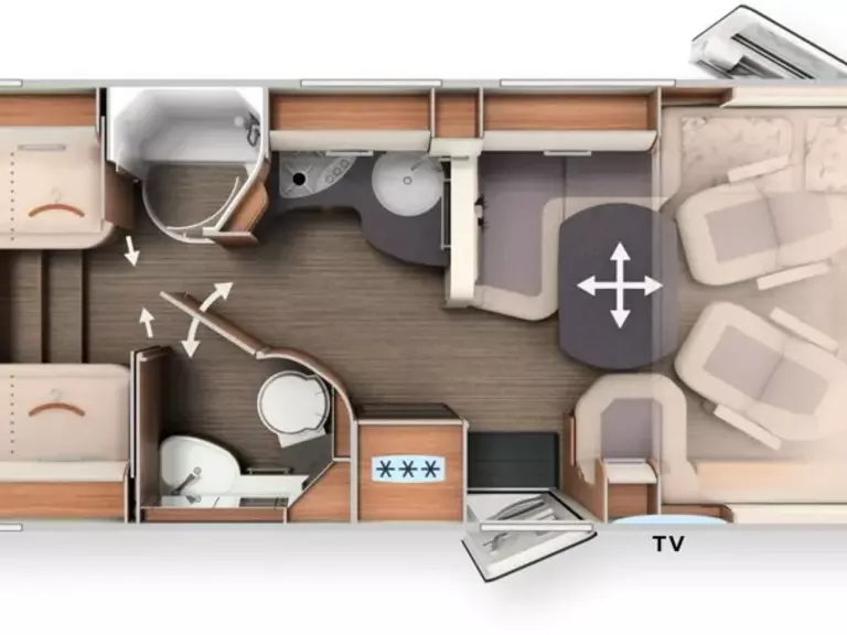 - Media-Paket 32" (Rückfahrkamerasystem mit Einzellinse und 7" Farbmonitor seitlich im Armaturenbrett, TV-Auszug in Seitensitzbank, TV-Schrank L-Wohnsitzgruppe (141 LE, 143 LE), LED-Flachbildschirm 32")